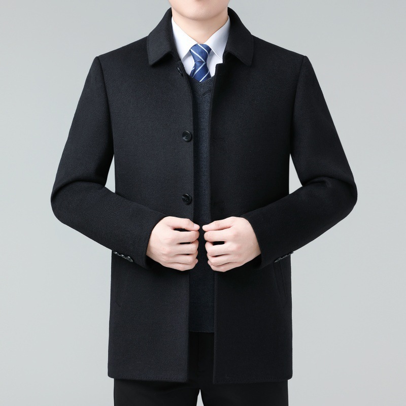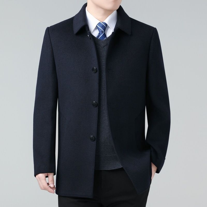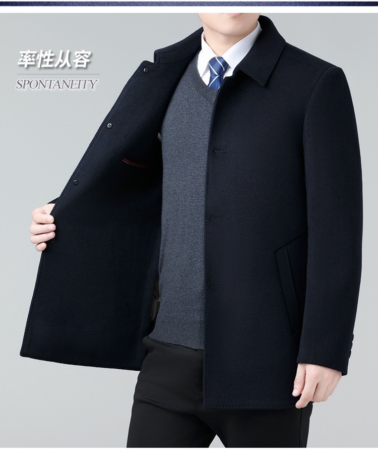카운터 양면 캐시미어 코트 중년 남성 울 코트 중장 다운 라이너 아빠의 트렌치 코트