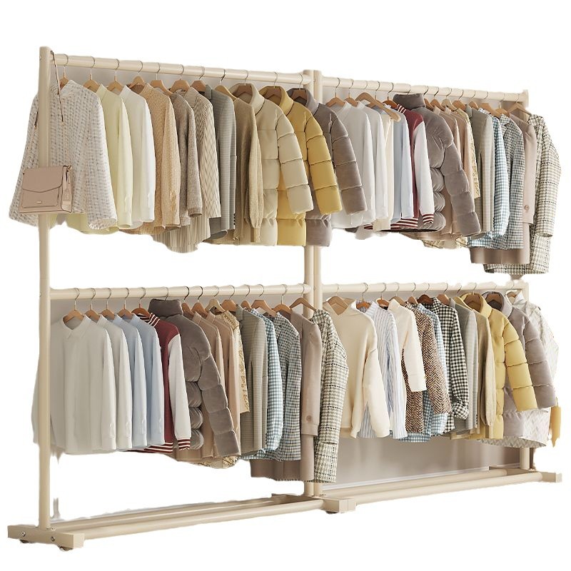 더블 레이어 라운드 의류 디스플레이 랙 바닥 서 수직 가구 의류 옷걸이 기숙사 침실 코트 랙 스토리지 랙