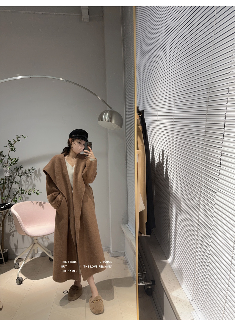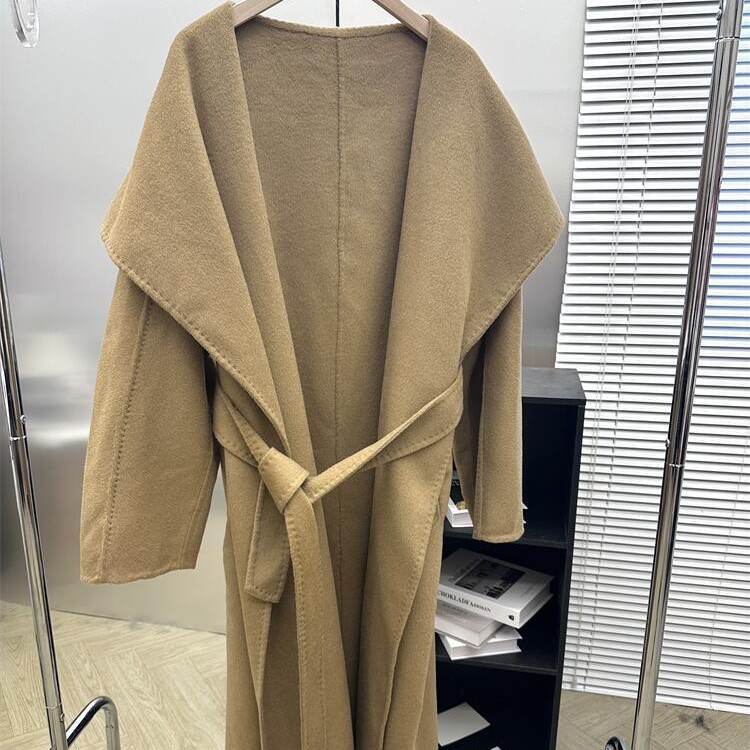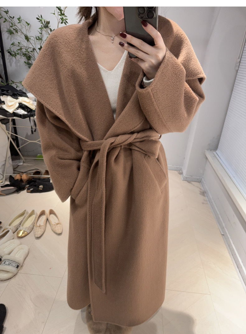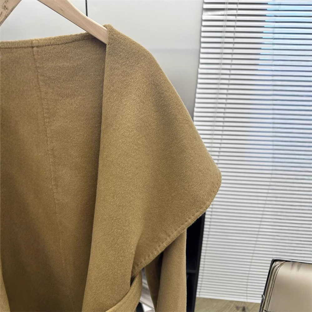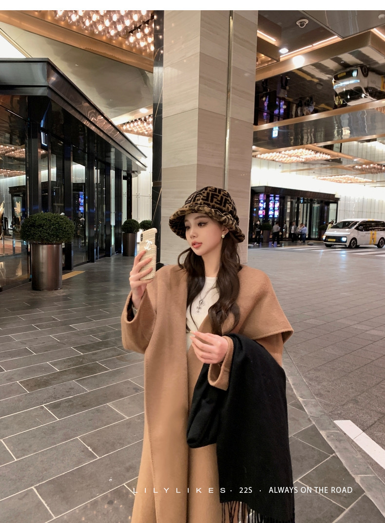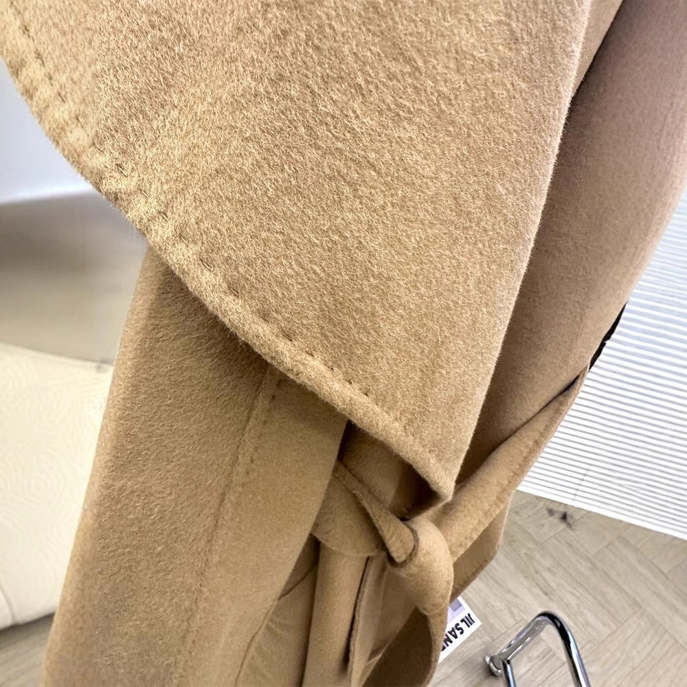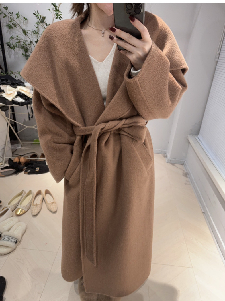 여성용 카멜색 양면 캐시미어 코트 2025 가을 겨울 신상 고급스러운 라펠 캐주얼 양면 모직 롱 코트
