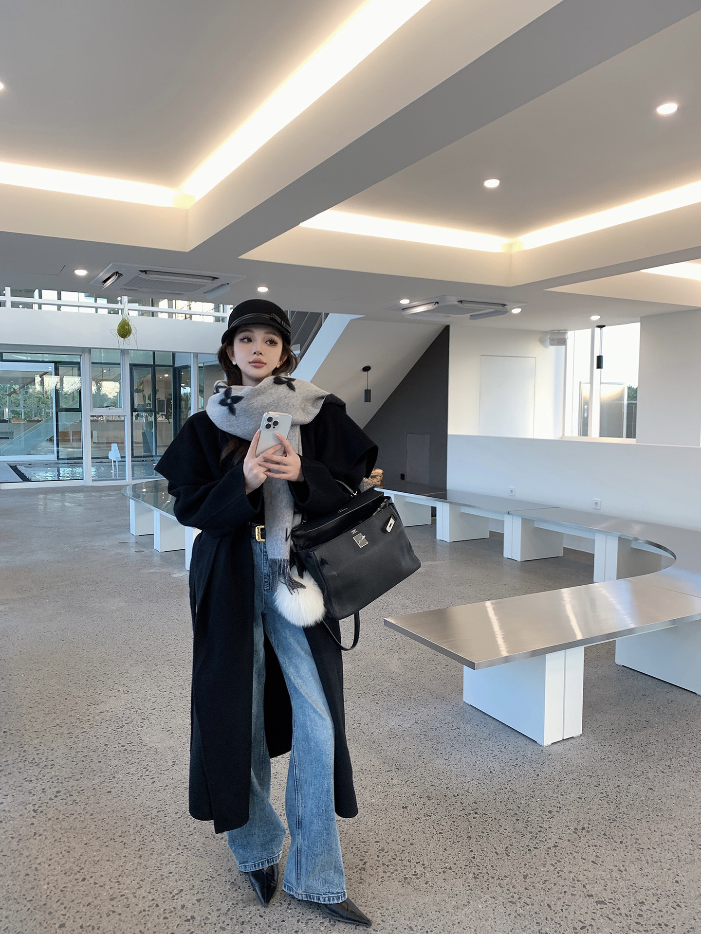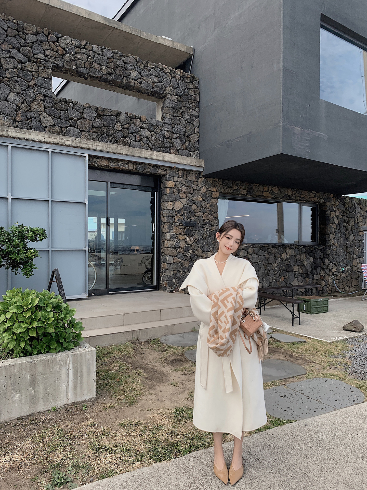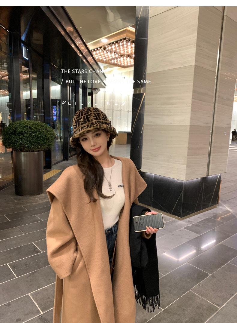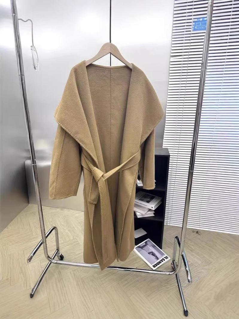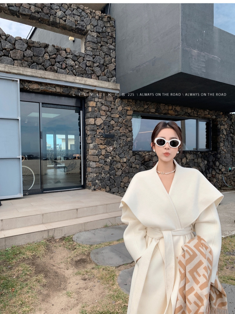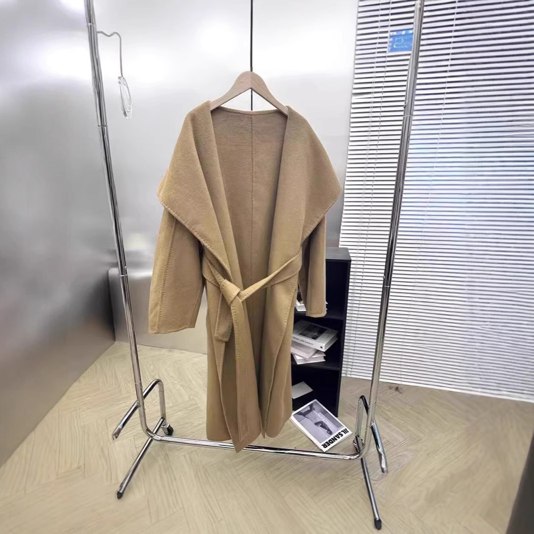 여성용 카멜색 양면 캐시미어 코트 2025 가을 겨울 신상 고급스러운 라펠 캐주얼 양면 모직 롱 코트