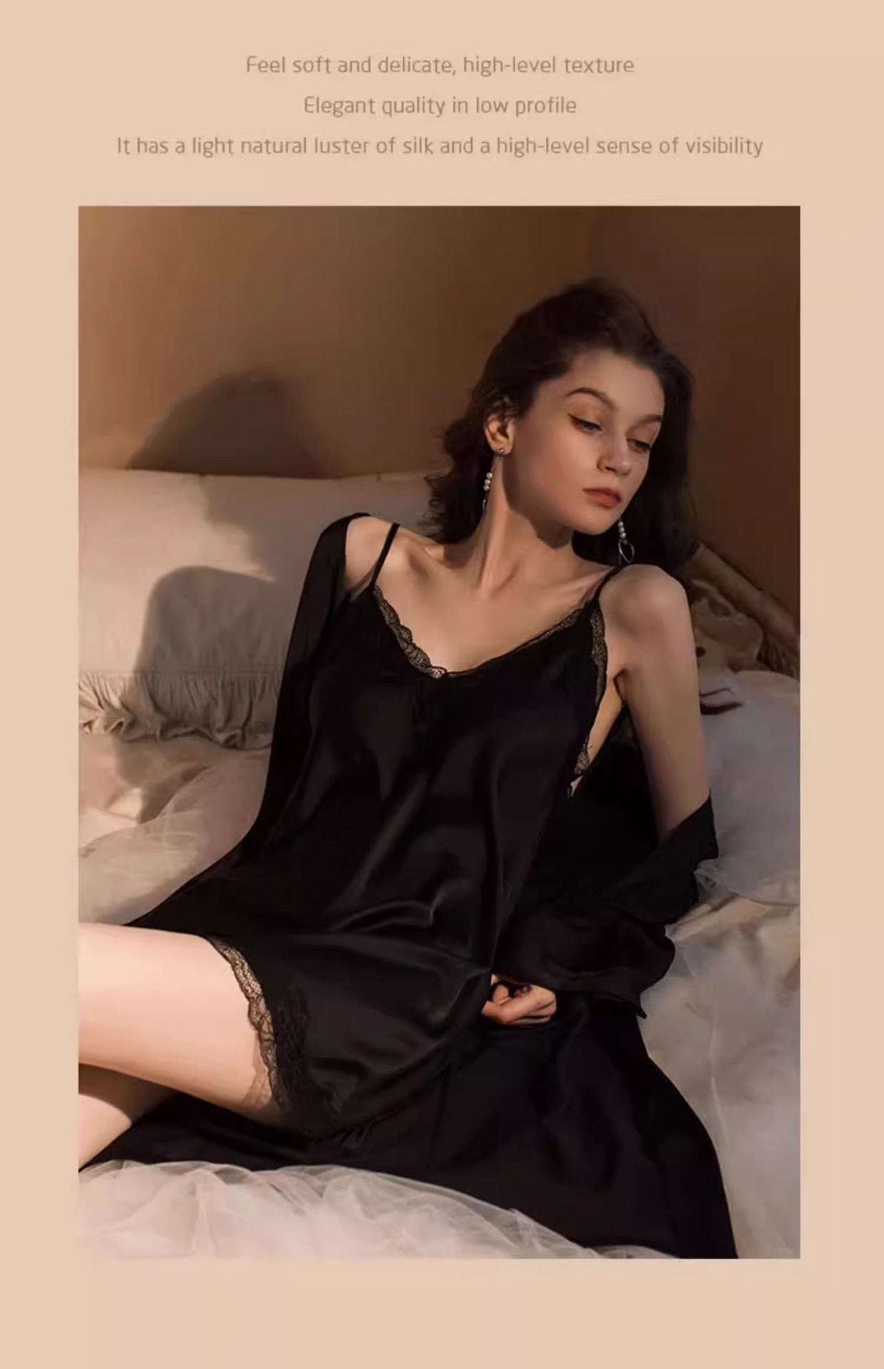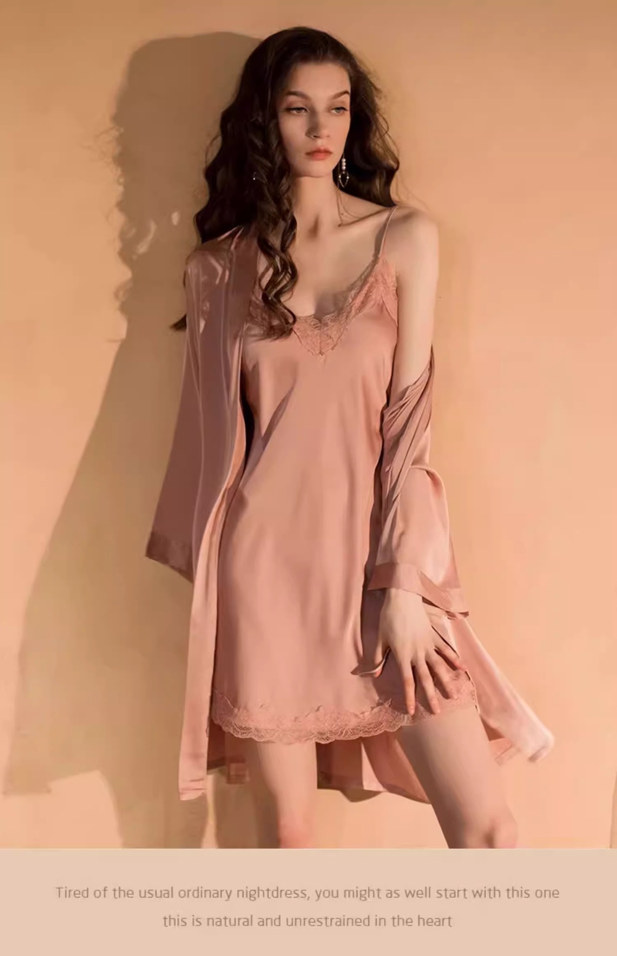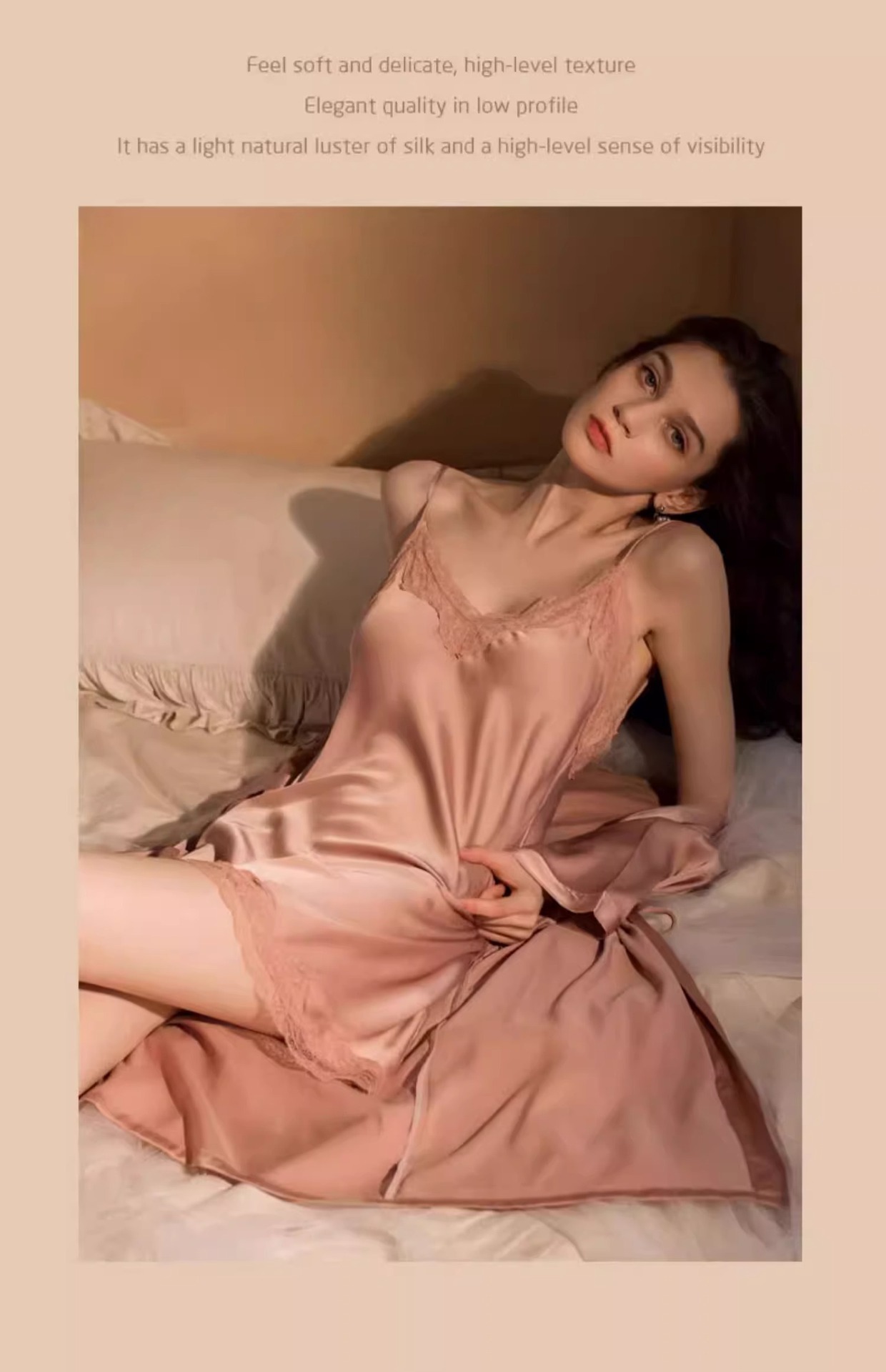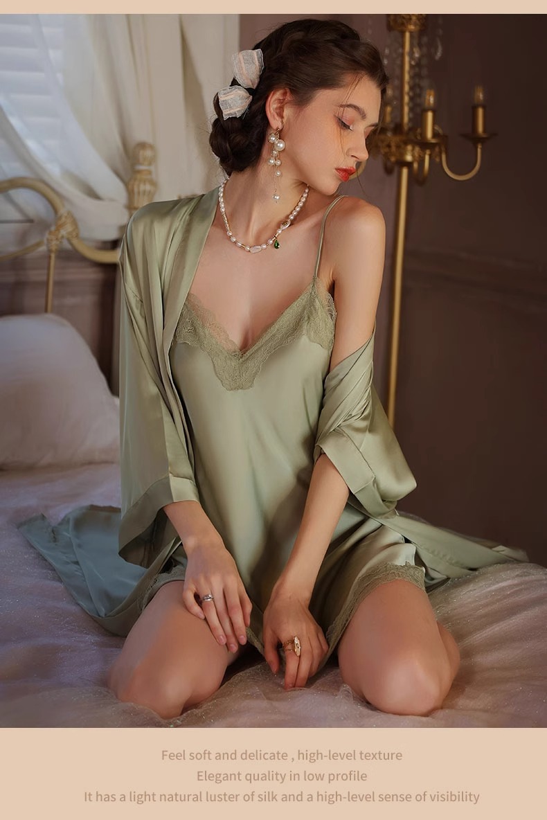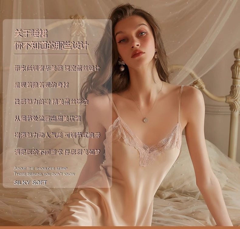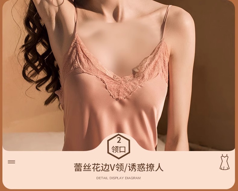 2025 여성을위한 새로운 스타일 잠옷 여름 섹시한 얼음 실크 뜨거운 셔츠 얇은 하이 엔드 순수한 정욕 레이스 서스펜더 잠옷