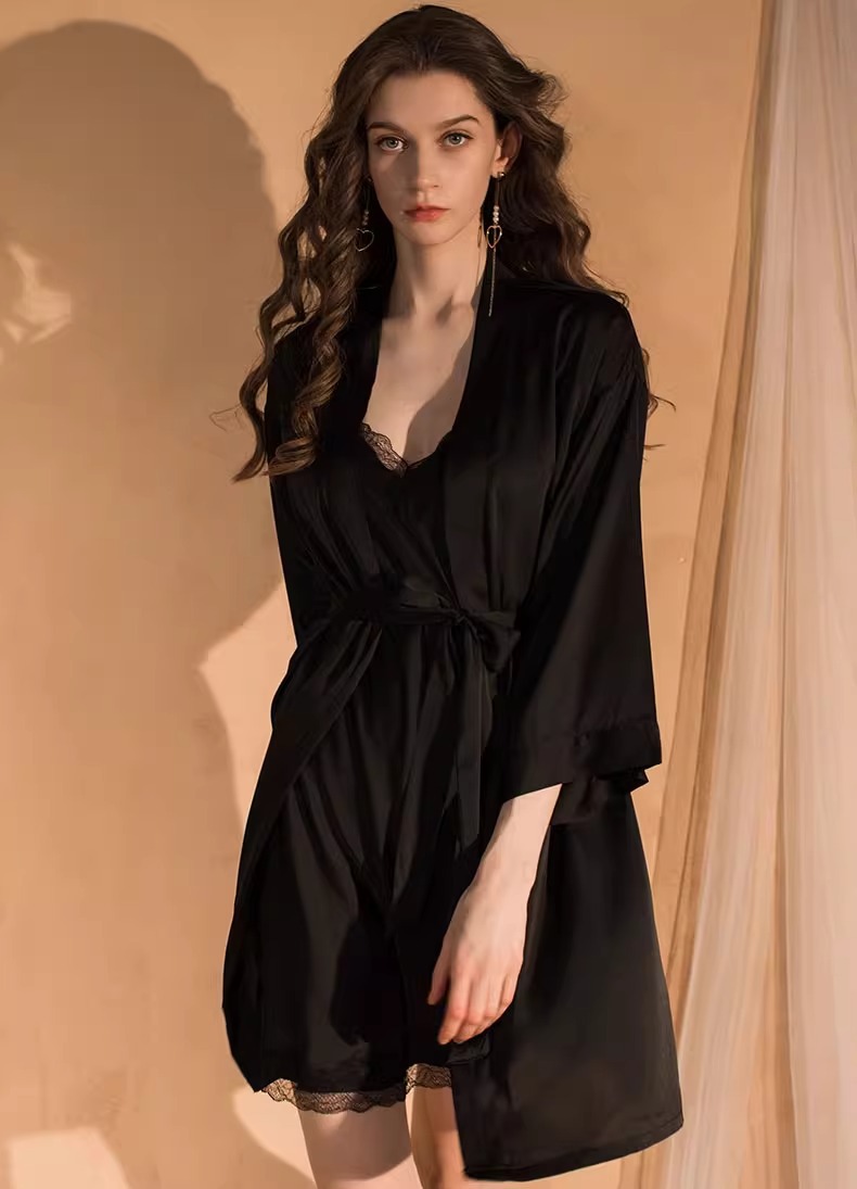 블랙 싱글 잠옷 [가슴 패드 포함]