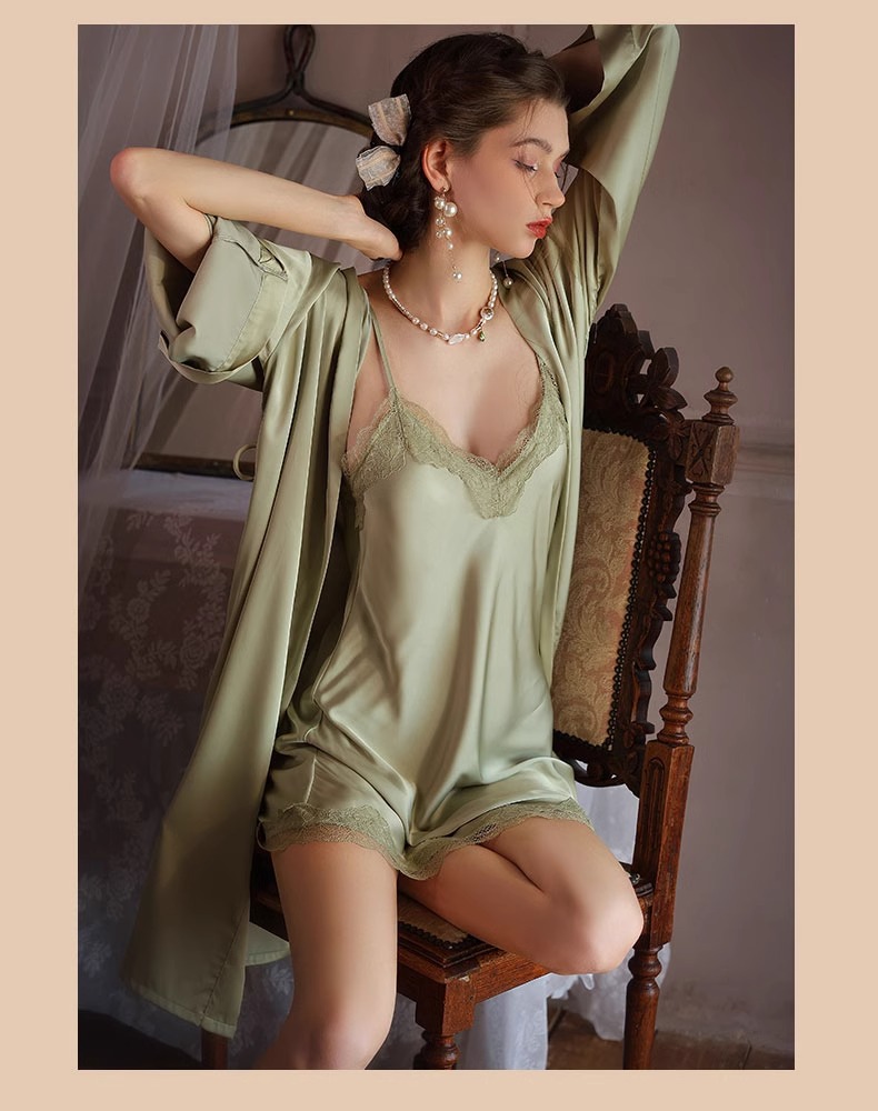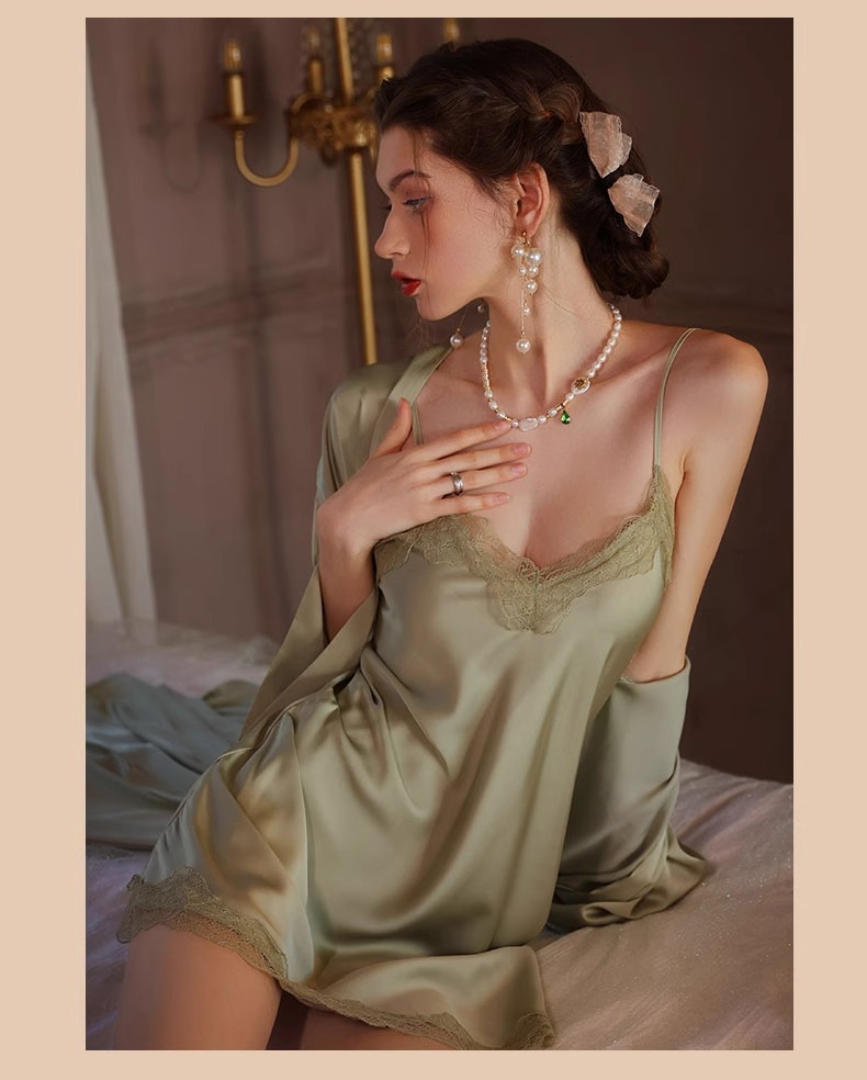 아보카도 그린 싱글 나이트가운 [가슴 패드 포함]