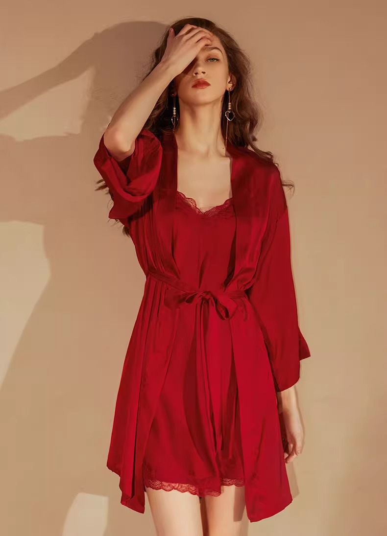 버건디 싱글 나이트가운 [가슴 패드 포함]