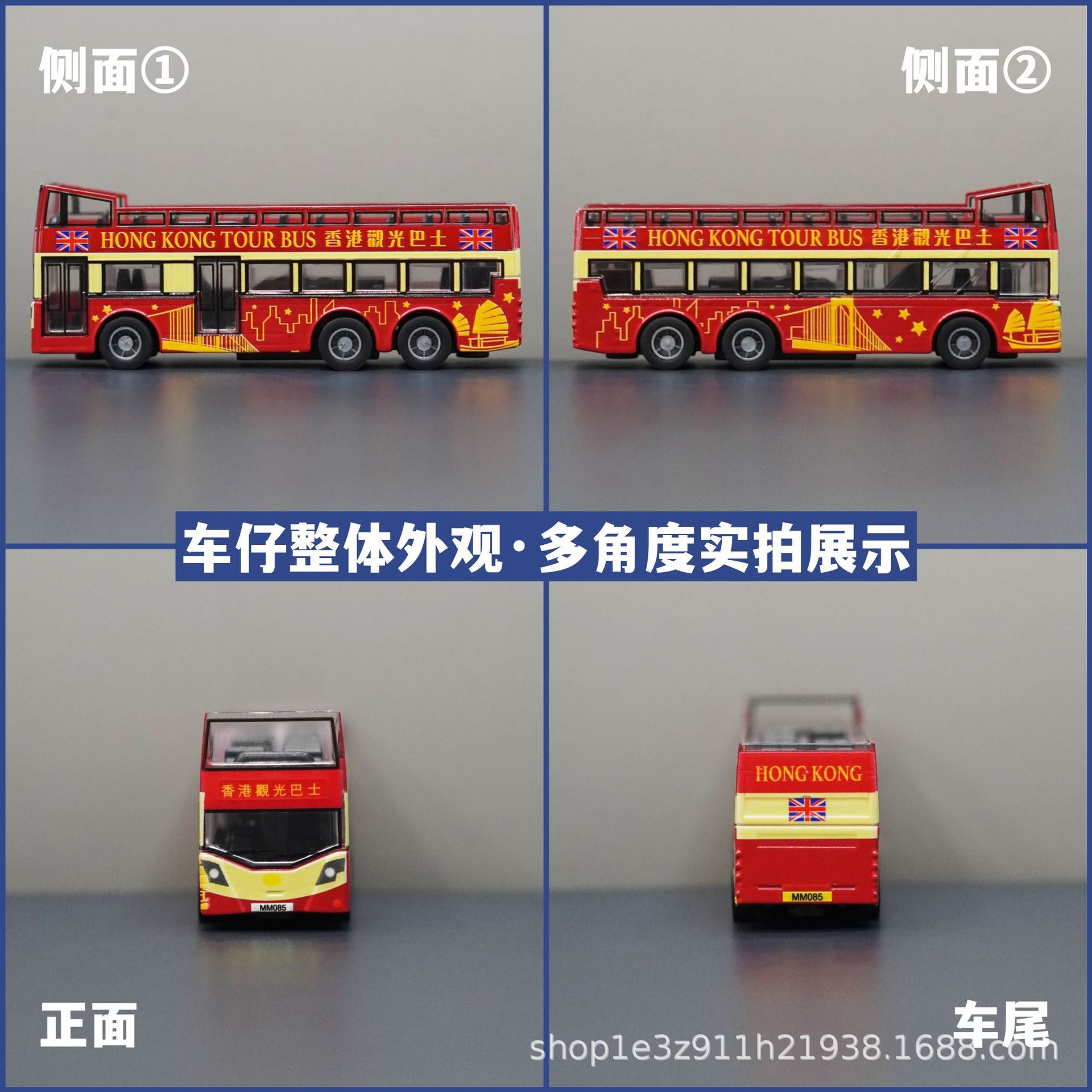 홍콩 오픈 캐노피 관광 버스 일몰 비행 자동차 시뮬레이션 자동차 모델 어린이 장난감 기념품 합금 자동차 모델