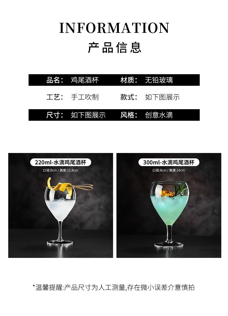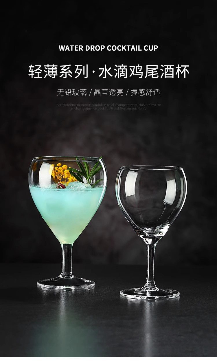창의적인 드롭 모양 입 부는 샴페인 유리 무연 유리 칵테일 유리 주스 유리 와인 잔 잔