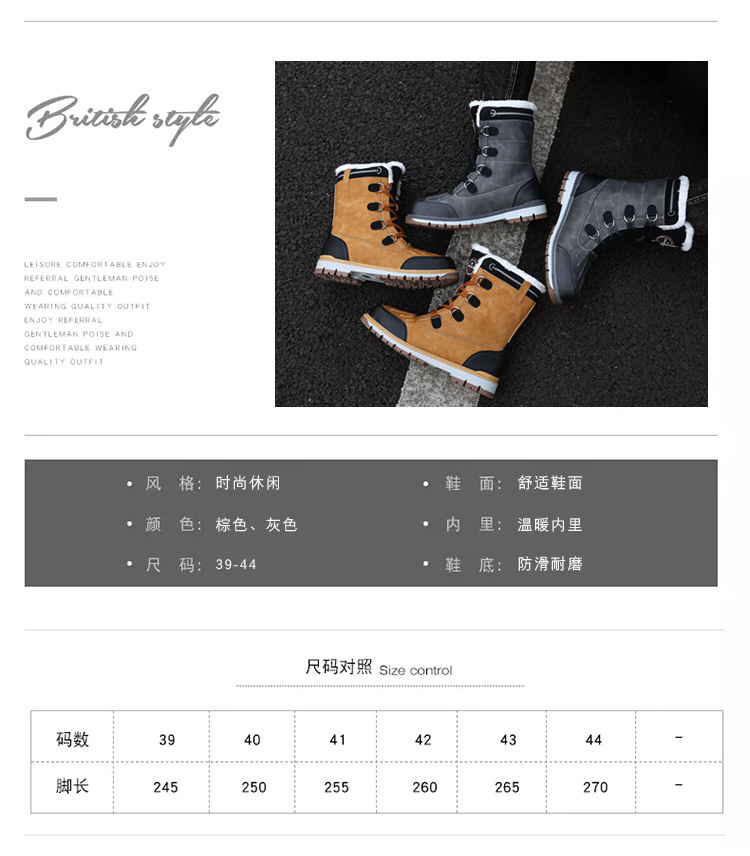 겨울 플러스 사이즈 기모 하이 퀄리티 대형 코튼 신발 패션 하이 탑 따뜻한 남성 신발 스노우 부츠 남성용 야외 캐주얼 부츠