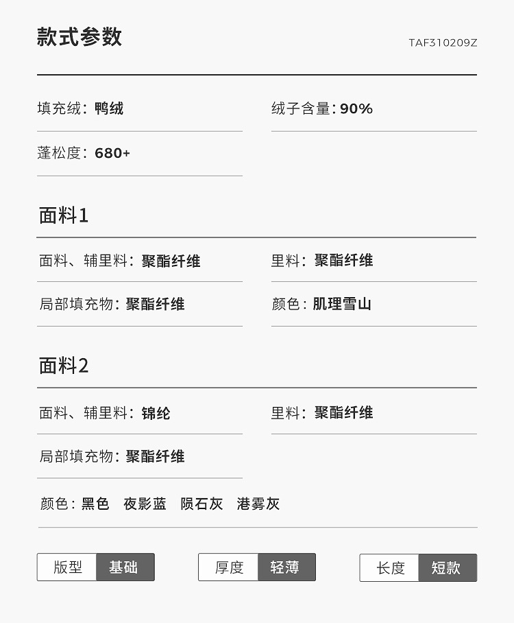 탬버 경량 다운 재킷 남자의 짧은 후드 비즈니스 캐주얼 가을과 겨울 코트 TAF310209Z
