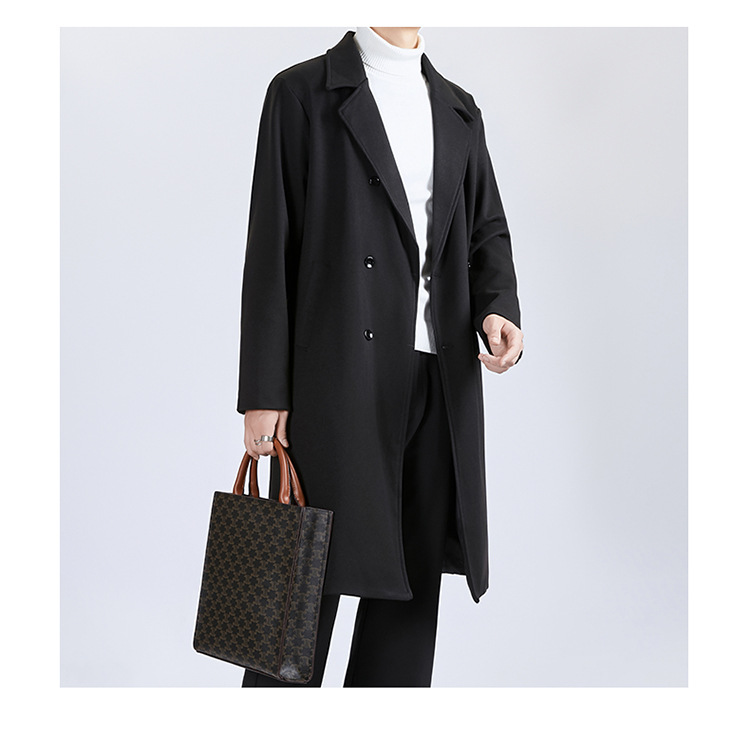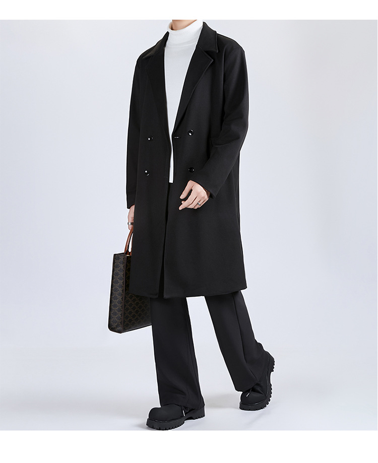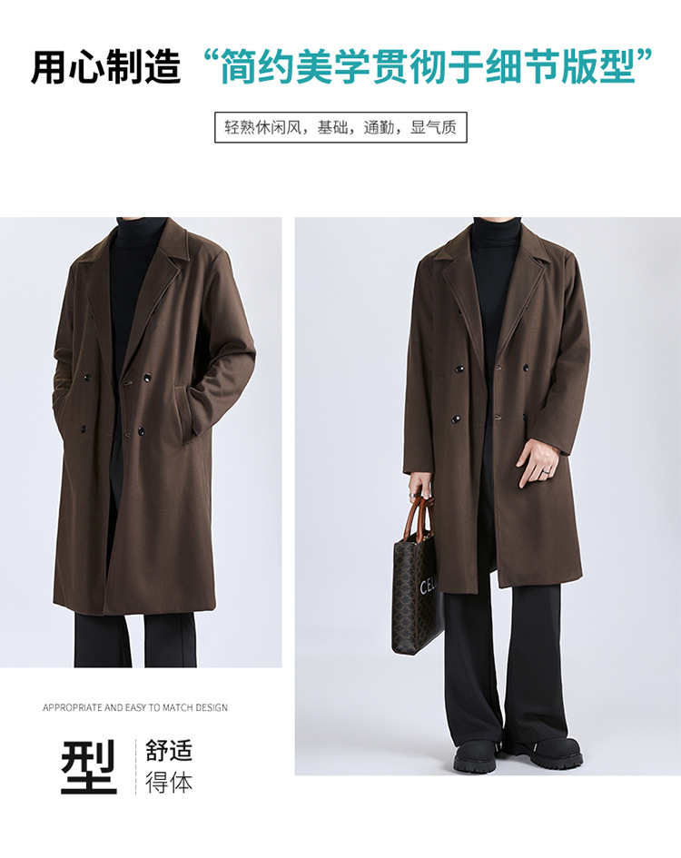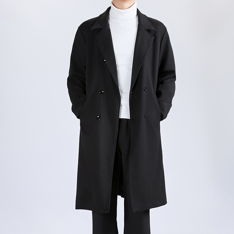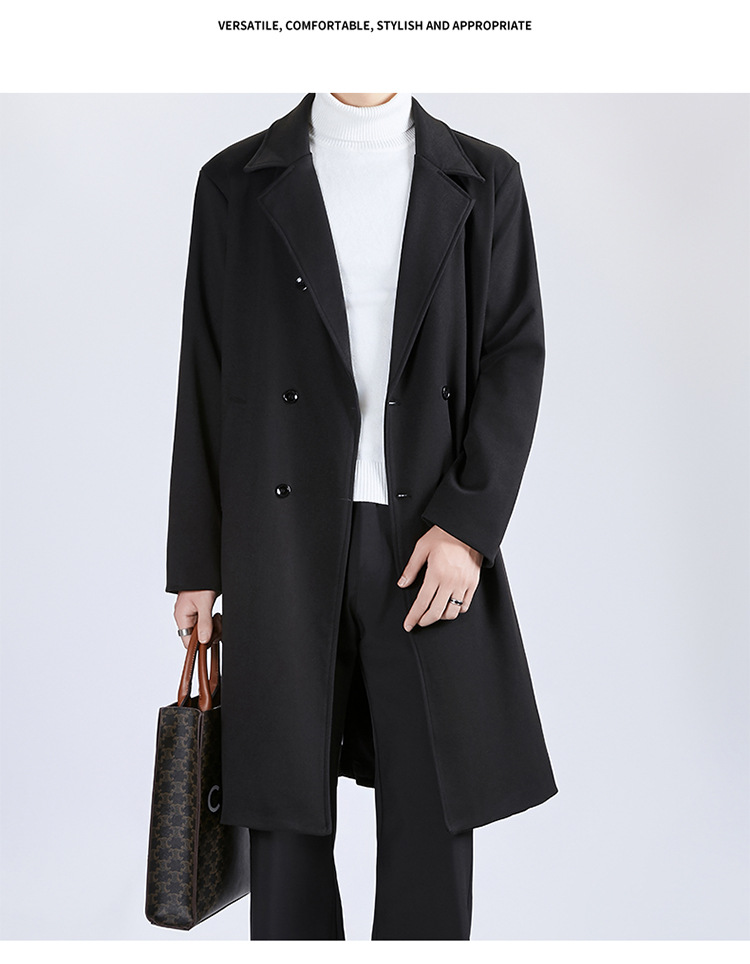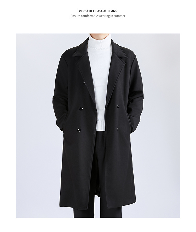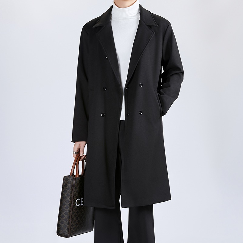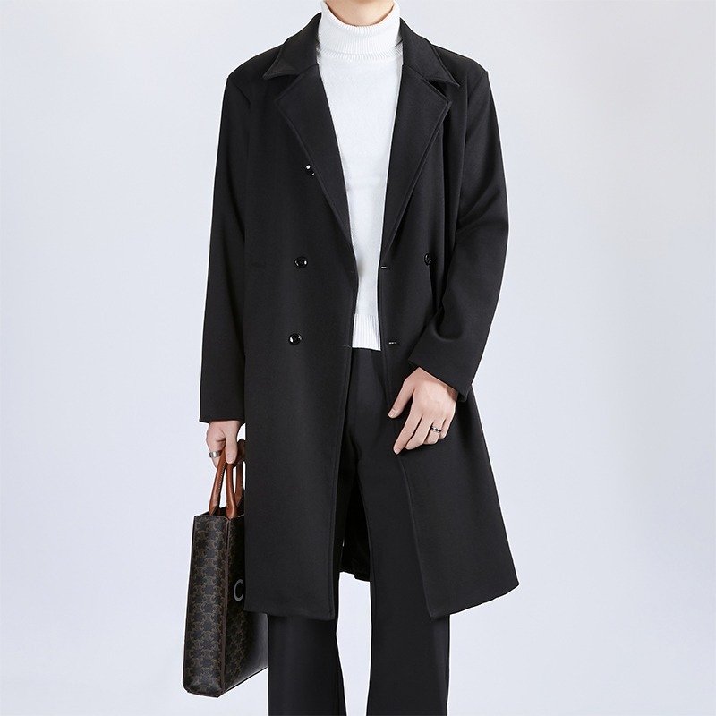한국 스타일 느슨한 세트 칼라 윈드 브레이커 남자 중간 길이의 잘 생긴 가을 겨울 코트 라이트 성숙한 스타일 하이 엔드 남성용 코트
