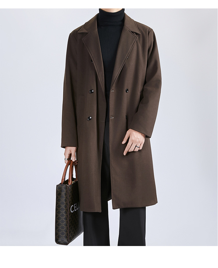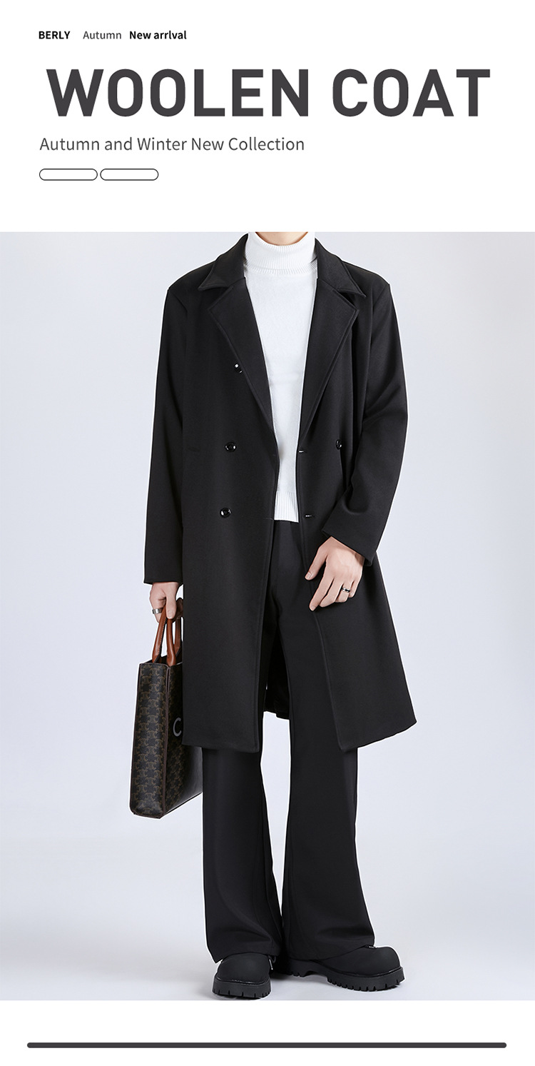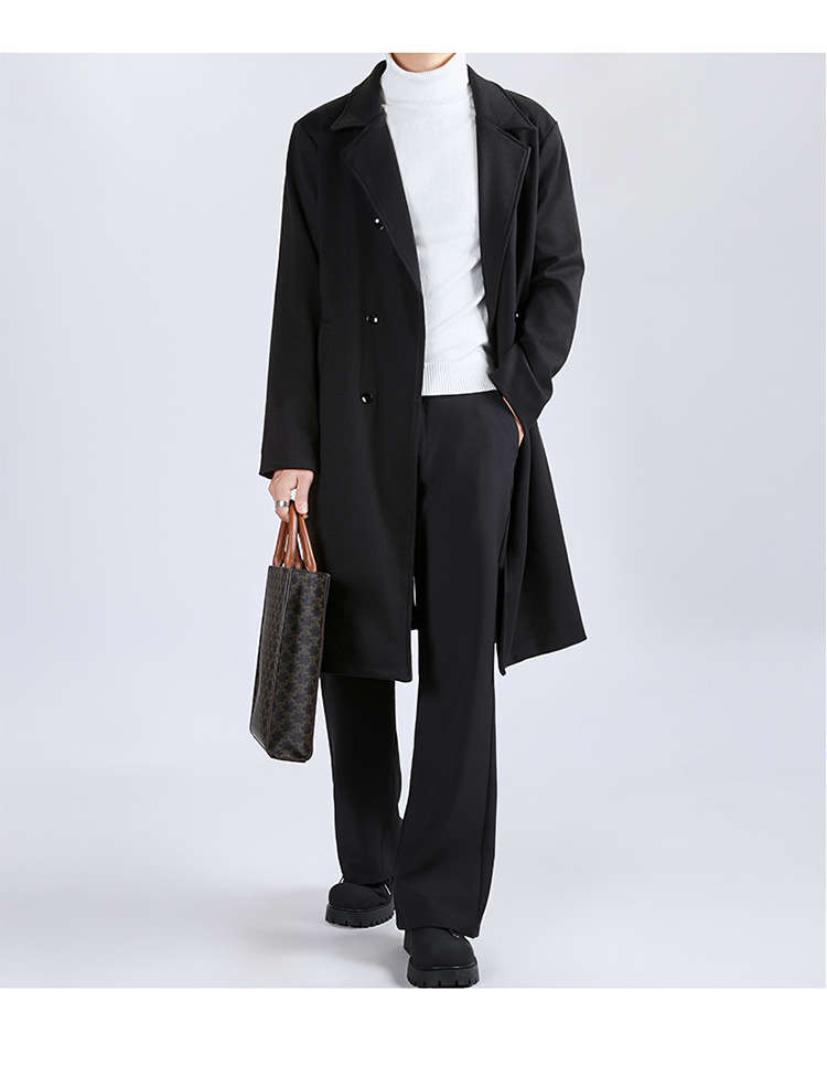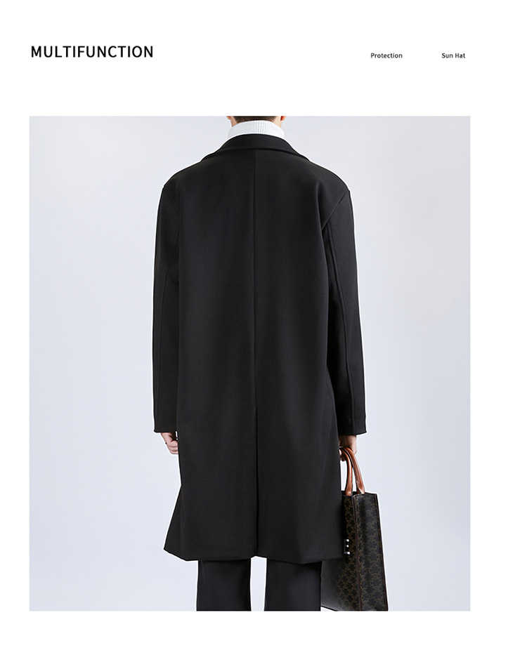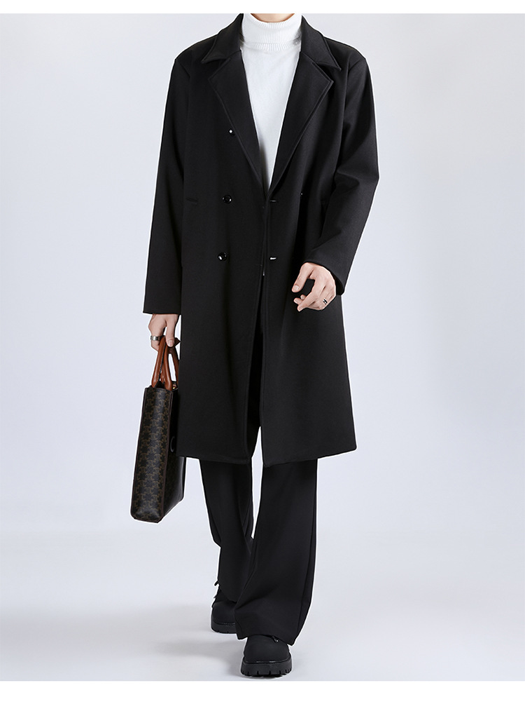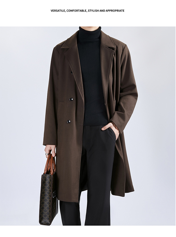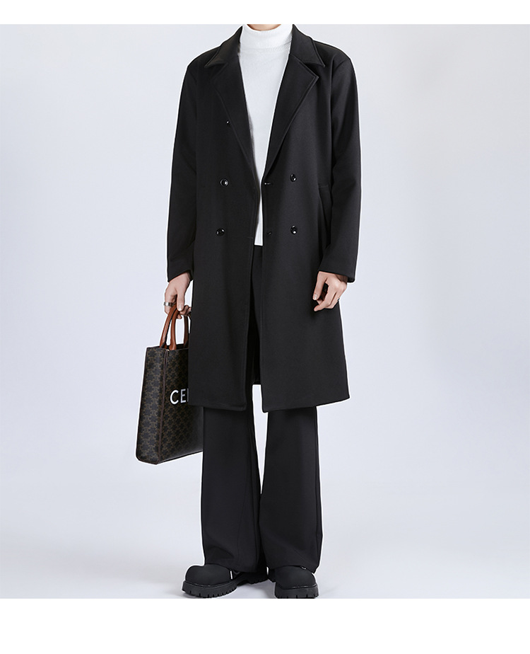 한국 스타일 느슨한 세트 칼라 윈드 브레이커 남자 중간 길이의 잘 생긴 가을 겨울 코트 라이트 성숙한 스타일 하이 엔드 남성용 코트