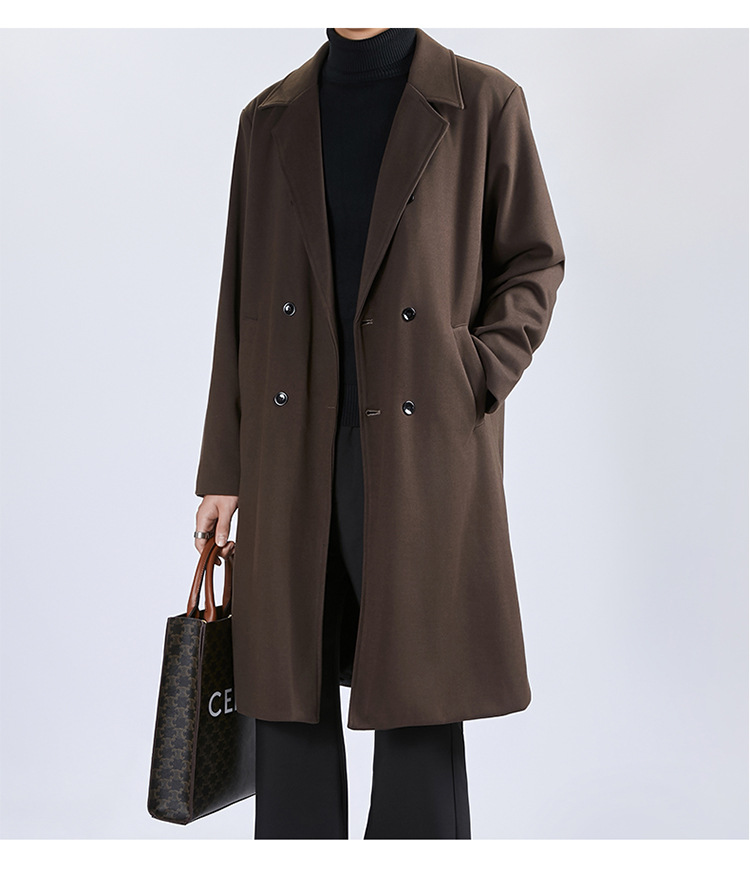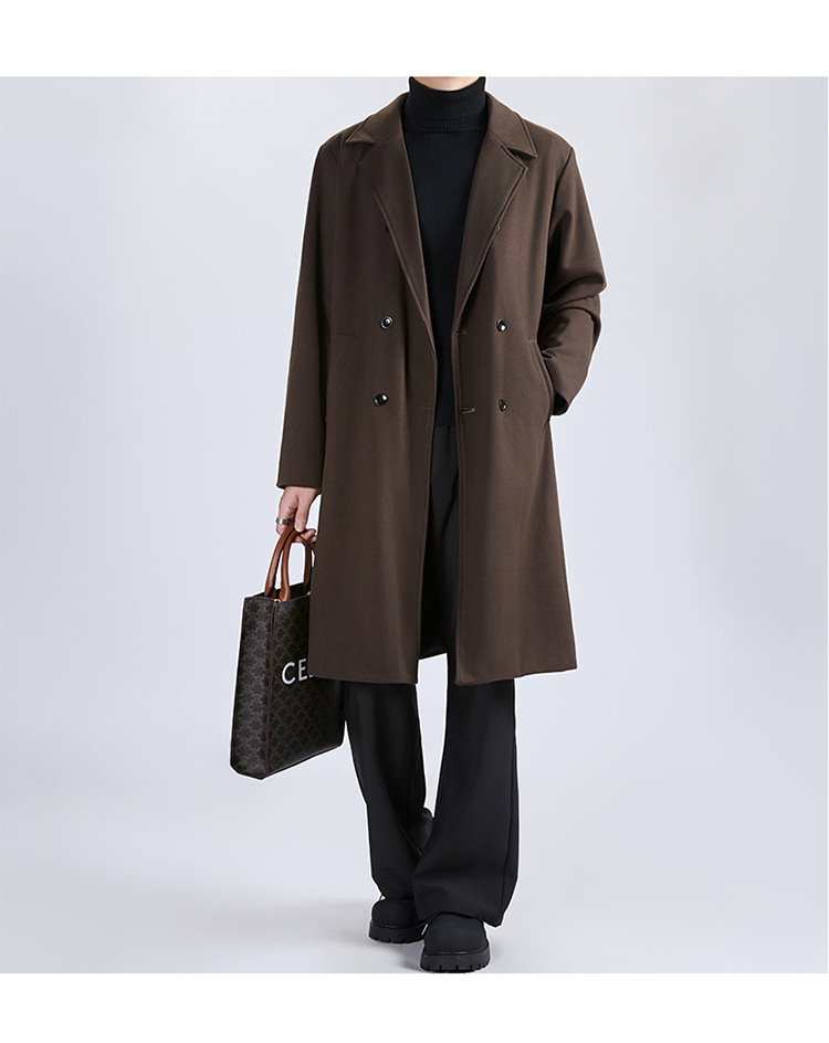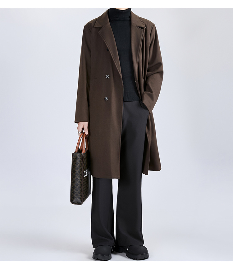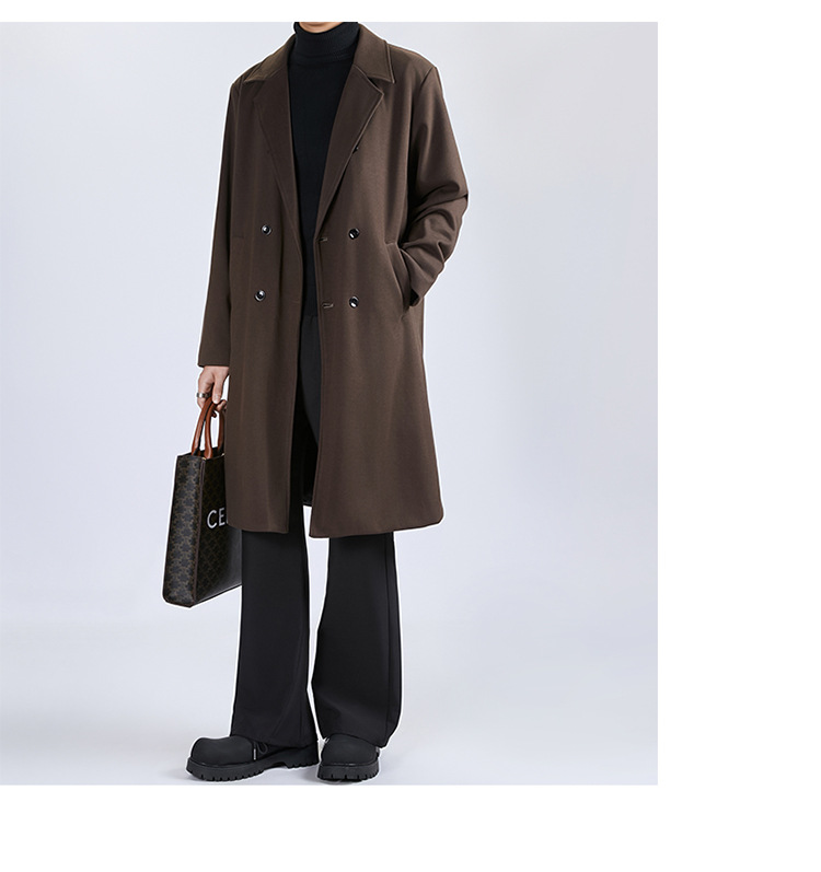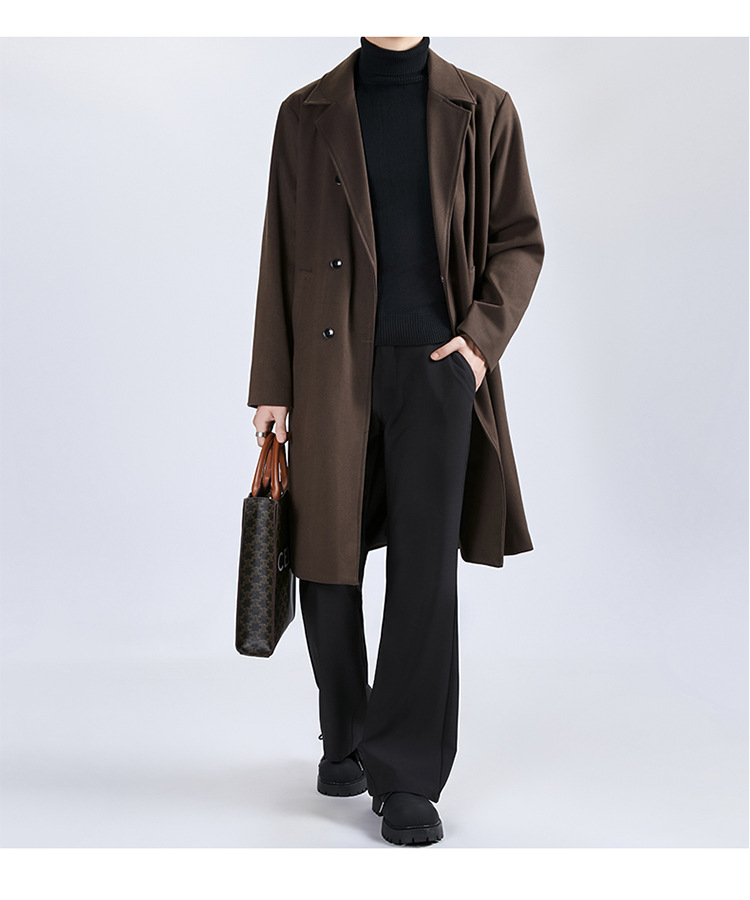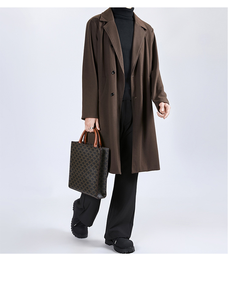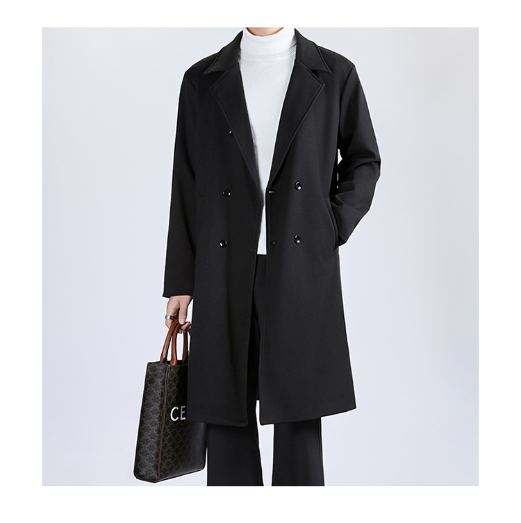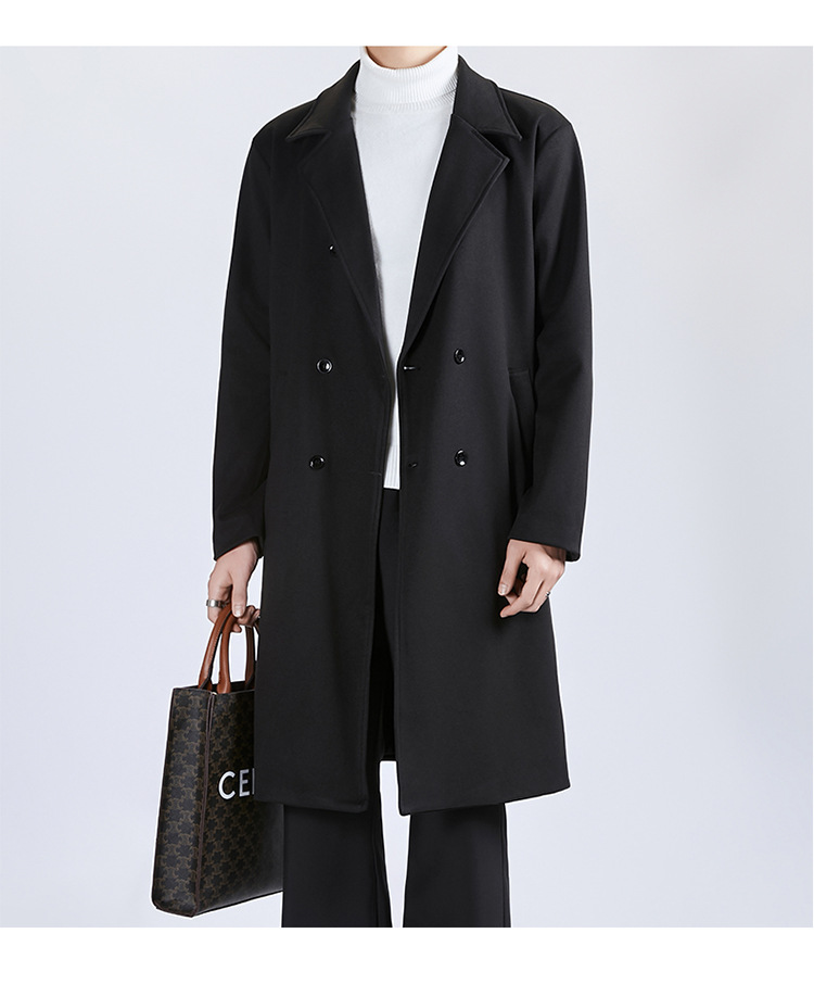 한국 스타일 느슨한 세트 칼라 윈드 브레이커 남자 중간 길이의 잘 생긴 가을 겨울 코트 라이트 성숙한 스타일 하이 엔드 남성용 코트
