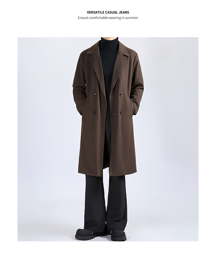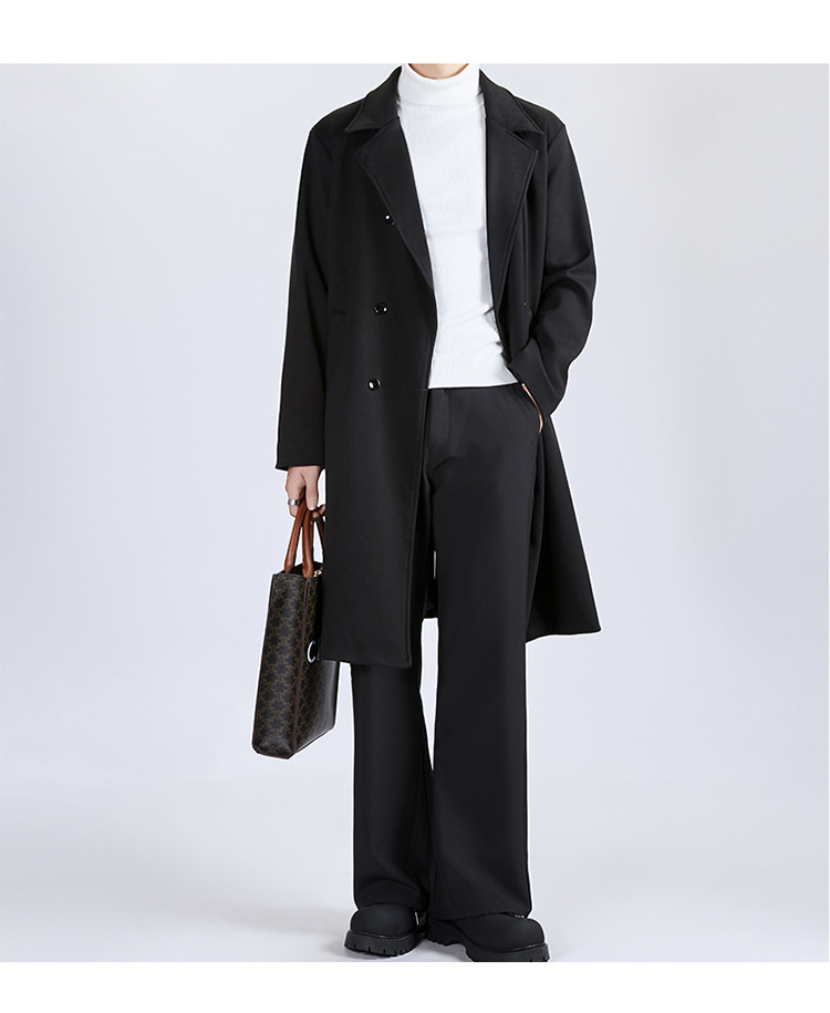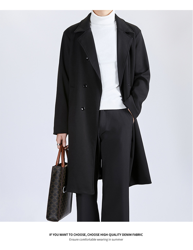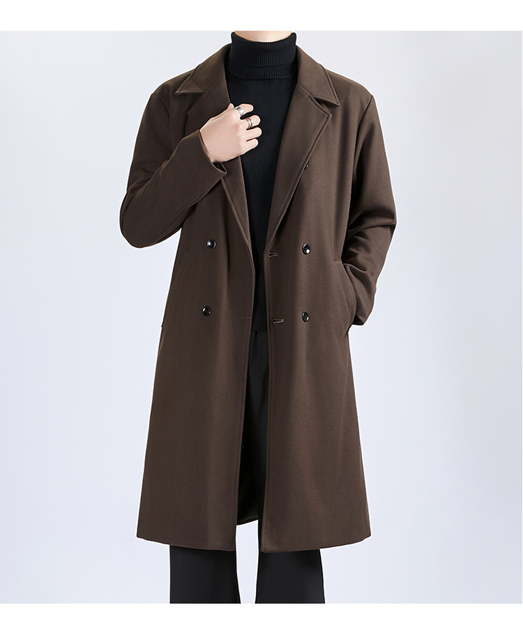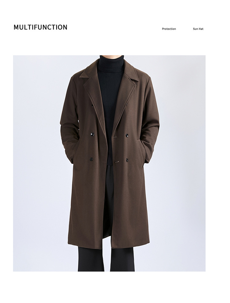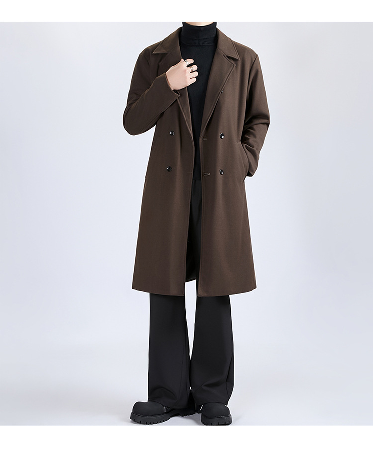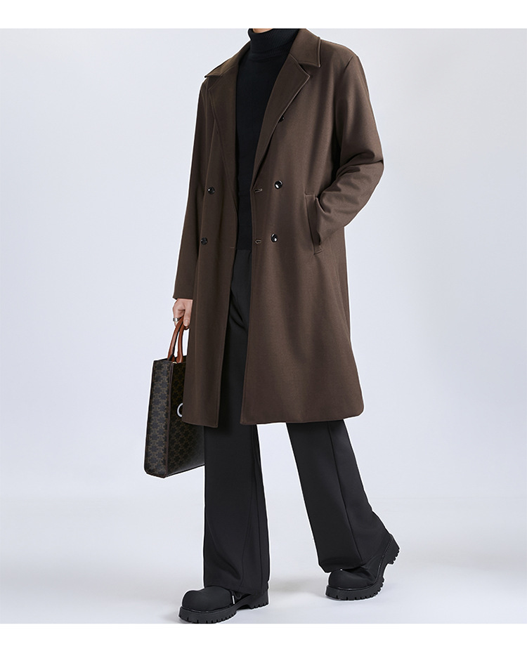 한국 스타일 느슨한 세트 칼라 윈드 브레이커 남자 중간 길이의 잘 생긴 가을 겨울 코트 라이트 성숙한 스타일 하이 엔드 남성용 코트