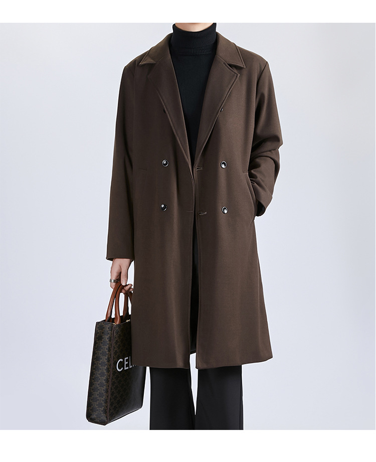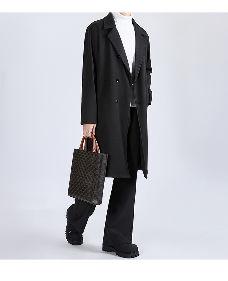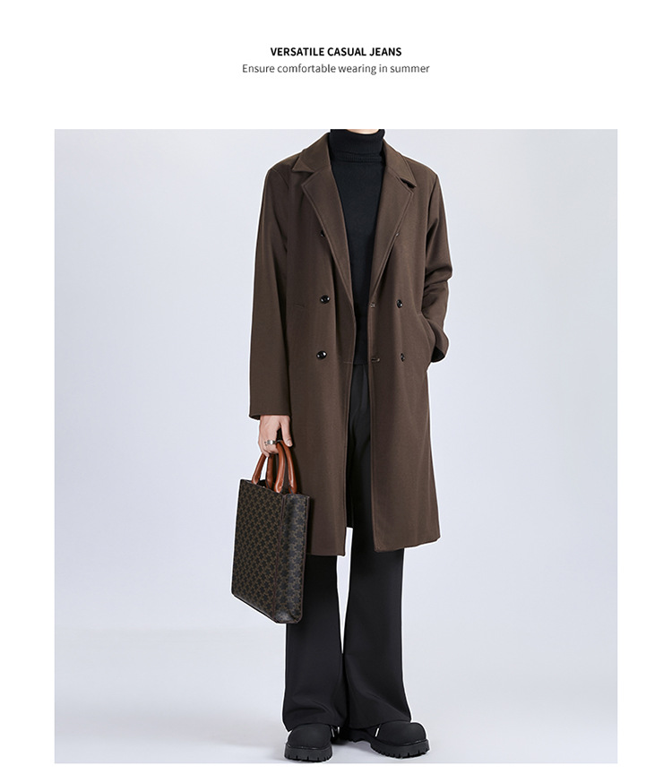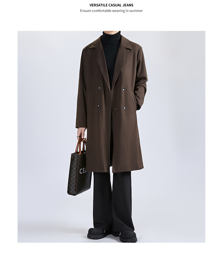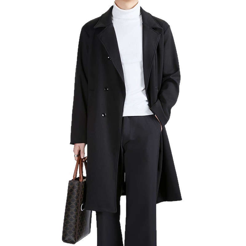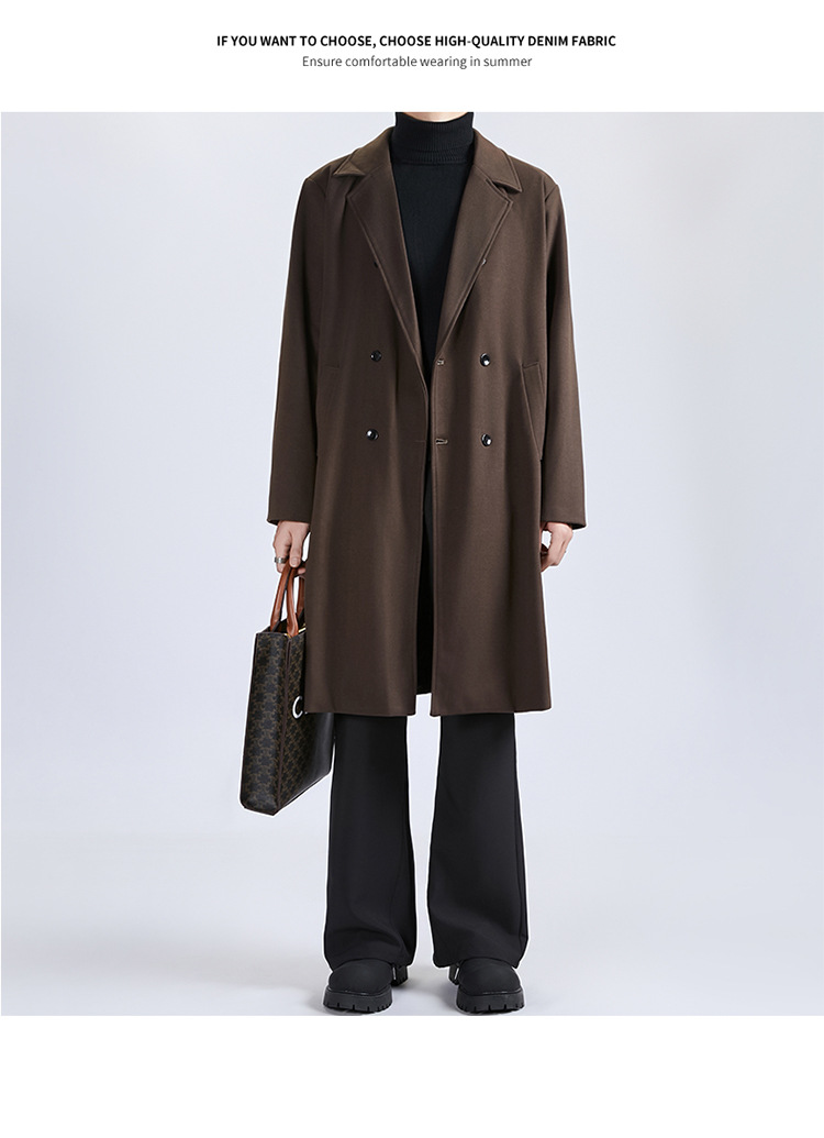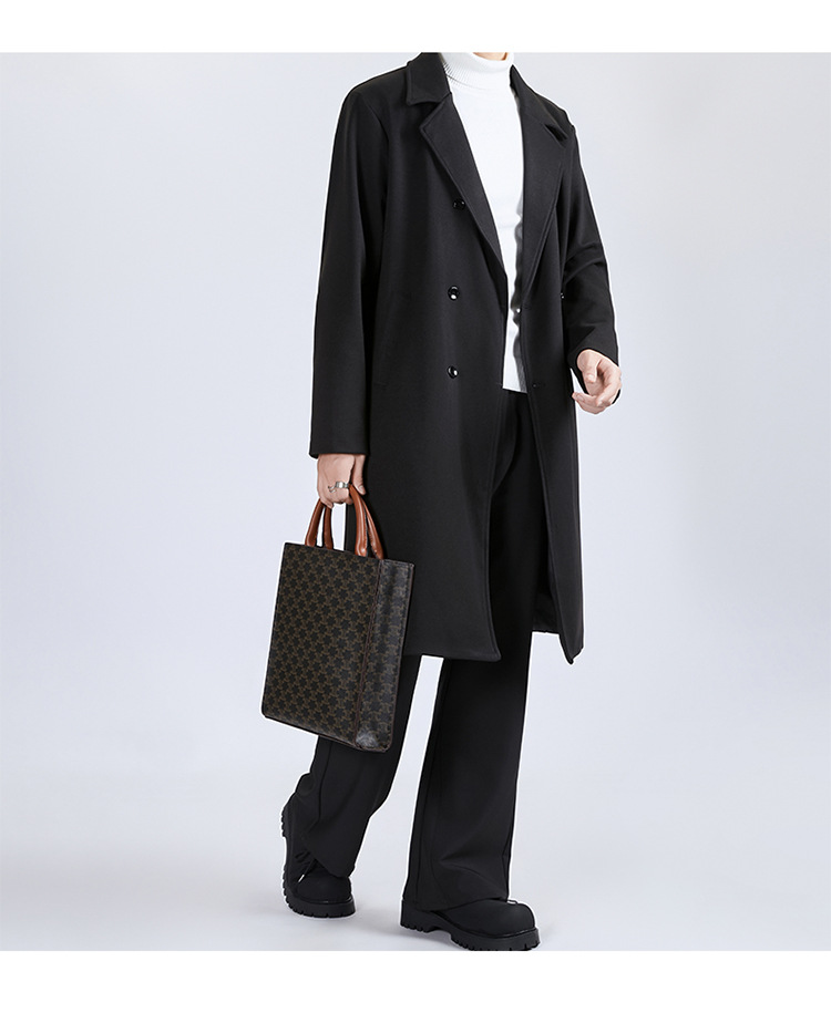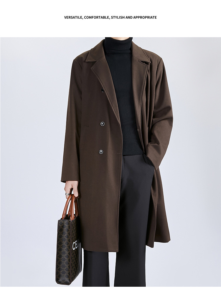한국 스타일 느슨한 세트 칼라 윈드 브레이커 남자 중간 길이의 잘 생긴 가을 겨울 코트 라이트 성숙한 스타일 하이 엔드 남성용 코트