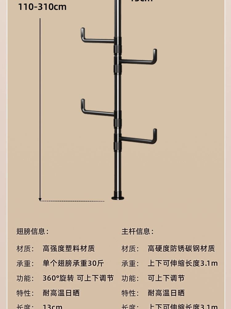 [무퍼플 폴] 후크 8개 - 3.1m 까지 조절 가능