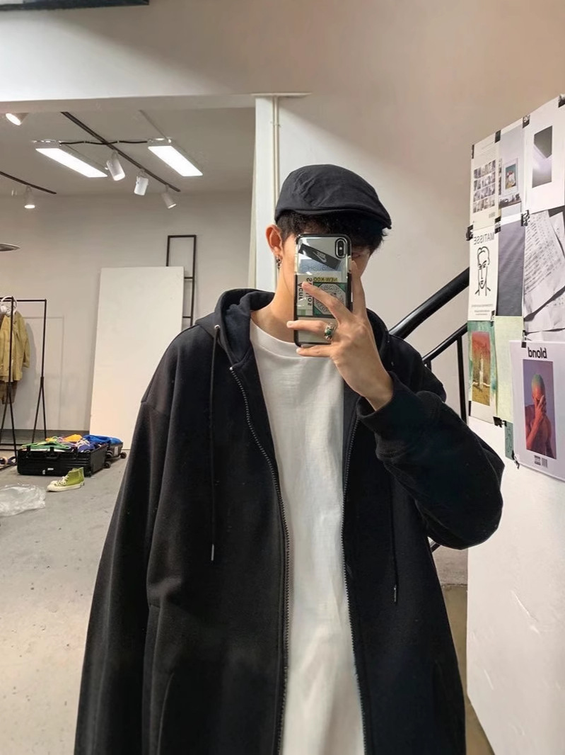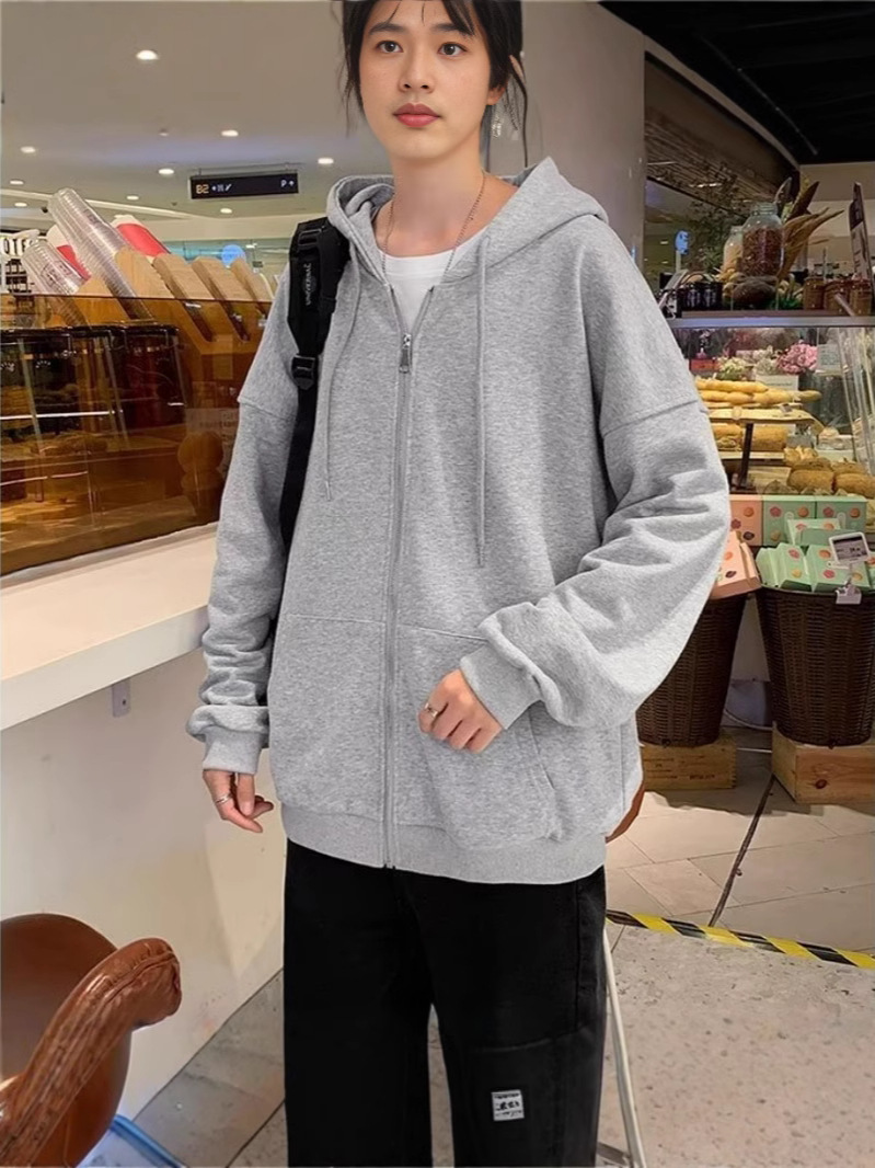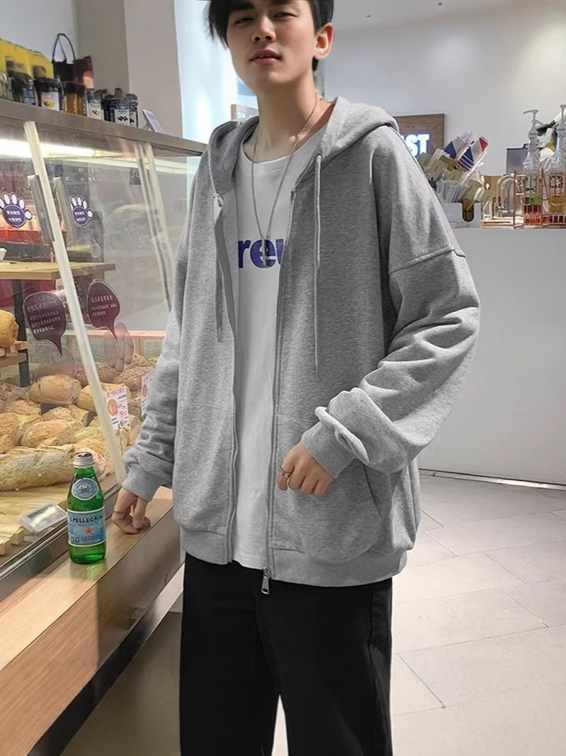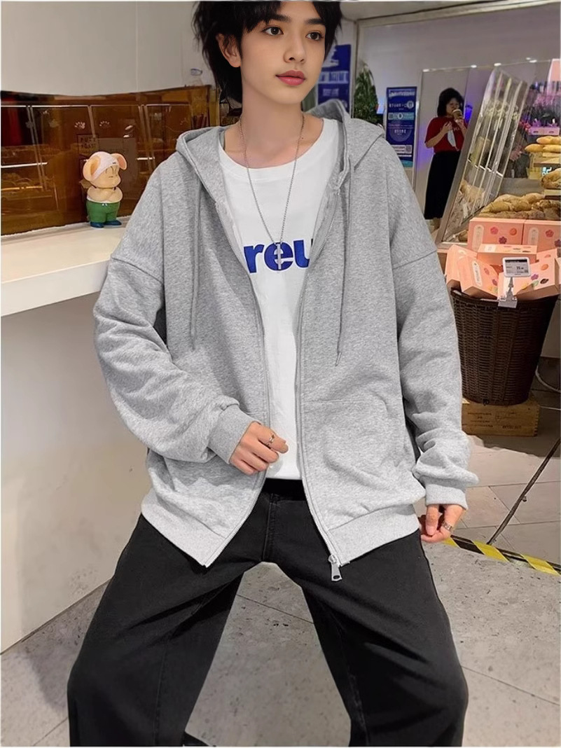 가을 겨울 신상 지퍼 가디건 스웨트셔츠 남성용 홍콩 스타일 루즈핏 캐주얼 재킷 심플하고 다재다능한 후드티 멋짐