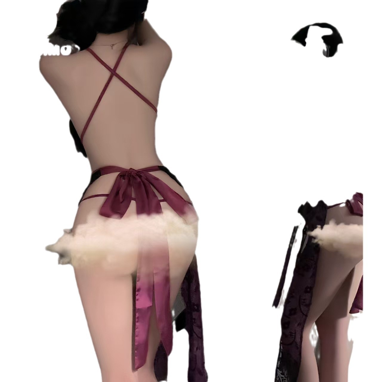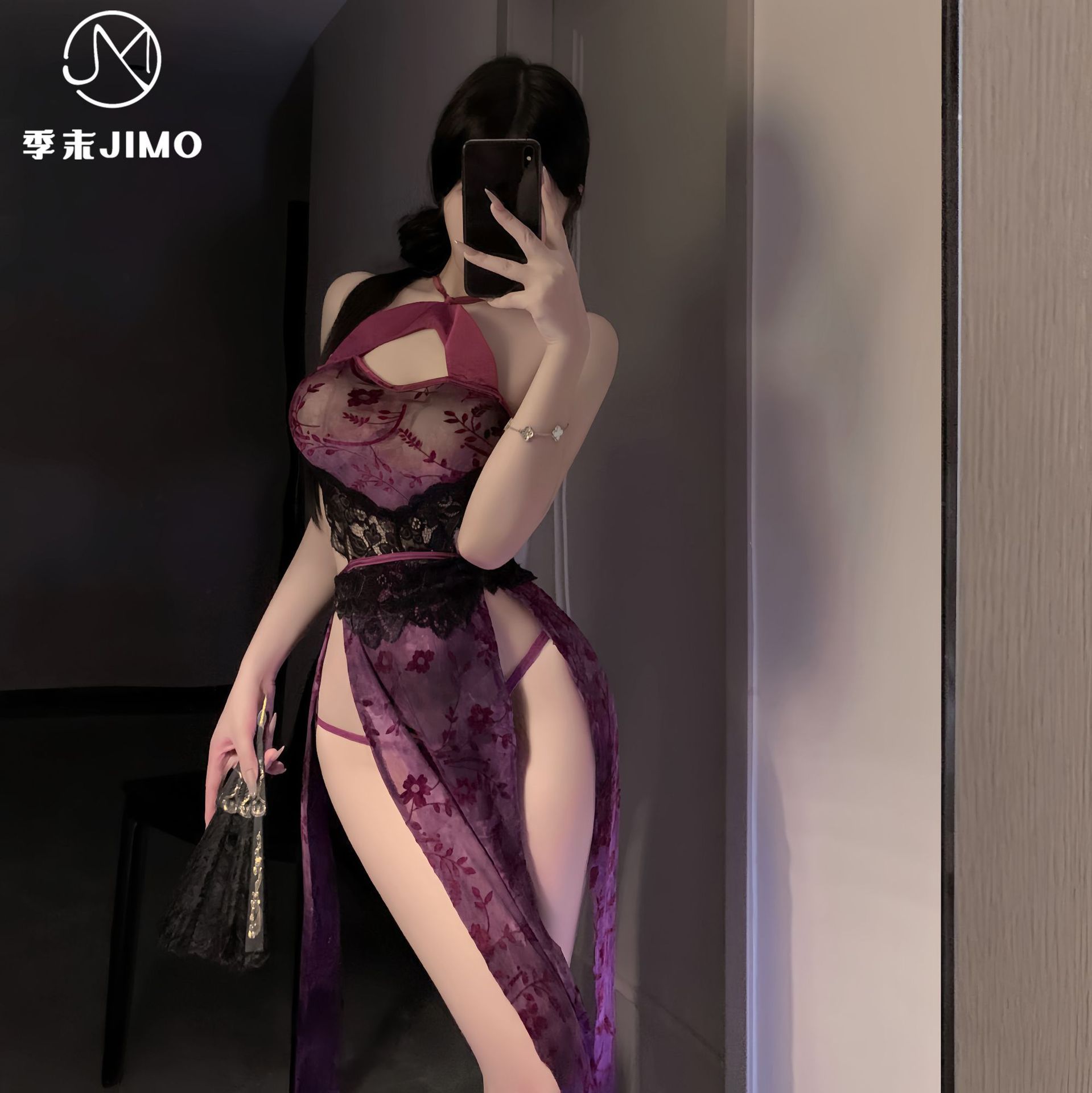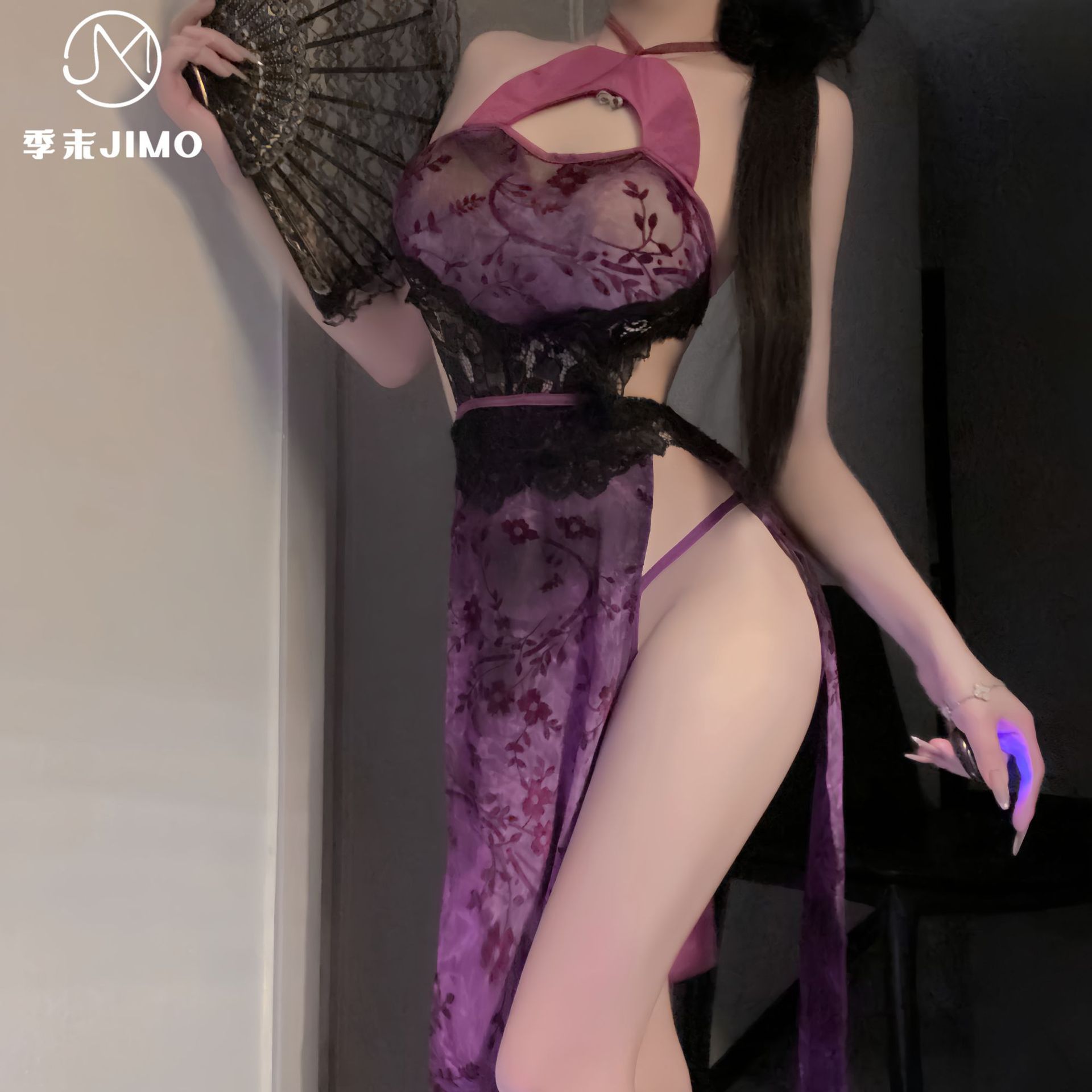 Domila 새로운 국가 스타일 백리스 청삼 원피스 새로운 중국 스타일 원피스 관점 섹스 속옷 순수한 레이스 업 Nightdress
