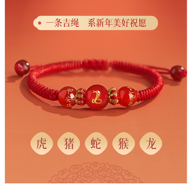 2026년 말년(마년) 붉은 팔찌, 토끼, 소, 양, 개를 위한 작은 빨간색 끈, 손으로 짠 빨간색 팔찌, 남녀공용