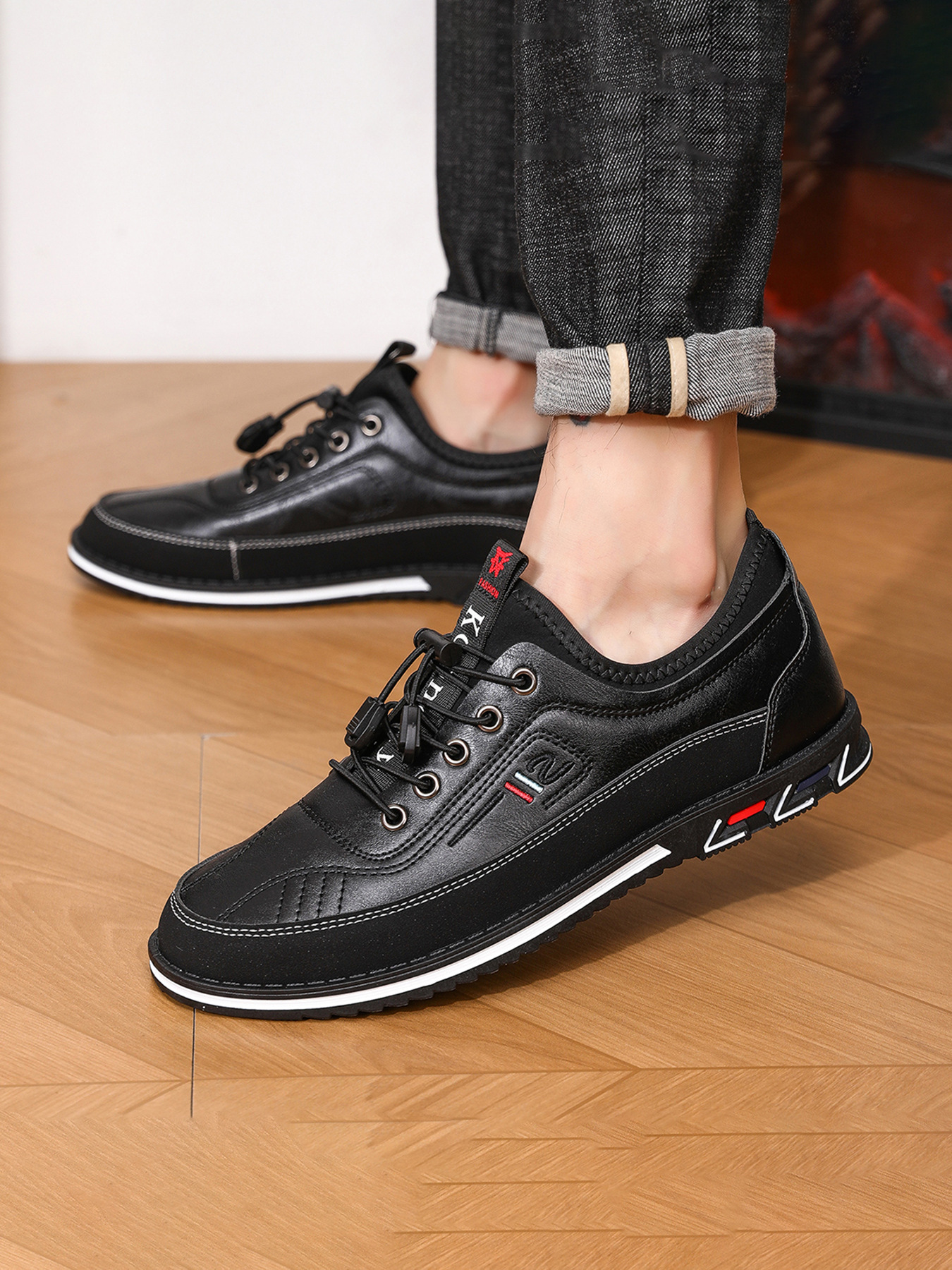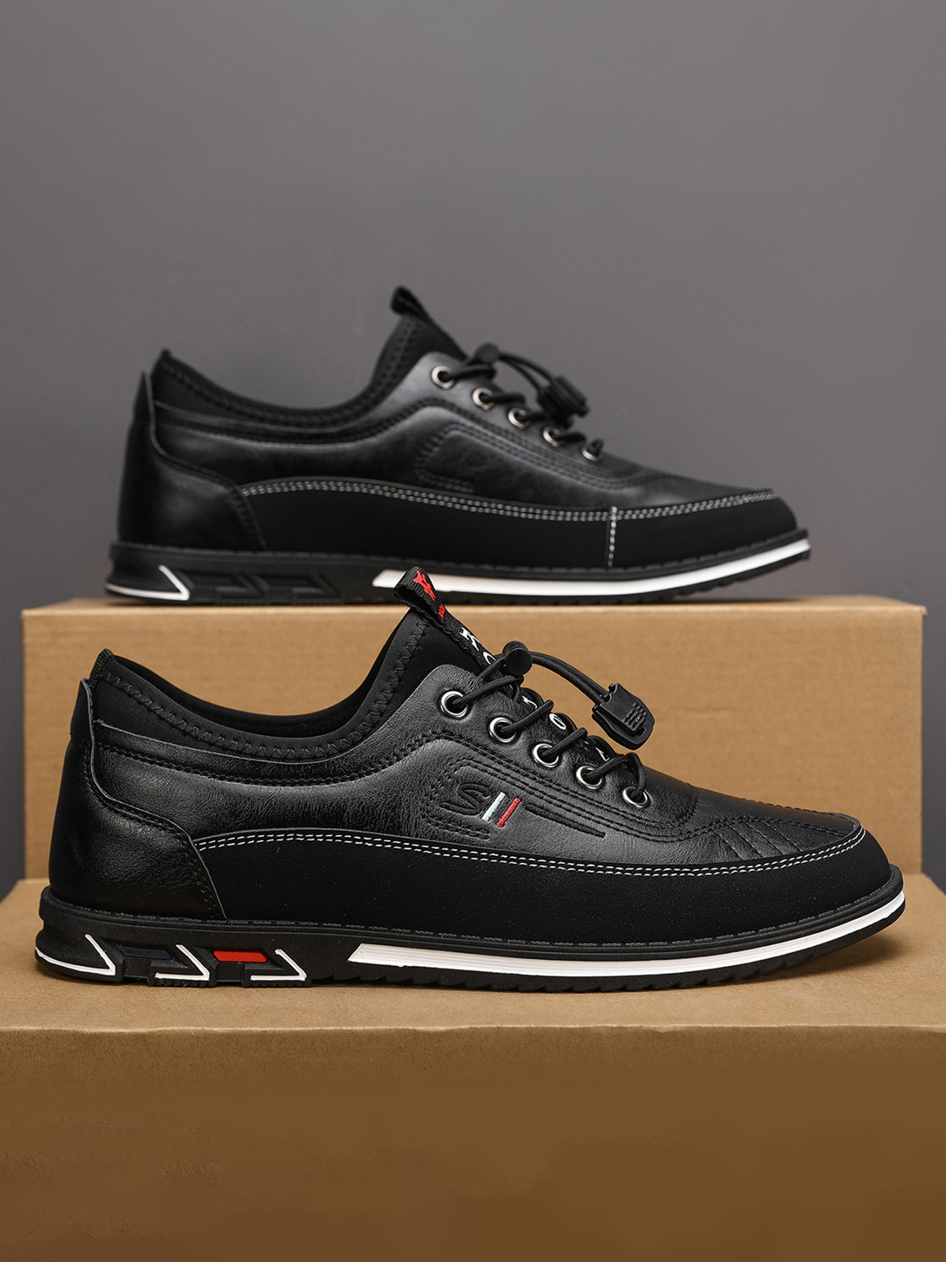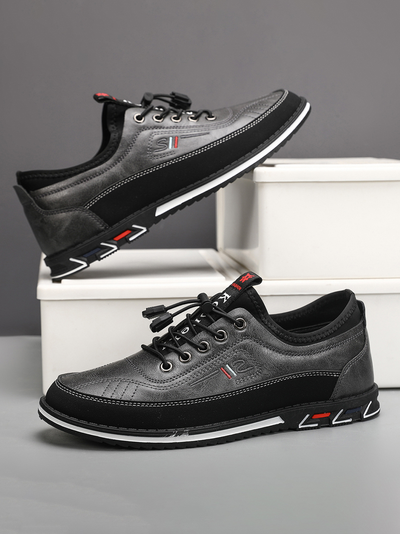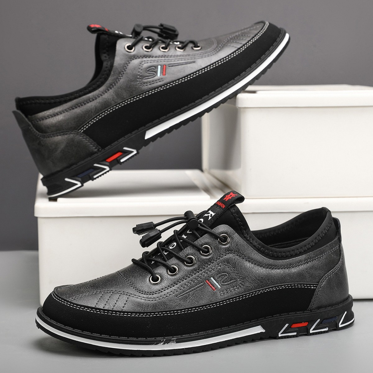 플러스 사이즈 도매 국경 통기성 가죽 편안한 남성 신발 2024 새로운 캐주얼 컬러 매칭 운동화 간단한 패션