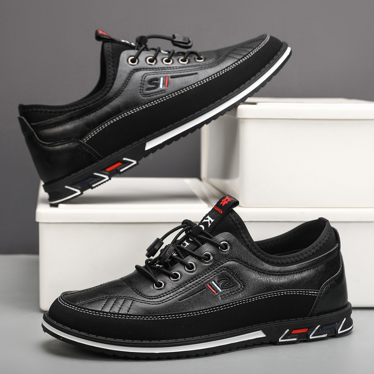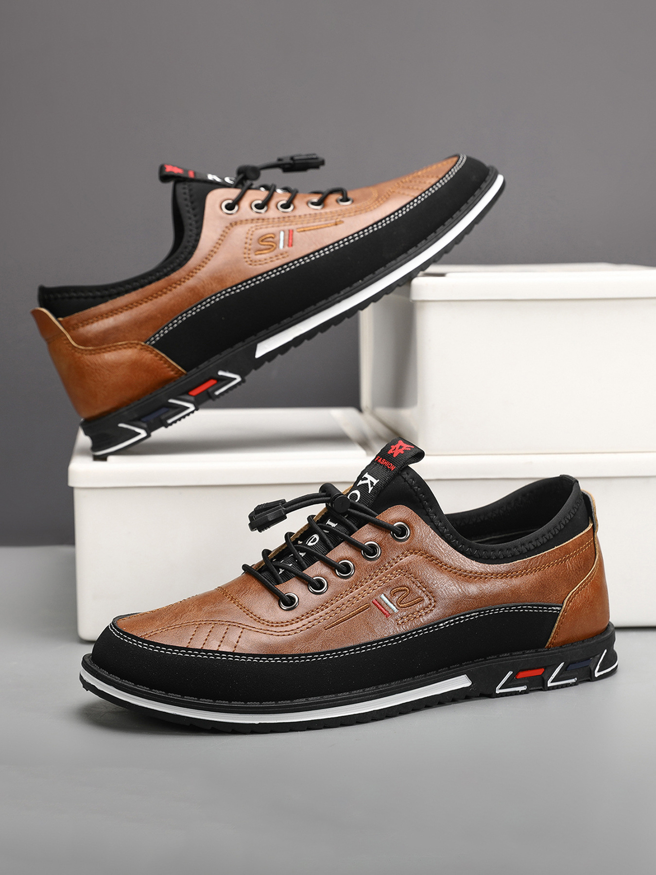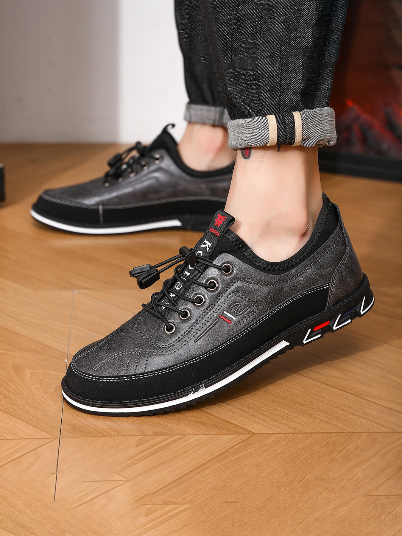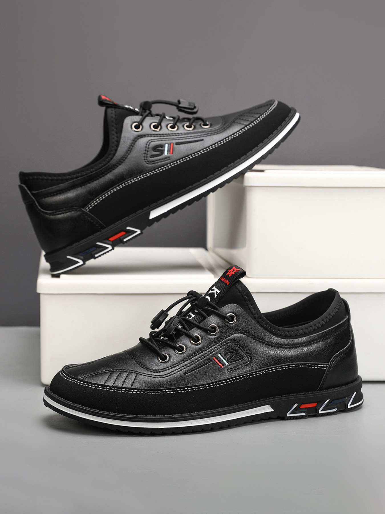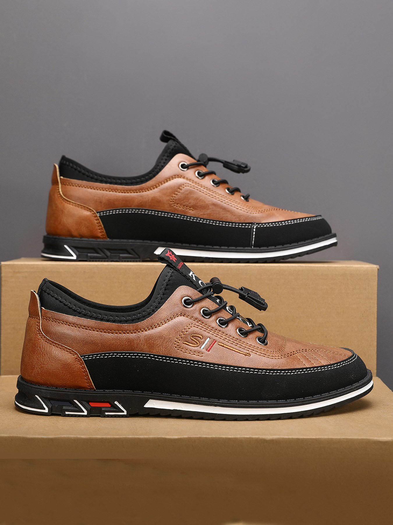 플러스 사이즈 도매 국경 통기성 가죽 편안한 남성 신발 2024 새로운 캐주얼 컬러 매칭 운동화 간단한 패션