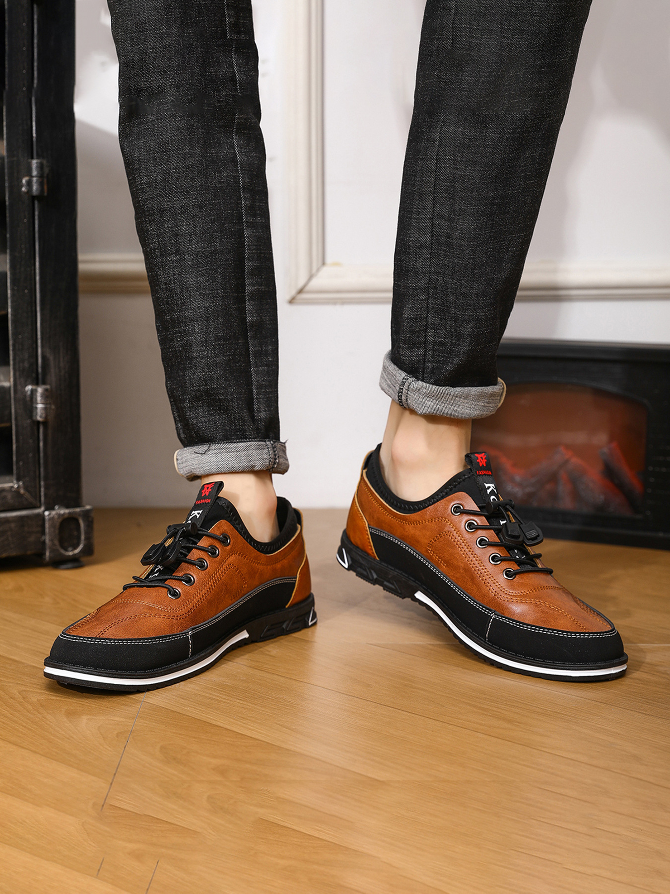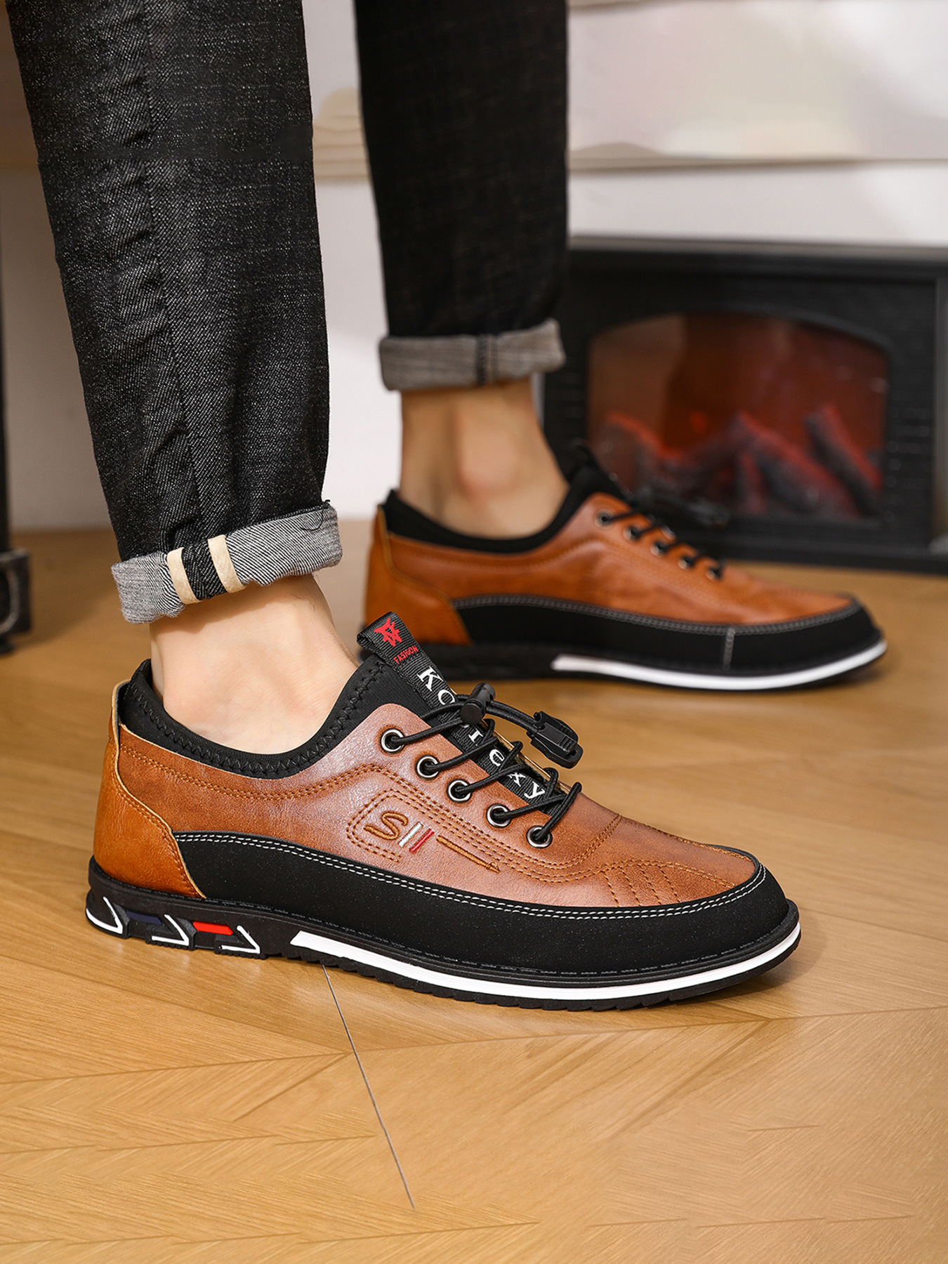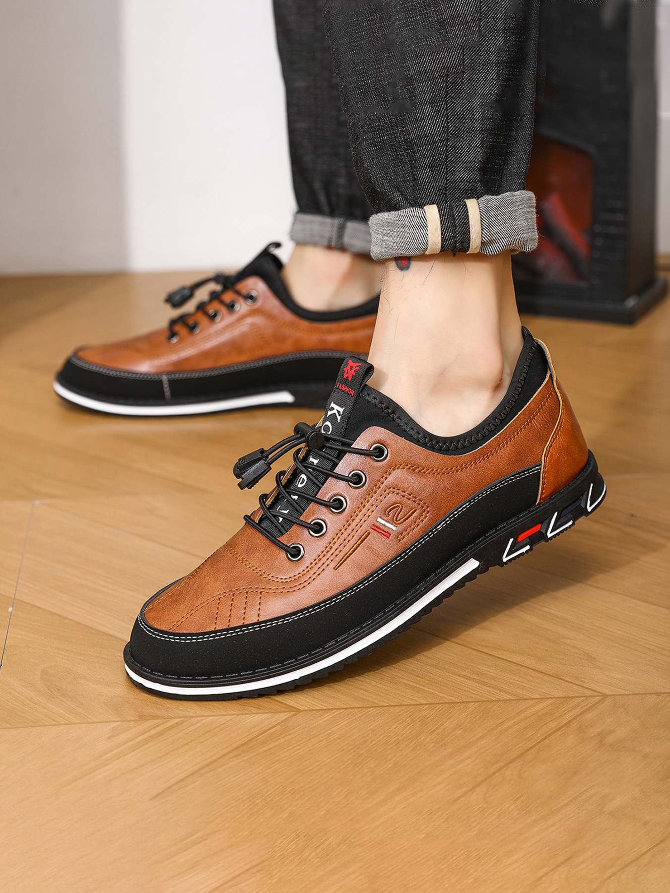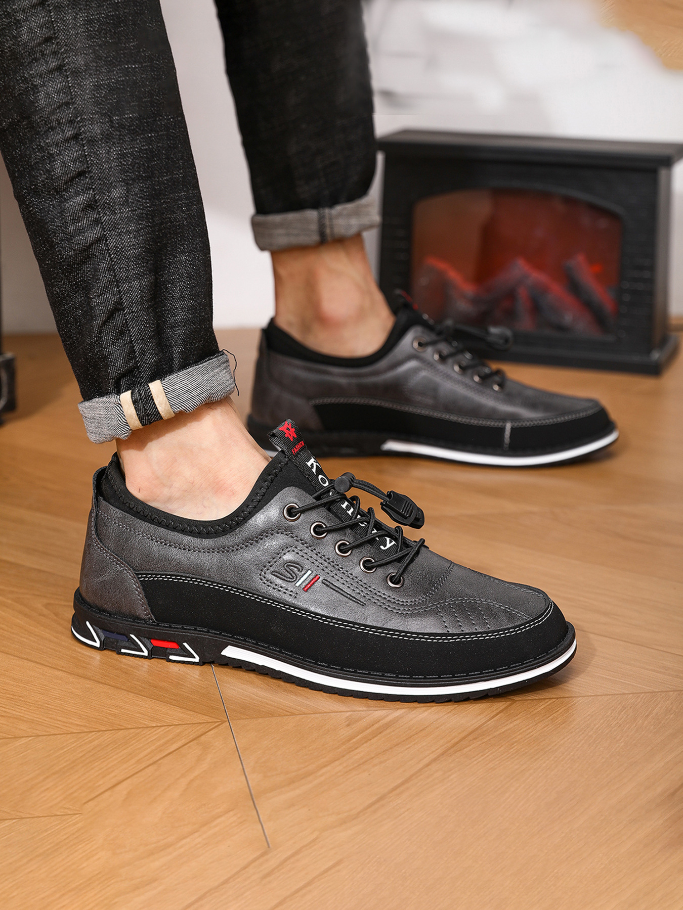 플러스 사이즈 도매 국경 통기성 가죽 편안한 남성 신발 2024 새로운 캐주얼 컬러 매칭 운동화 간단한 패션