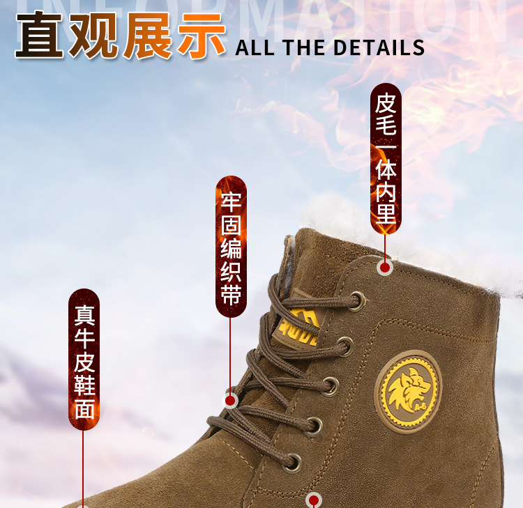 모피 원 울 스노우 부츠 남성용 두꺼운 코튼 슈즈 노동 보호 코튼 슈즈 냉간 동북 코튼 부츠 따뜻한 하이탑 코튼 슈즈