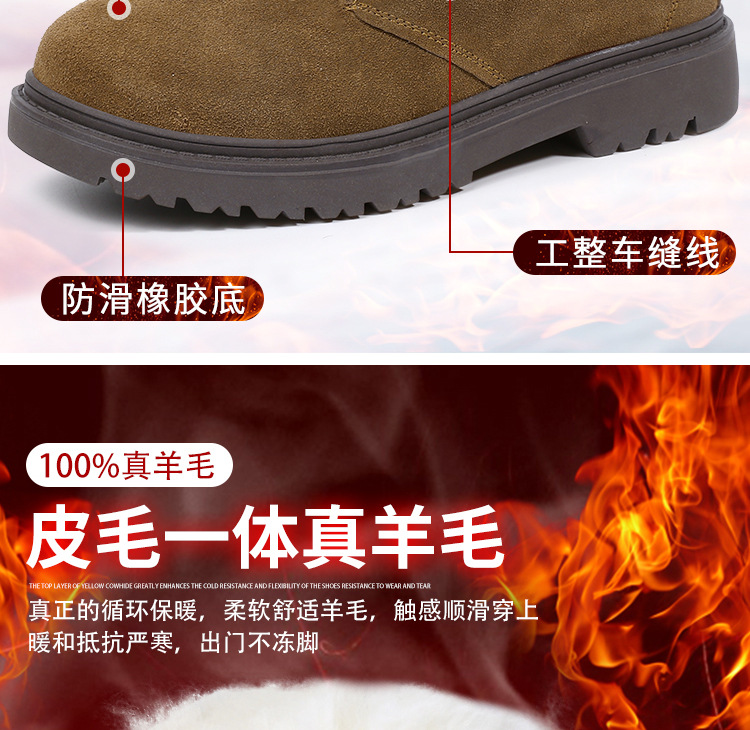 업그레이드된 모피 일체형 [두꺼운 울] 1층 소가죽 스노우 울 쇠고기 힘줄 바닥