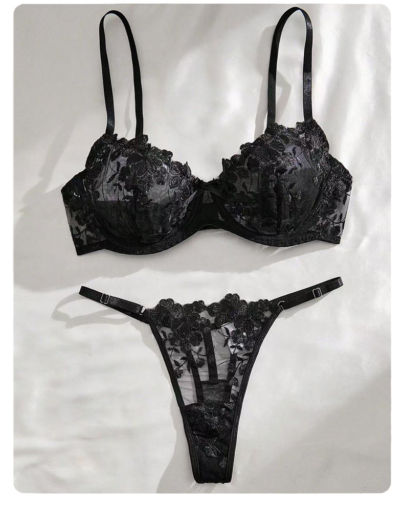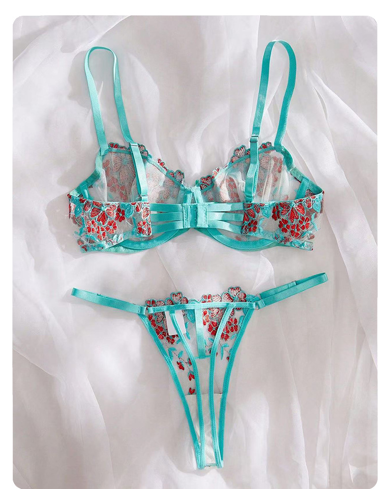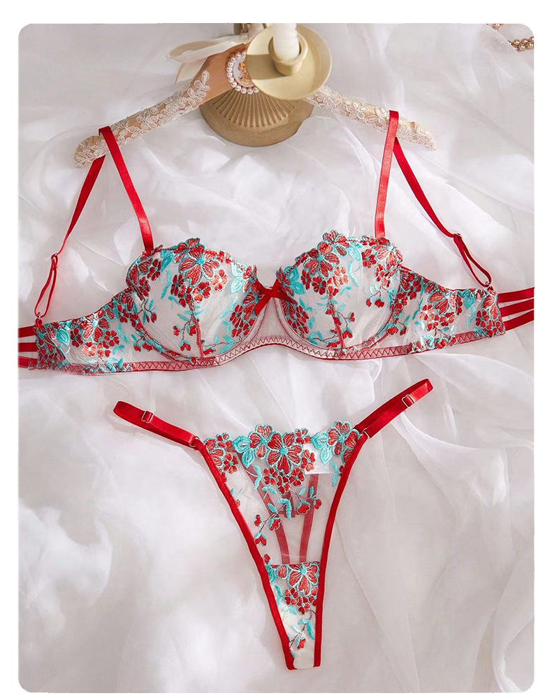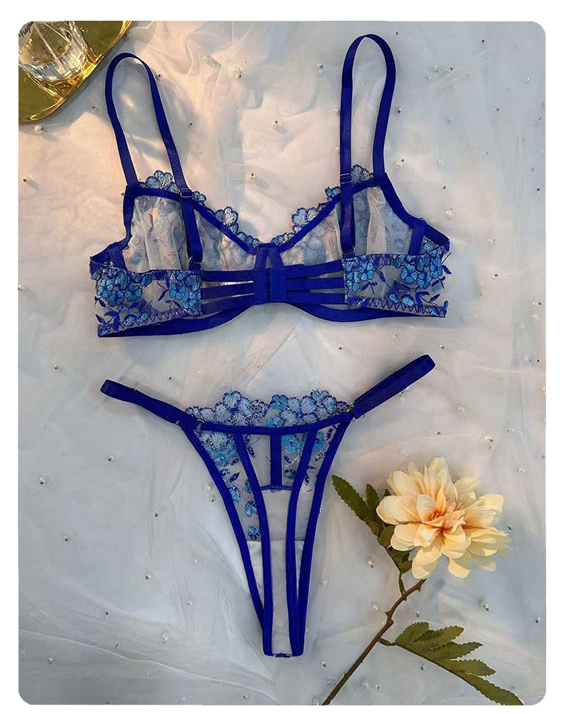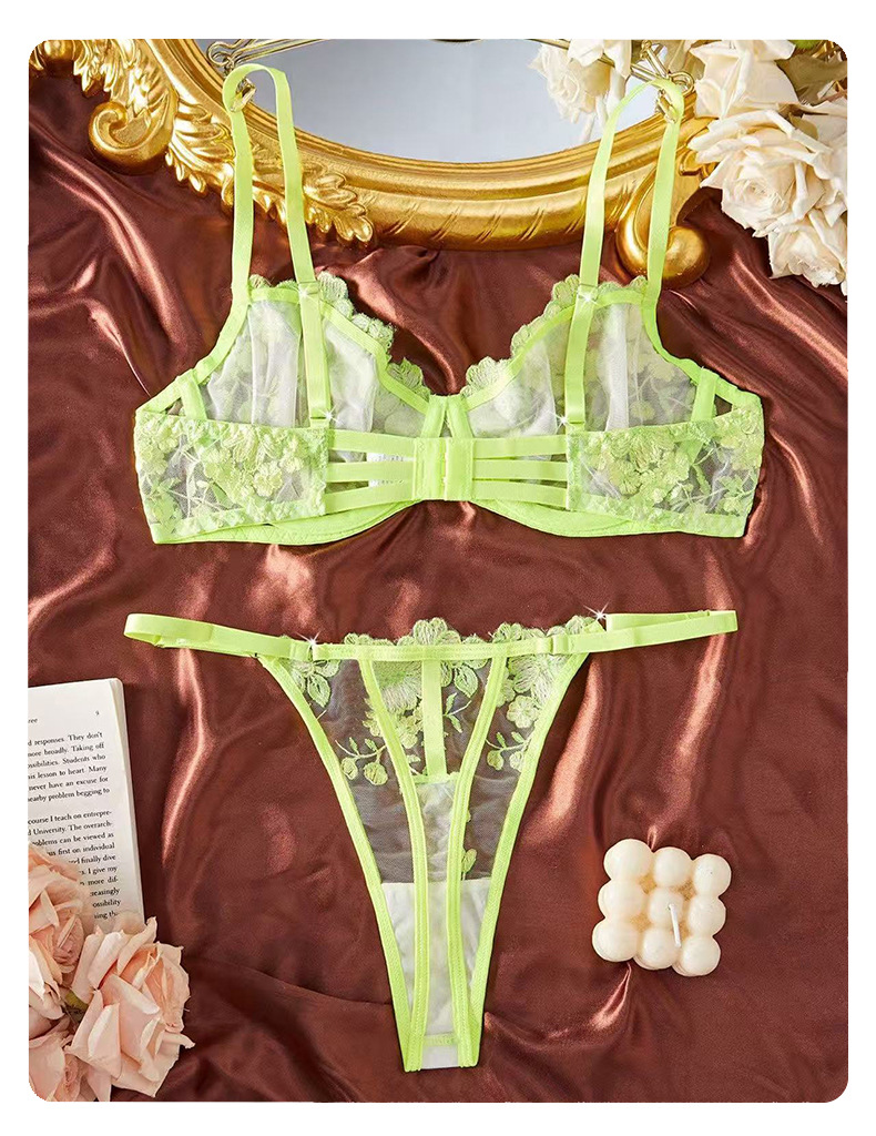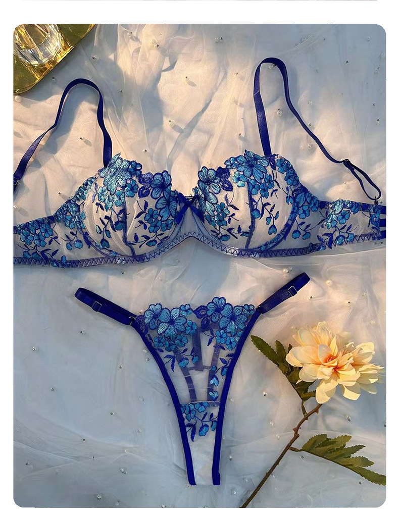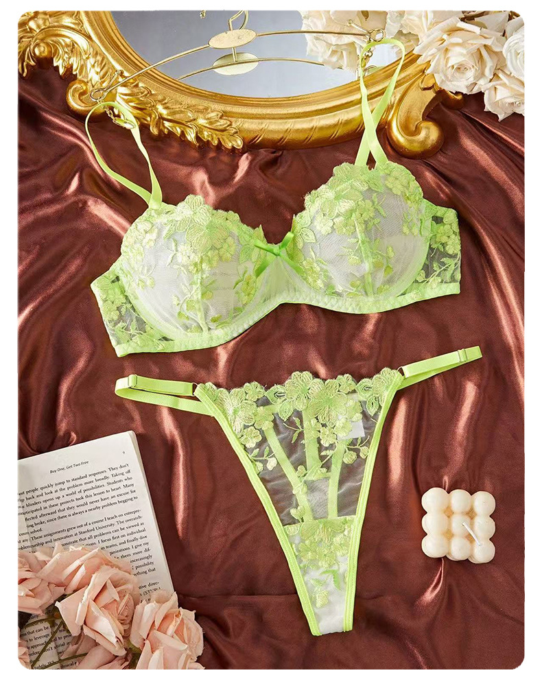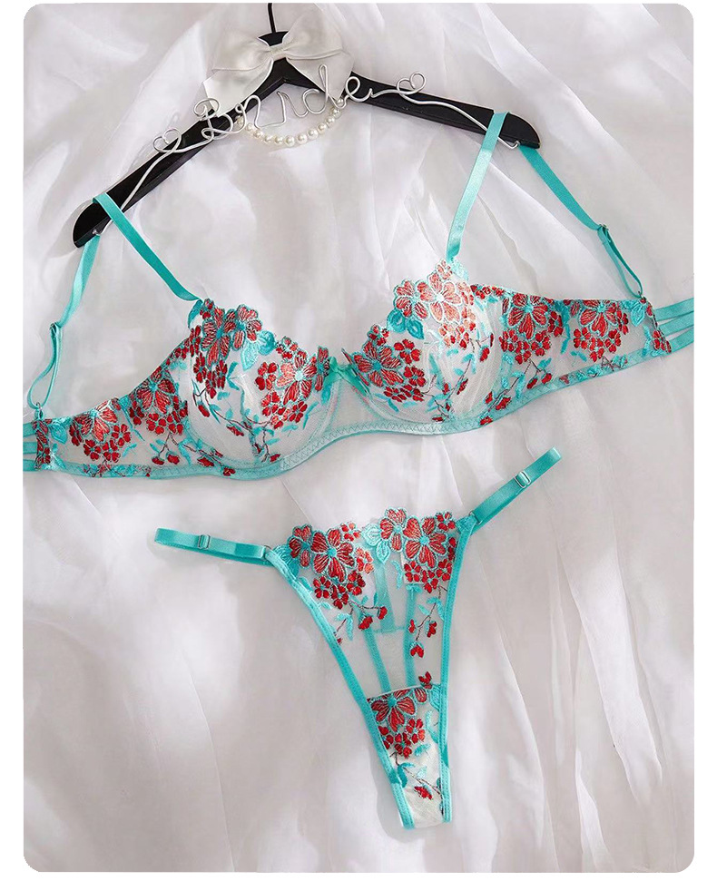 새로운 숙녀 신선한 섹시한 인쇄 자수 란제리 투명 유혹 섹시한 브래지어 두 조각 세트