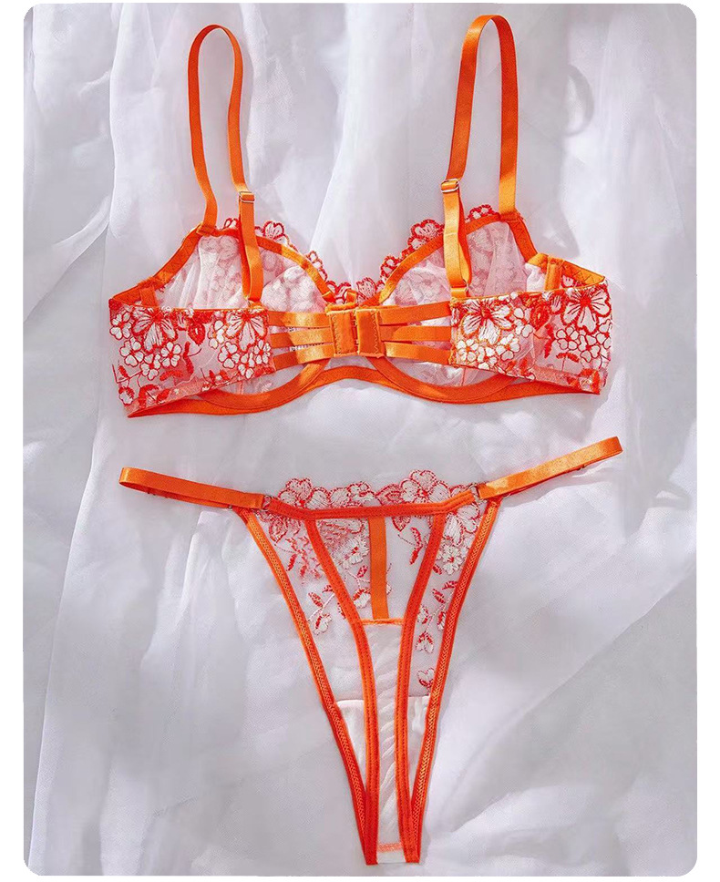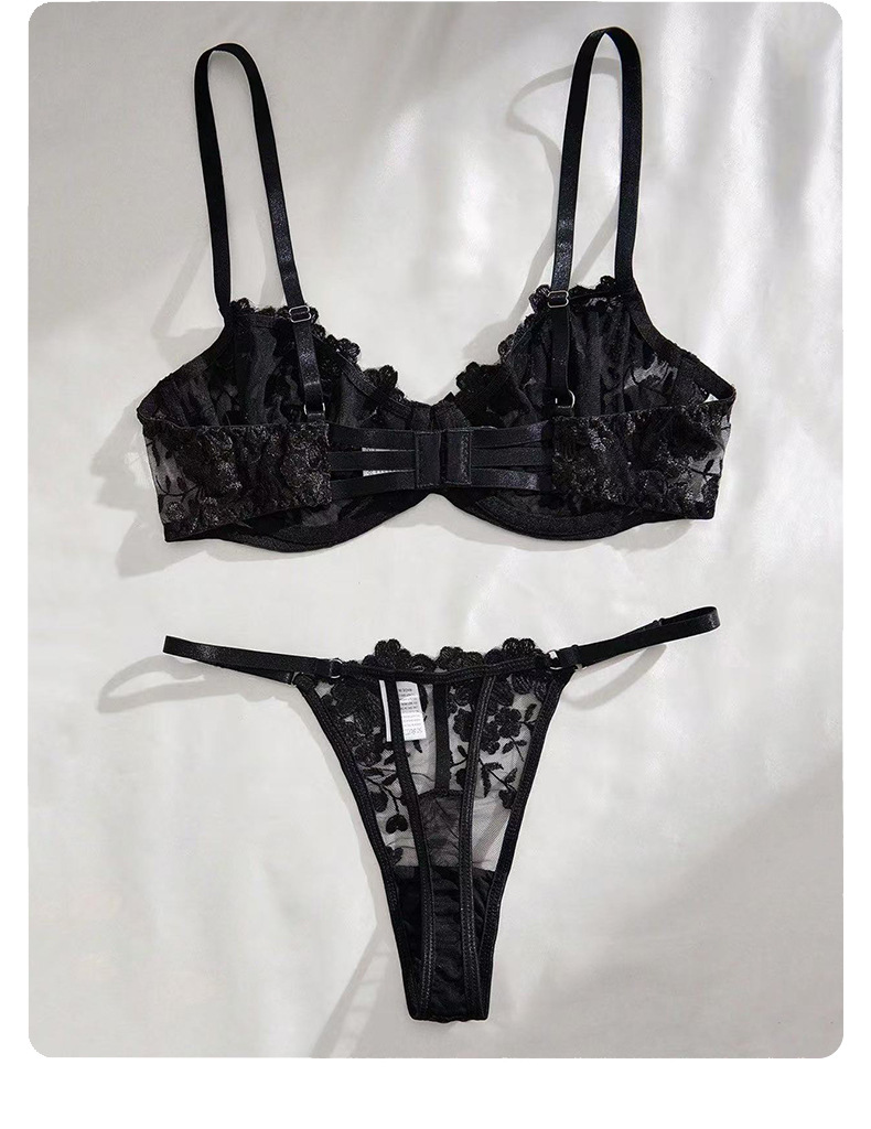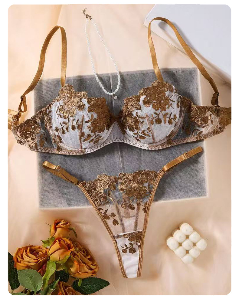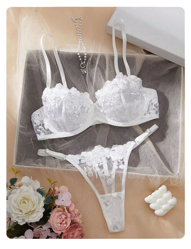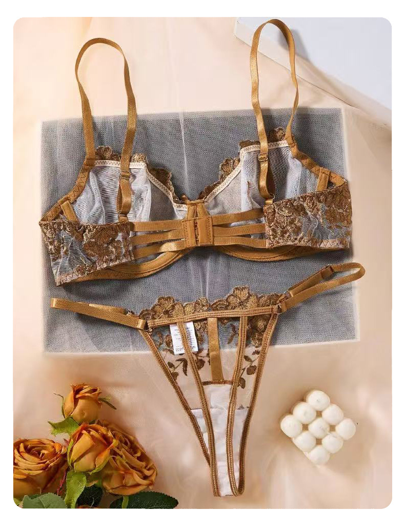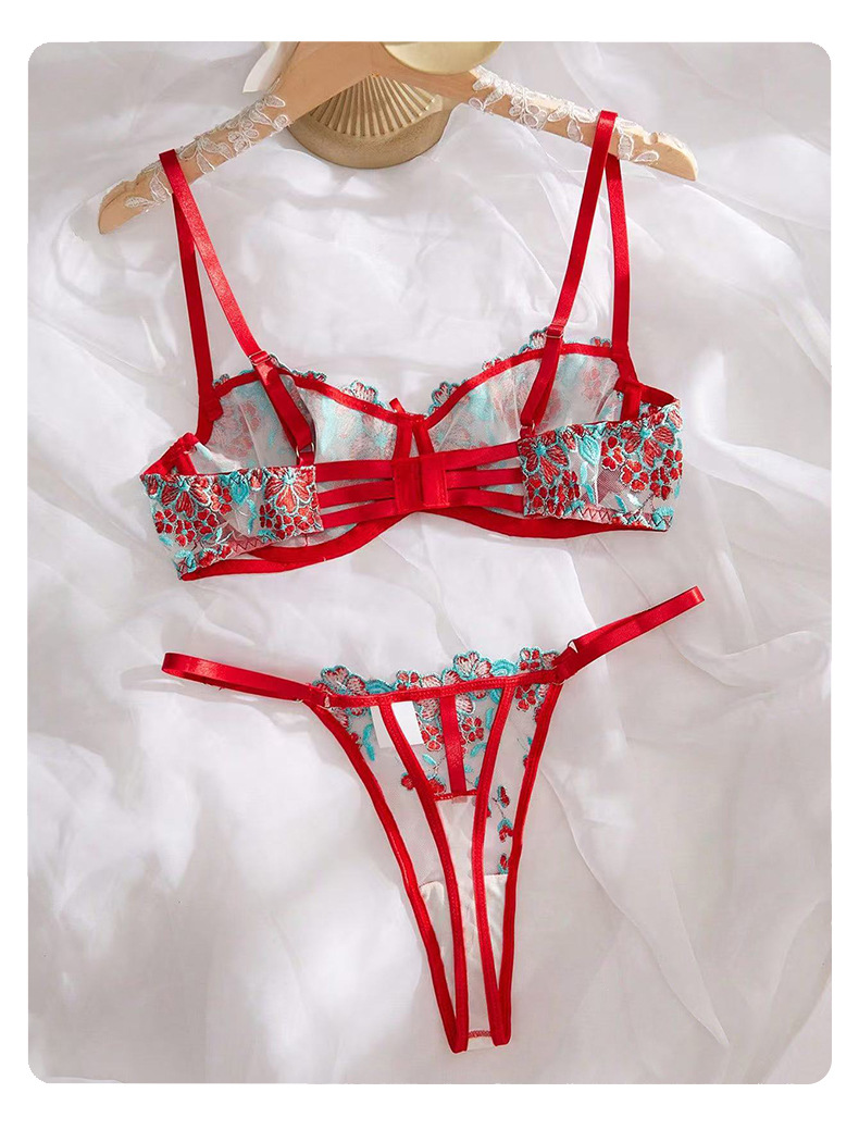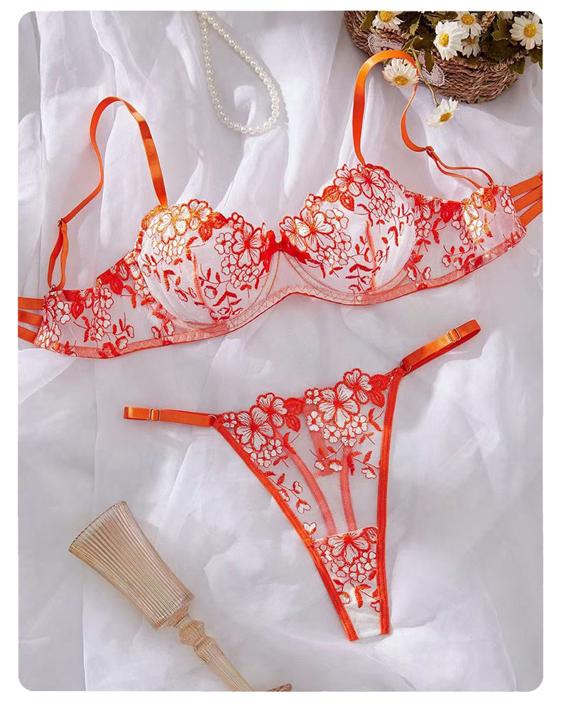 새로운 숙녀 신선한 섹시한 인쇄 자수 란제리 투명 유혹 섹시한 브래지어 두 조각 세트
