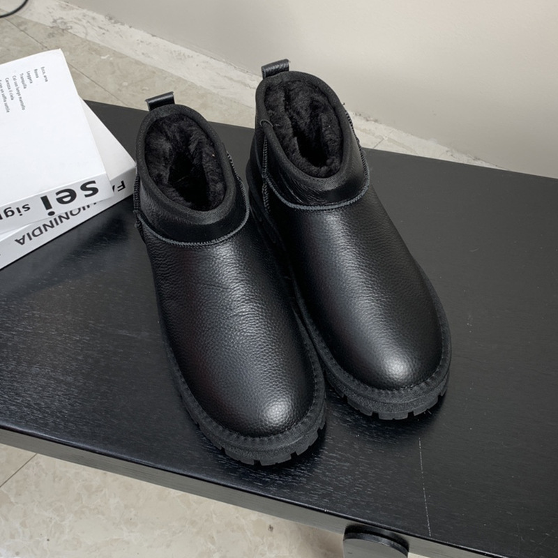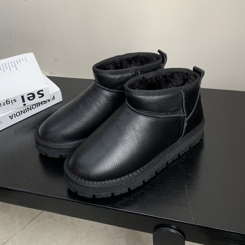 1층 소가죽 스노우 부츠 여성용 겨울 2025 신상 슬림핏 숏부츠 미끄럼 방지 방수 보온 부츠 플러스 벨벳 5853