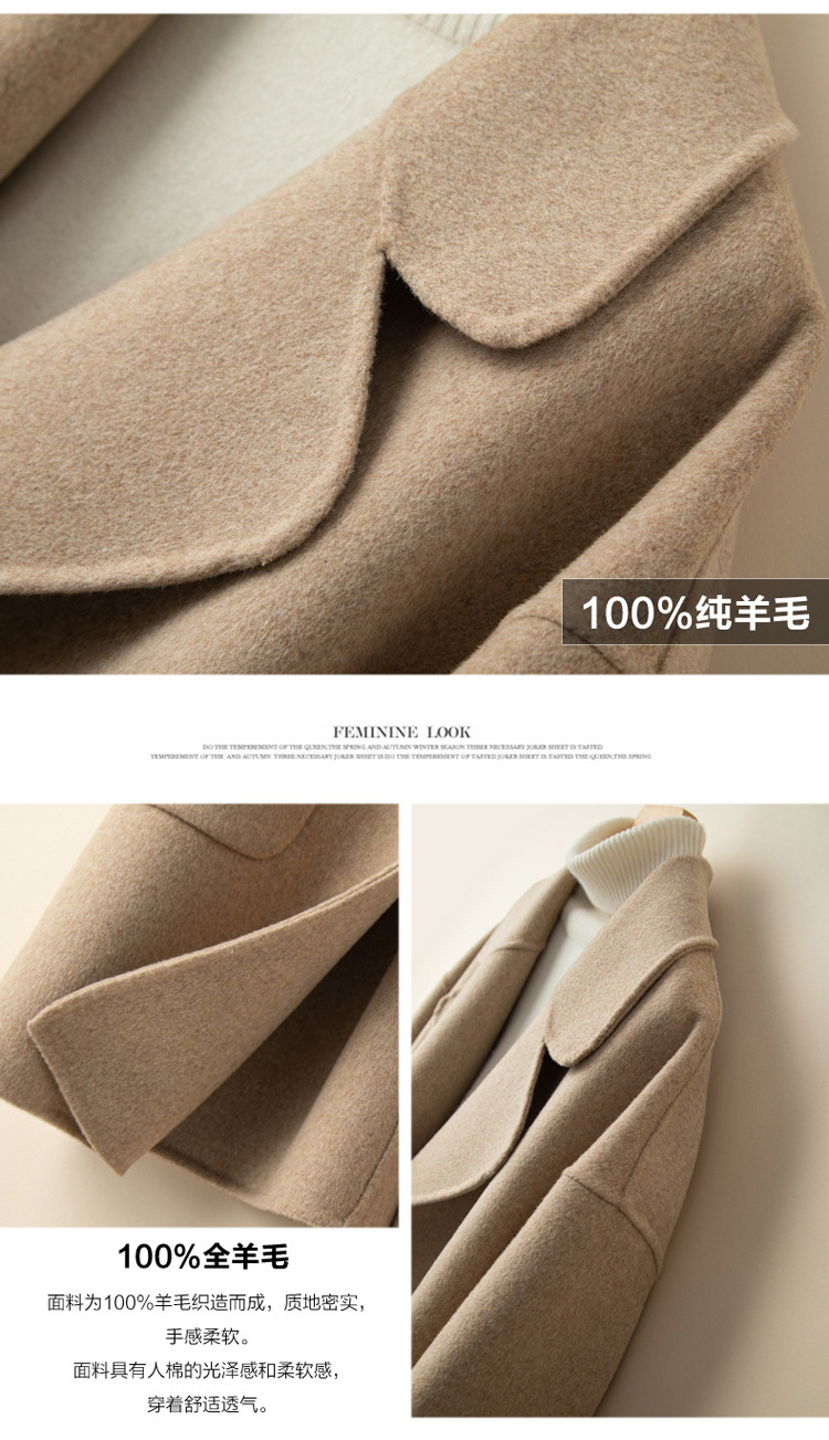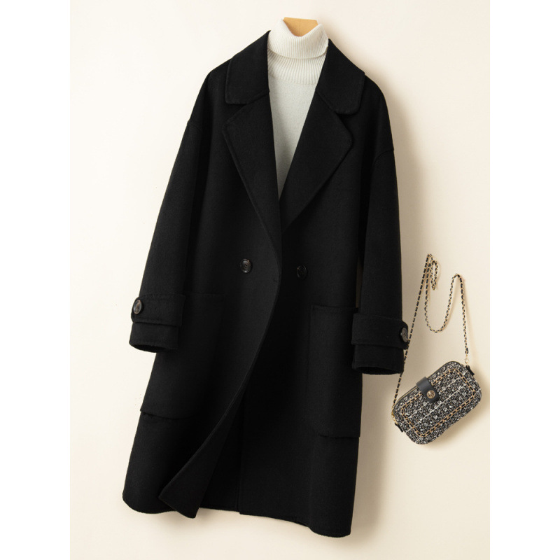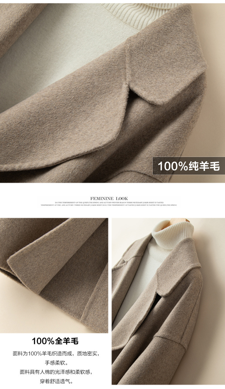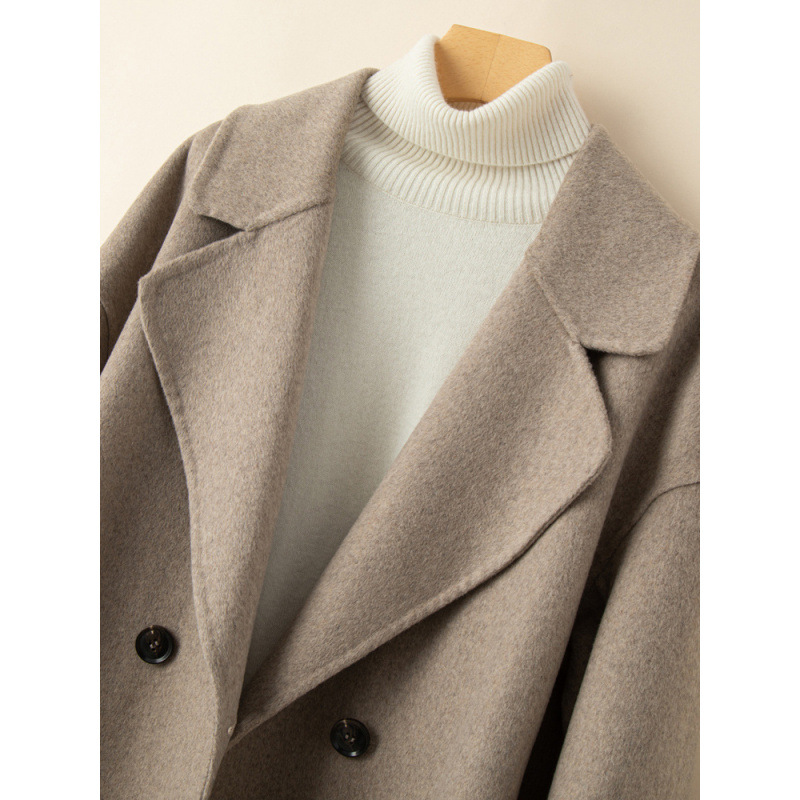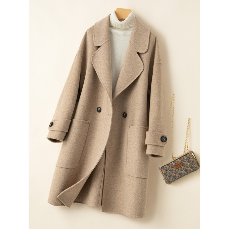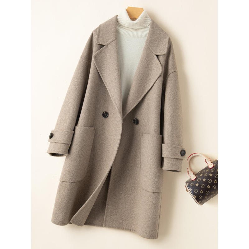 2024 년 가을 새로운 양면 양모 코트 여성 중장 유행 한국식 양모 원피스 여성용 칼라 재킷
