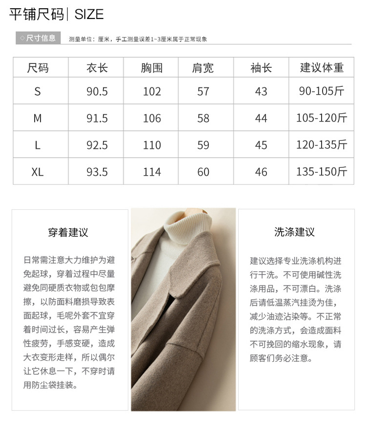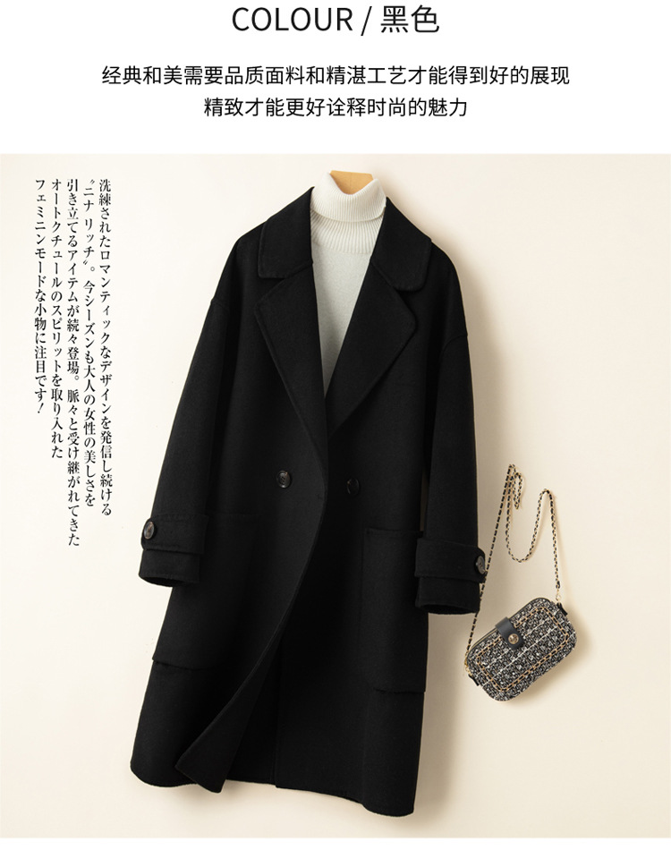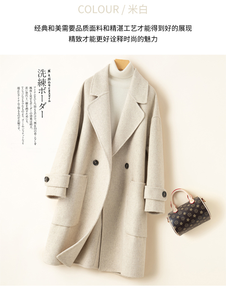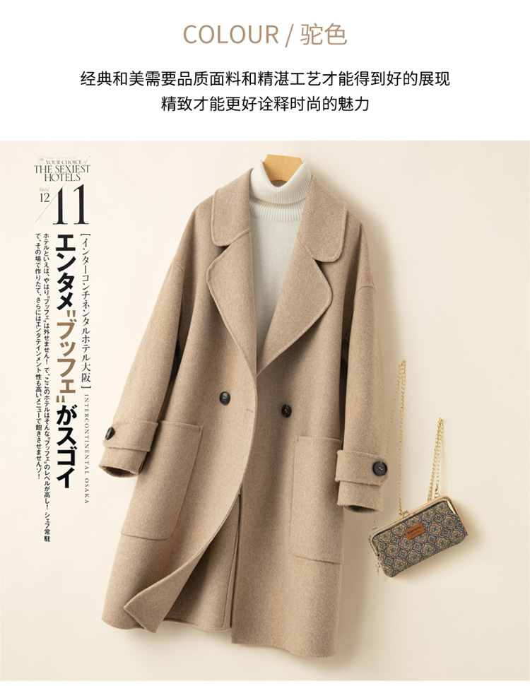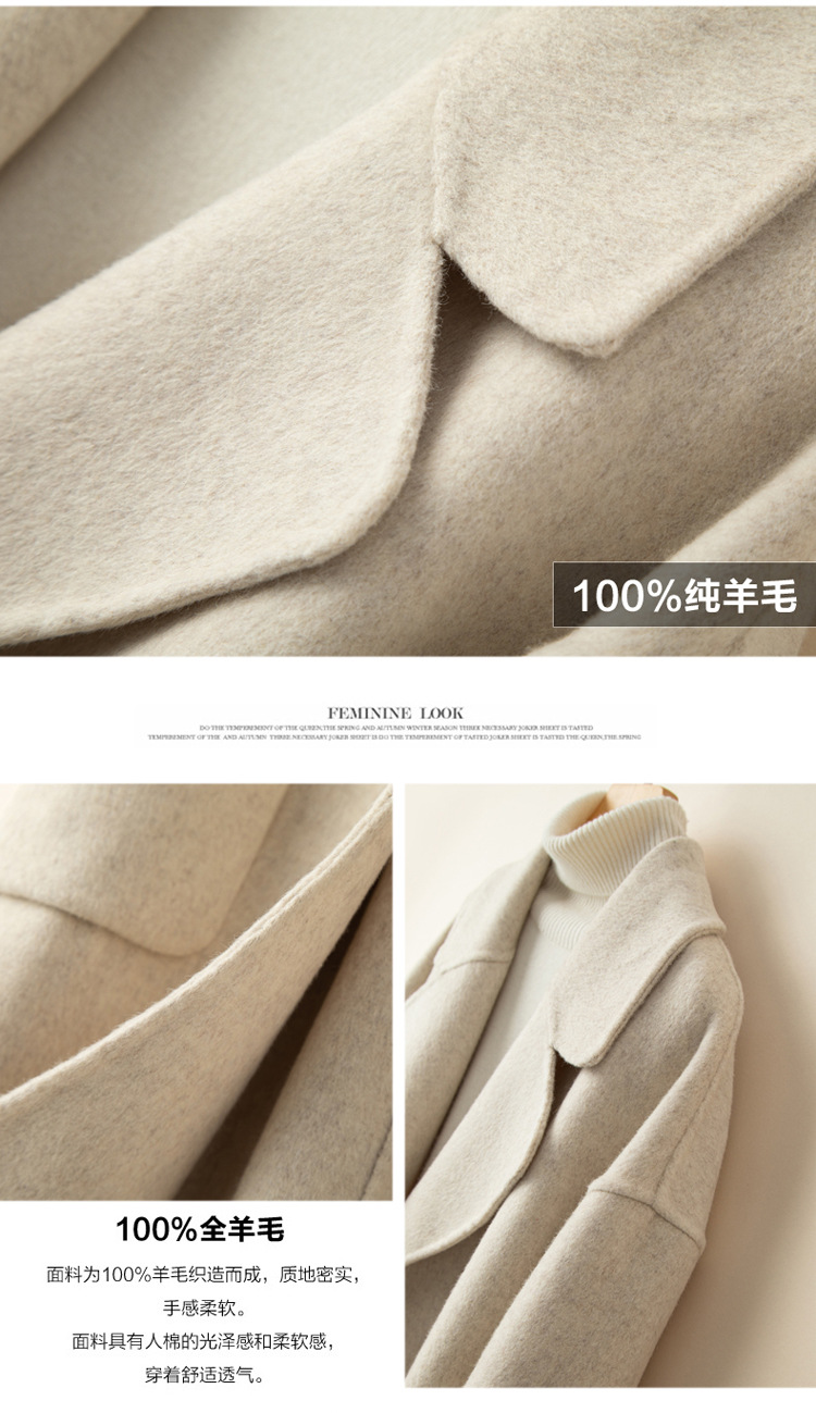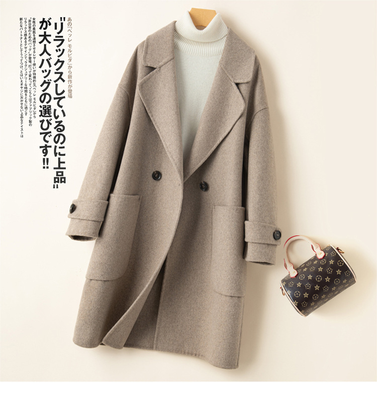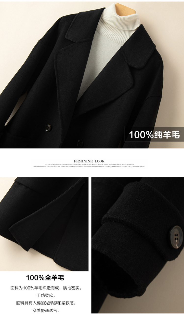 2024 년 가을 새로운 양면 양모 코트 여성 중장 유행 한국식 양모 원피스 여성용 칼라 재킷