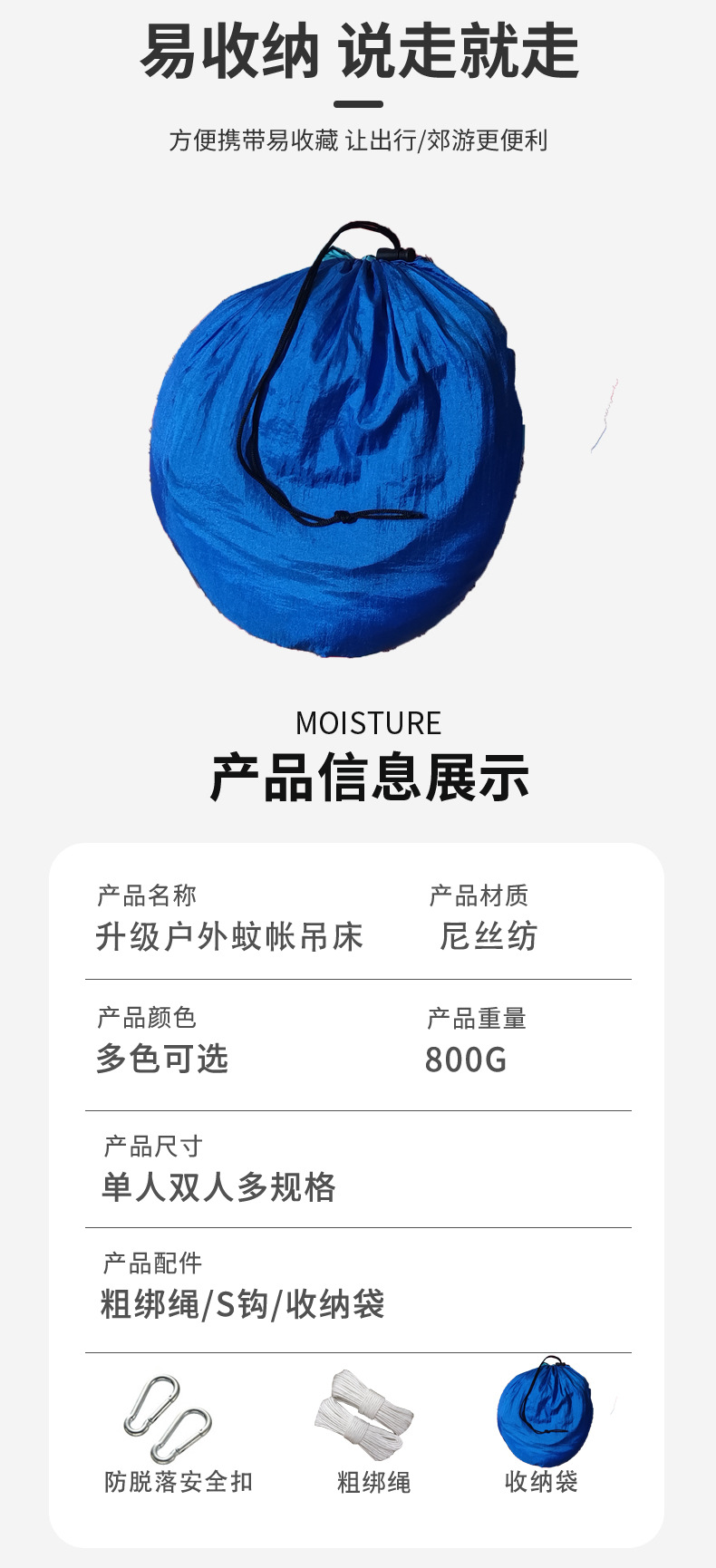 모기장 해먹, 가볍고 얇은, 침대 전복 방지, 모기 방지 나일론 섬유, 야외 캠핑 및 캠핑 용품, 국경 간 도매