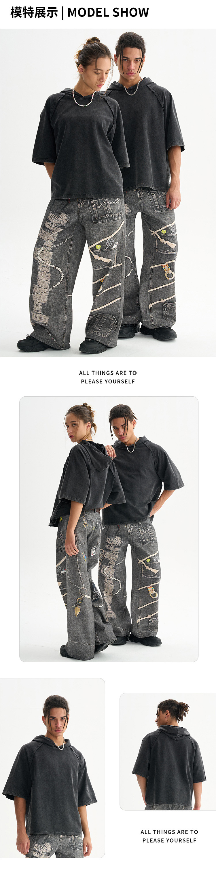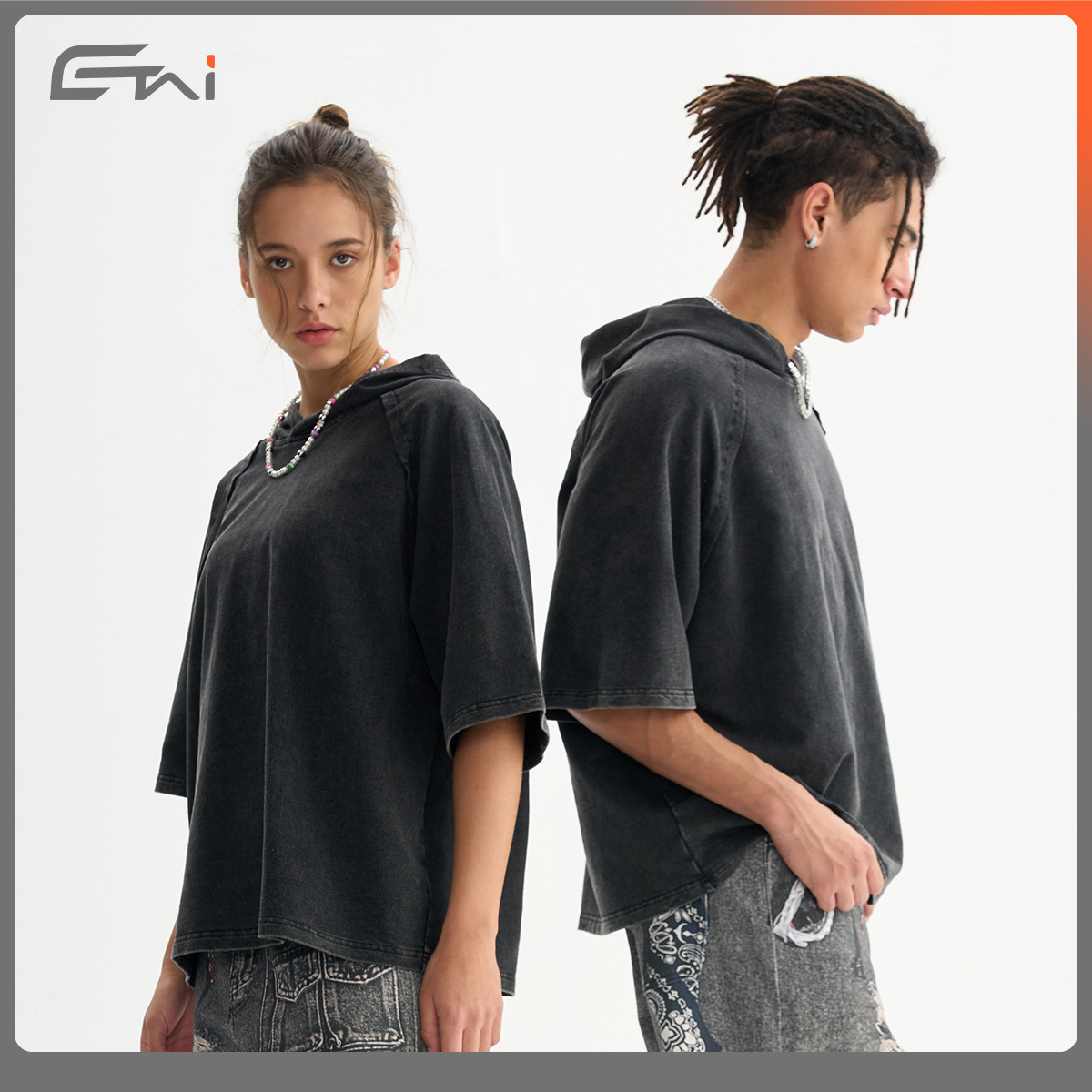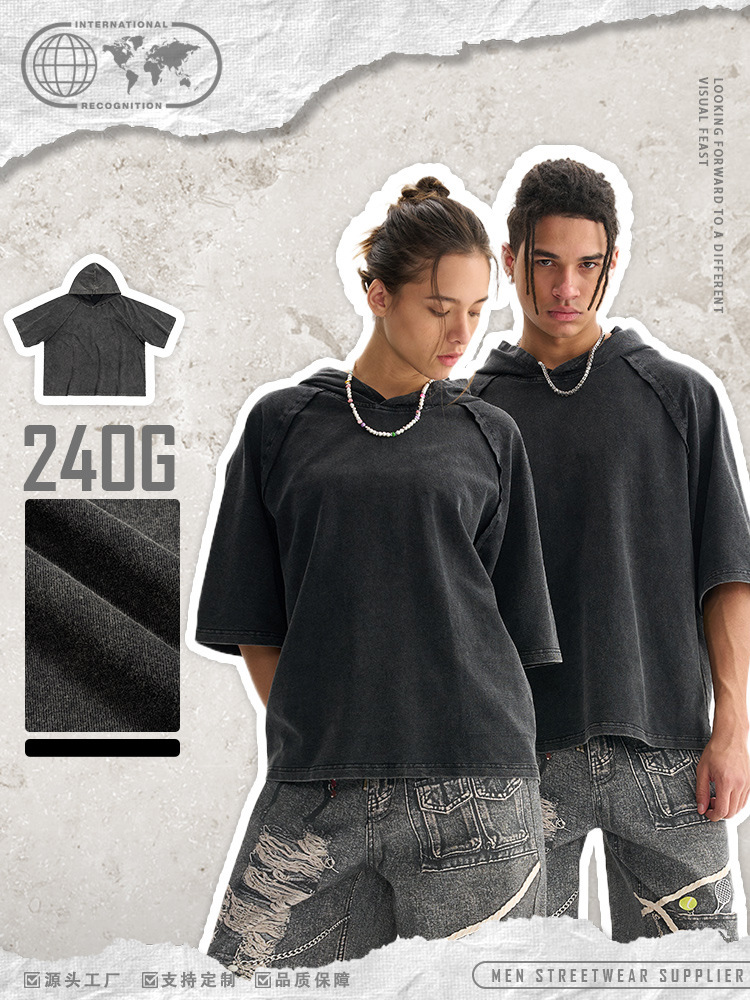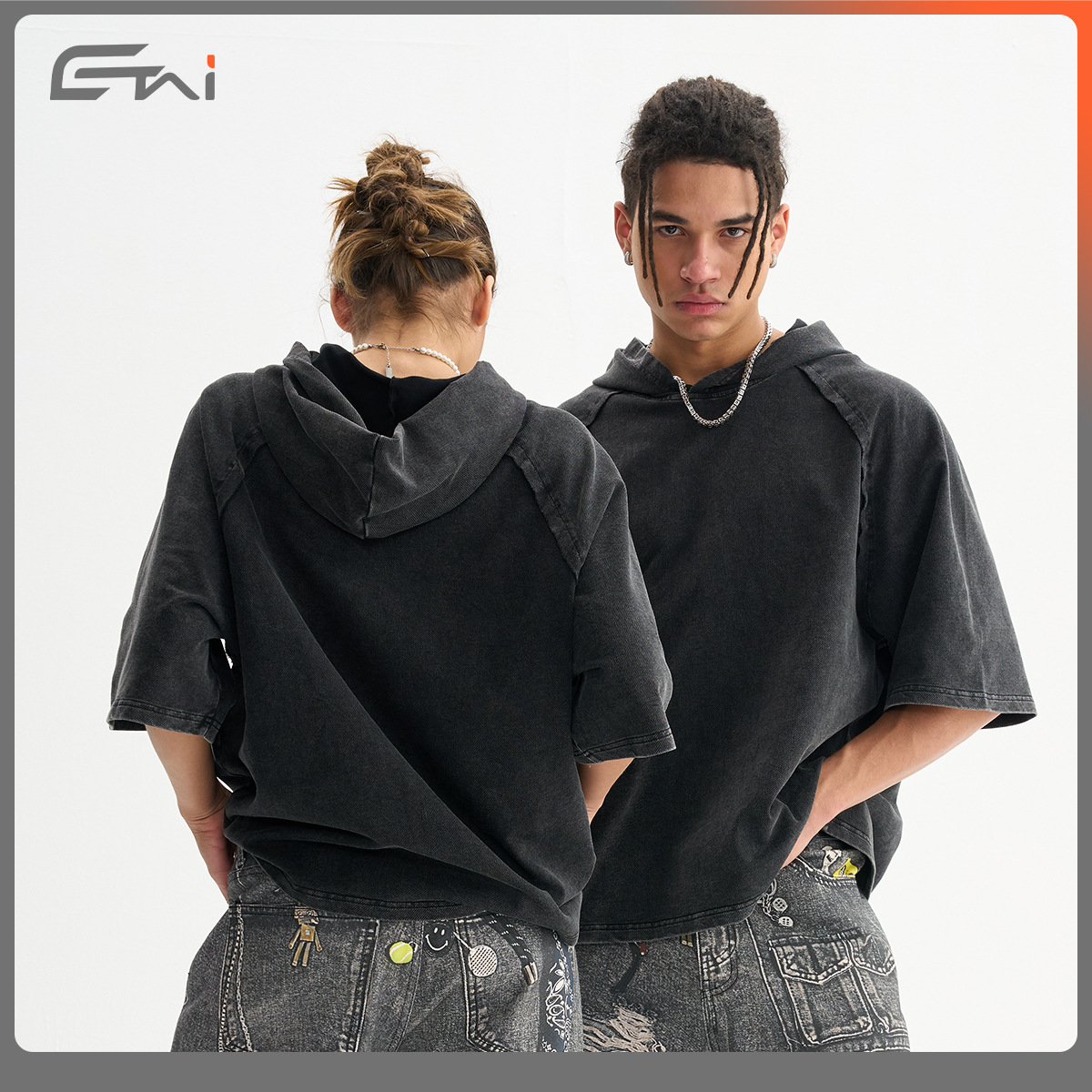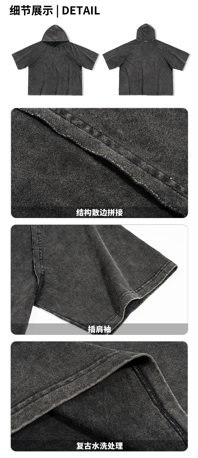 ETAI 남성복 | 고품질 아메리칸 레트로 후드 티셔츠 구조 루즈 엣지 스플라이싱 래글런 슬리브 워싱 남성용 반팔