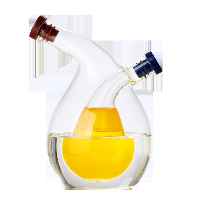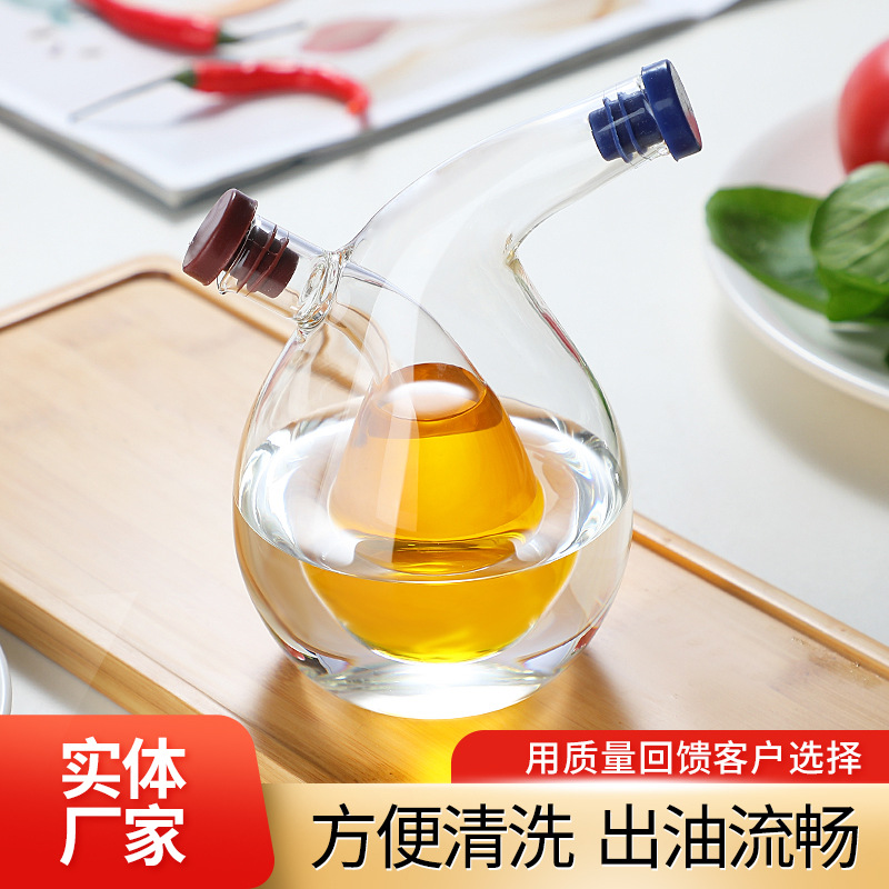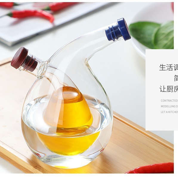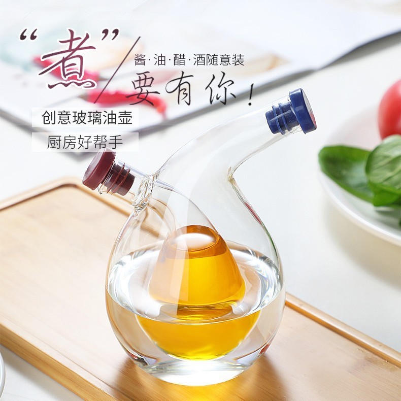 가정용 유리 기름 냄비 양념 병 두 배 층 간장 식초 병 기름 냄비 창조적 인 주방 용품 2-in -1 기름 식초 병
