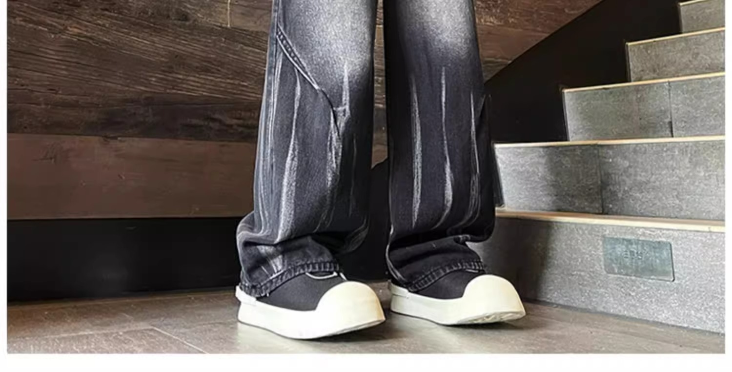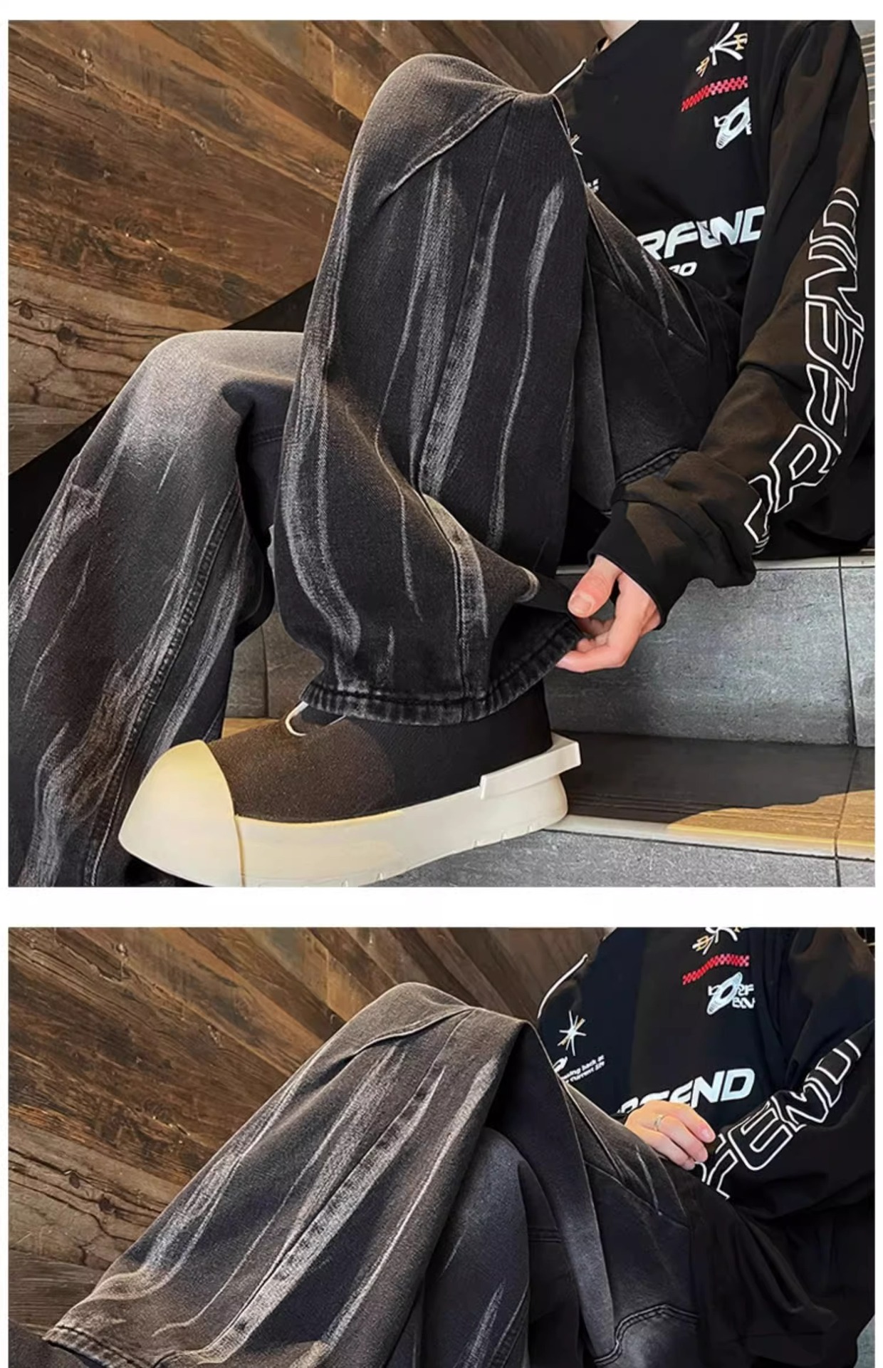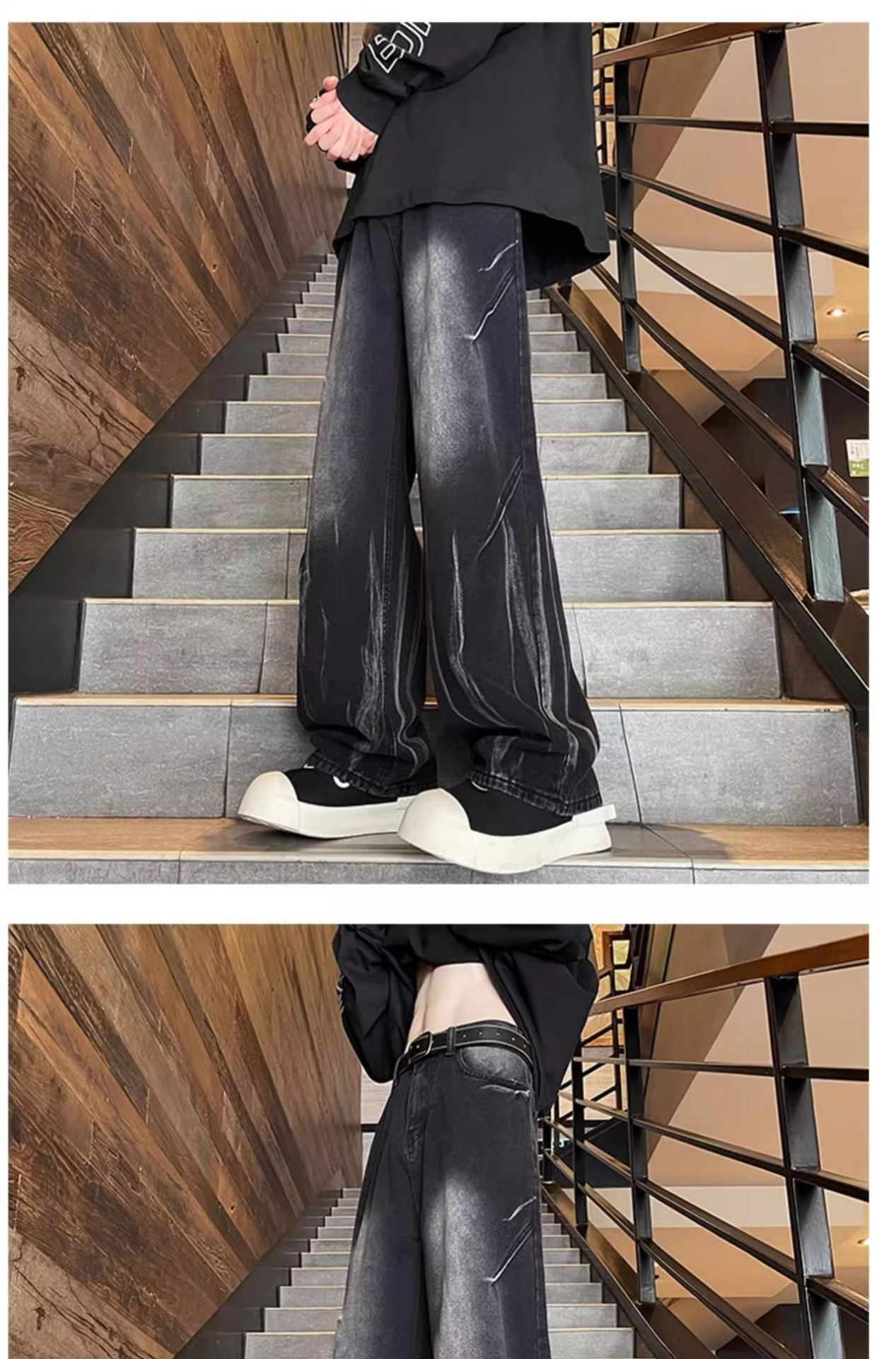 아메리칸 스타일 레트로 타이-다이 청바지 남성 봄과 가을 세척 그라디언트 하이 스트리트 바이브 스타일 느슨한 직선 다리 넓은 다리 바지