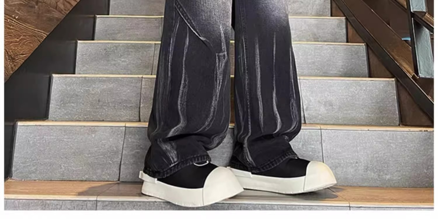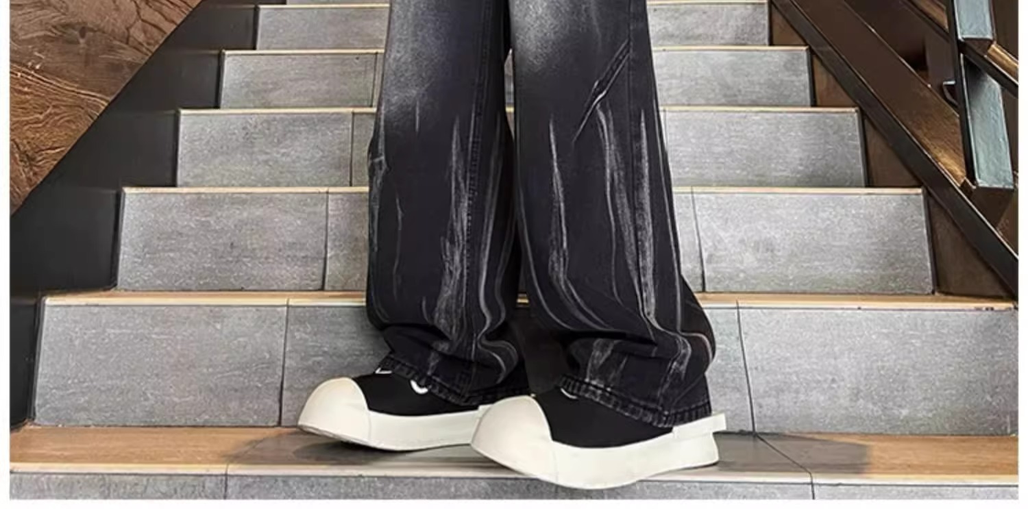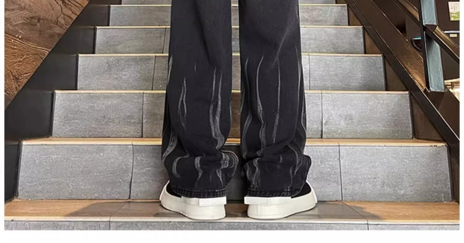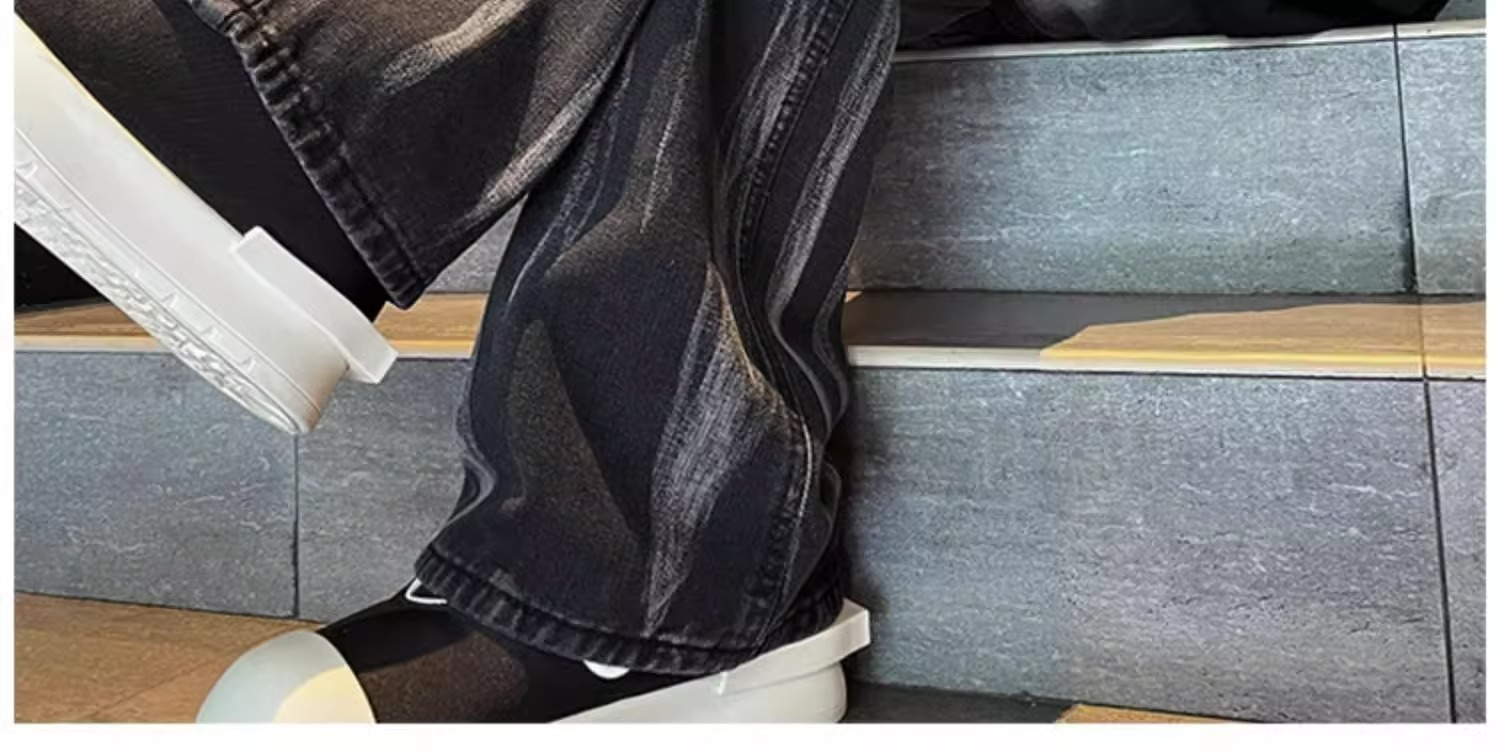 아메리칸 스타일 레트로 타이-다이 청바지 남성 봄과 가을 세척 그라디언트 하이 스트리트 바이브 스타일 느슨한 직선 다리 넓은 다리 바지