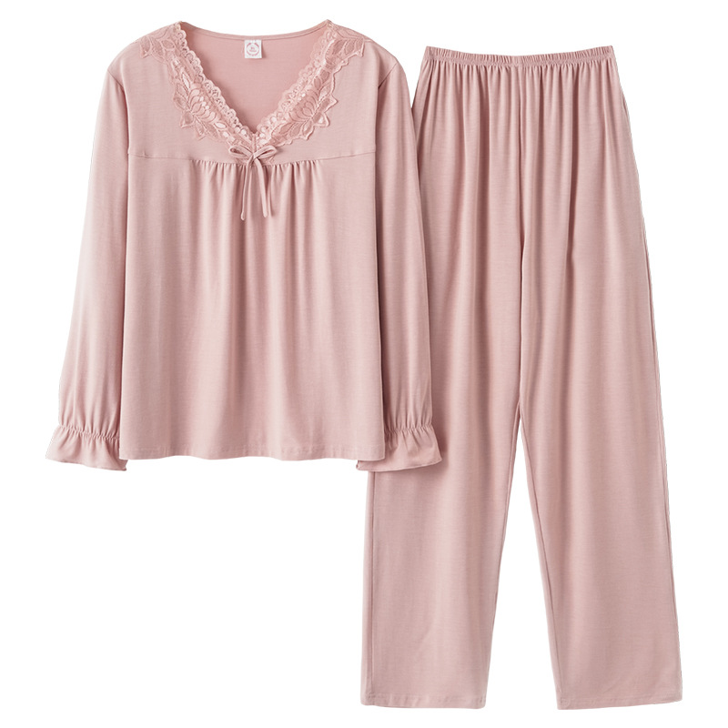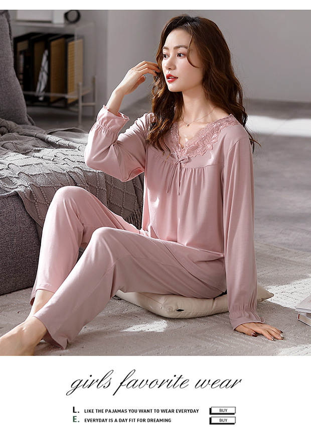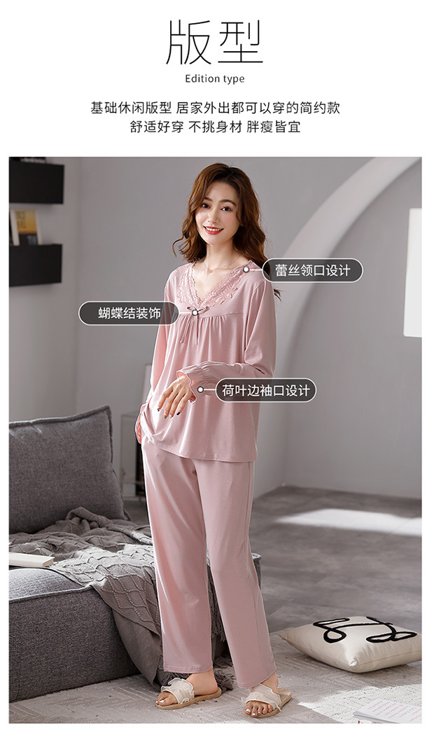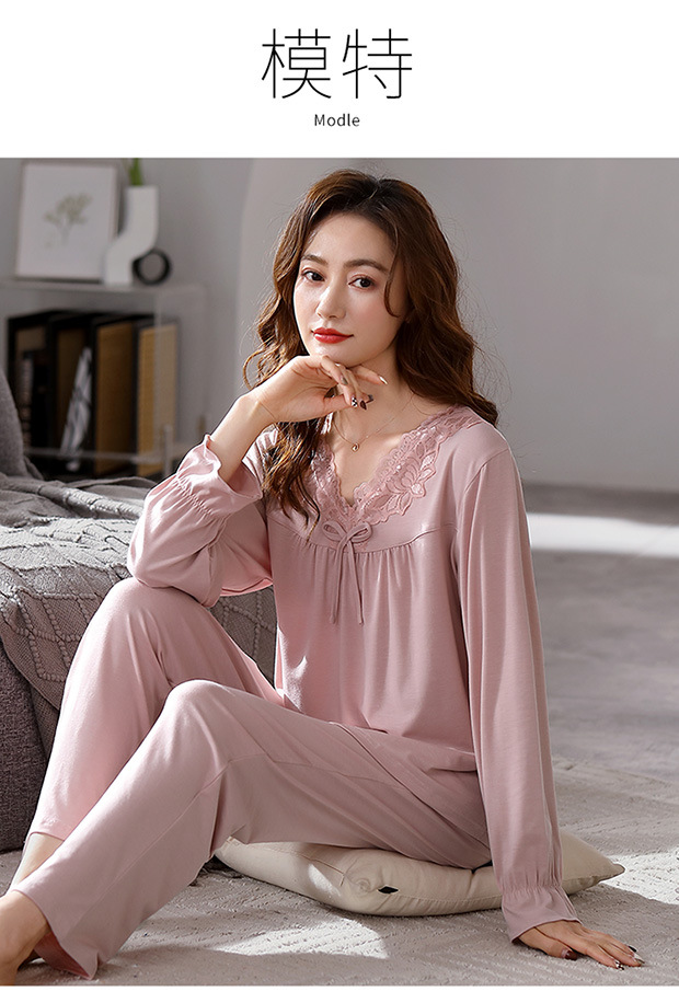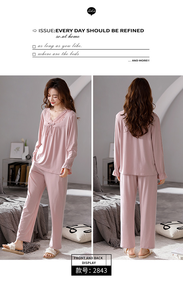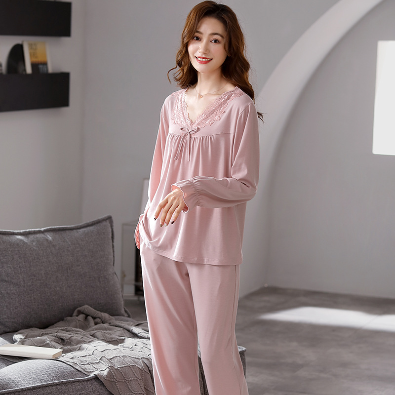 모달 파자마 2024 새로운 여성의 봄과 가을 세트 여성의 가을 하이 엔드 여성 가을 겨울 홈 의류