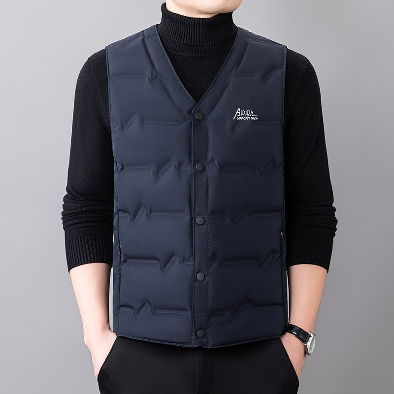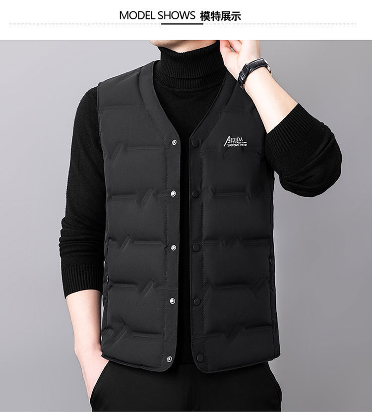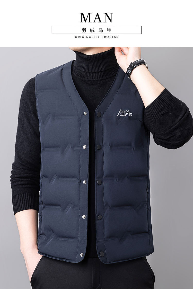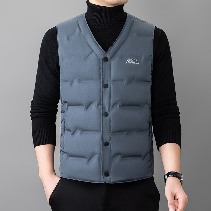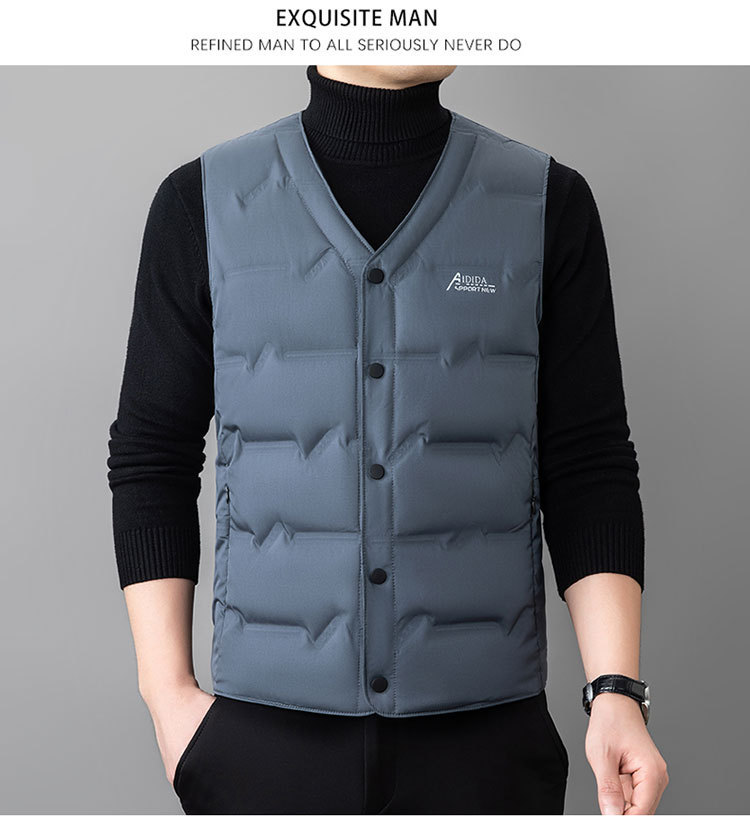 2024 년 가을 새로운 다운 조끼 남성용 민소매 허리 코트 캐주얼 아빠의 따뜻한 단색 화이트 오리 다운 조끼
