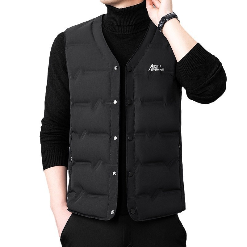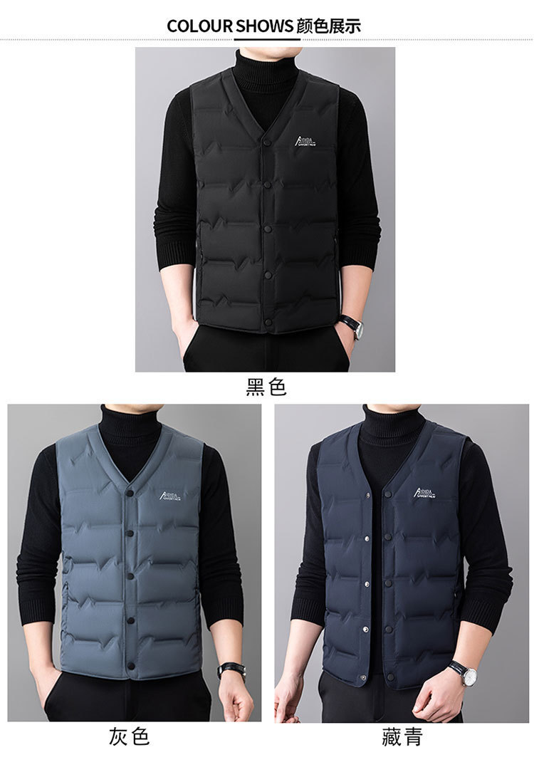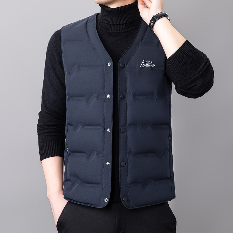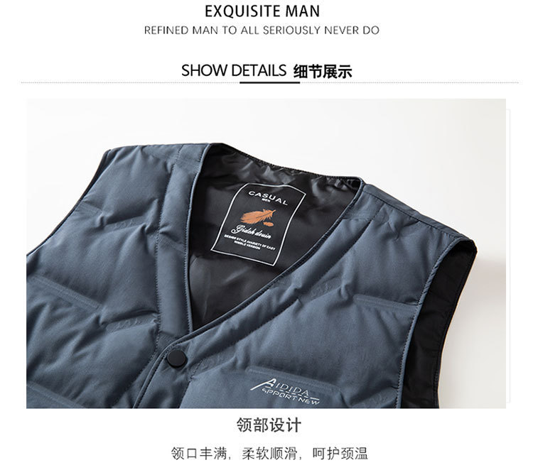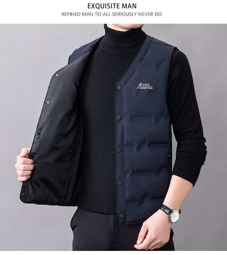 2024 년 가을 새로운 다운 조끼 남성용 민소매 허리 코트 캐주얼 아빠의 따뜻한 단색 화이트 오리 다운 조끼