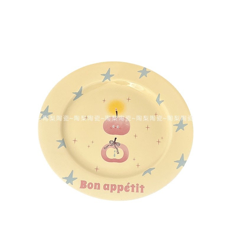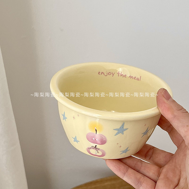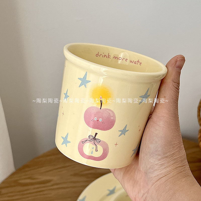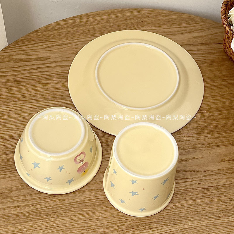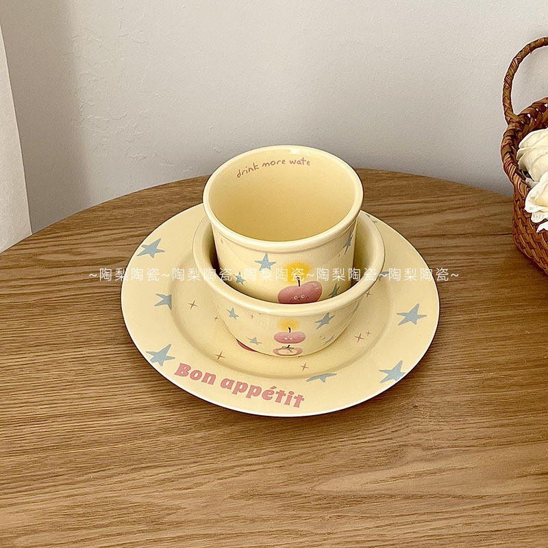 인스 스타일 크림 스타 애플 식기 가정용 세라믹 밥 그릇 휴대용 컵 접시 고급스러운 1인 식사 세트