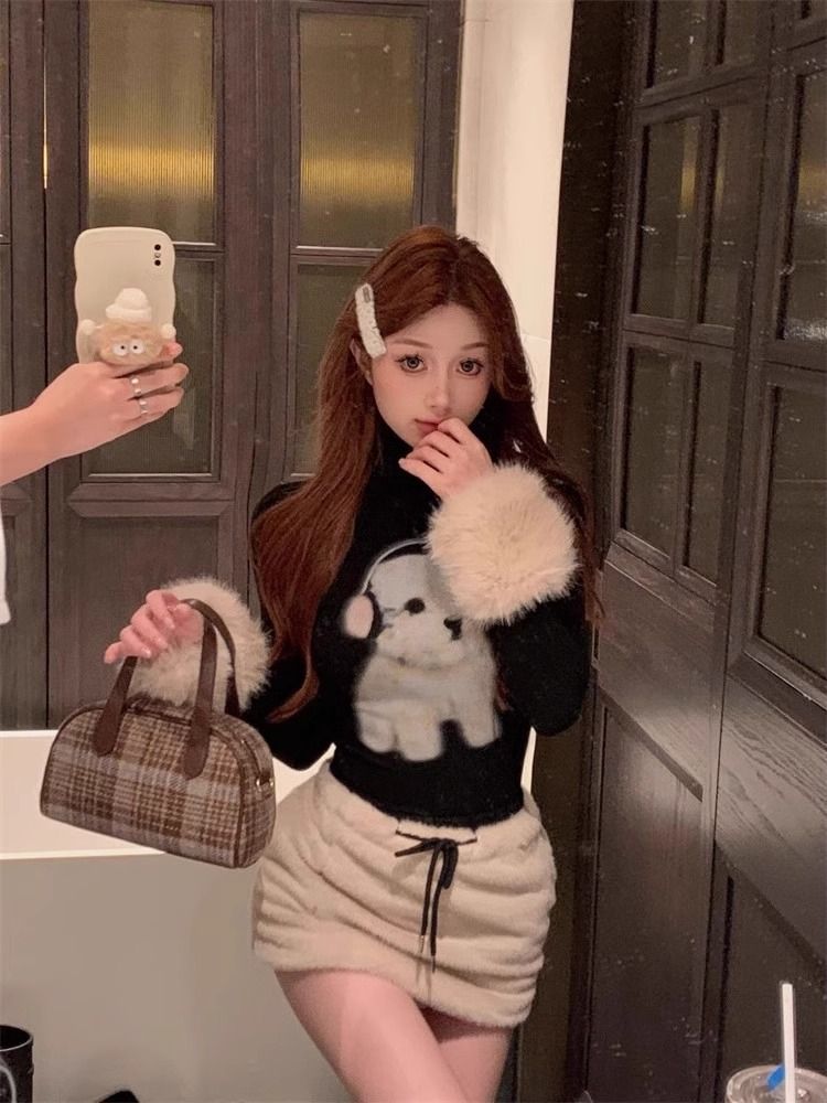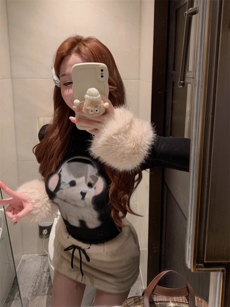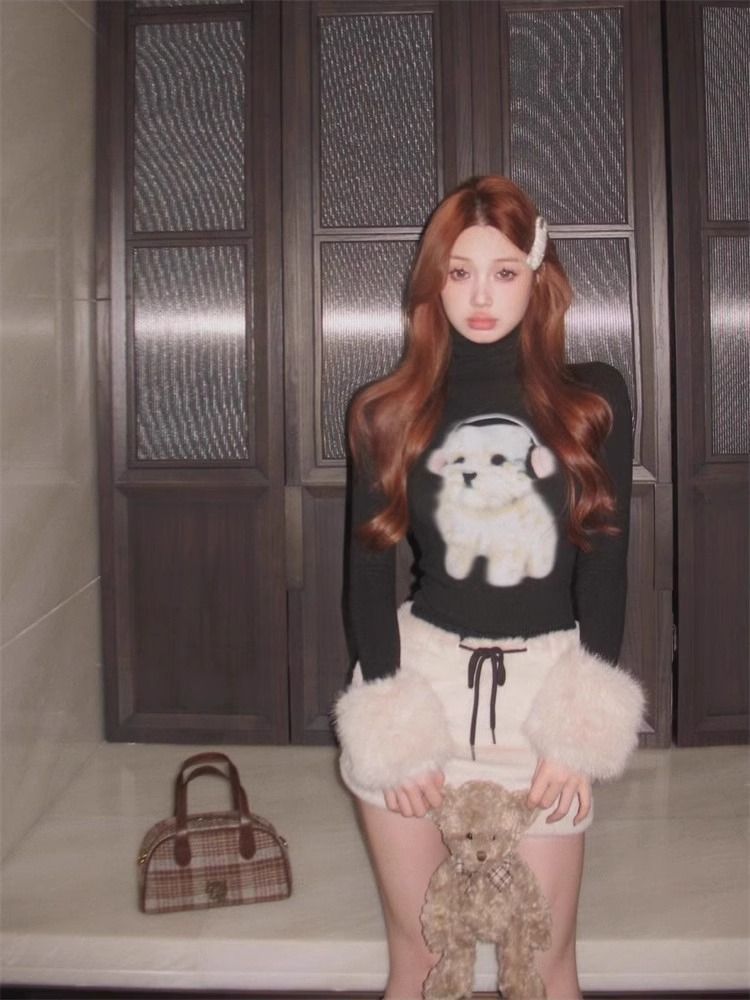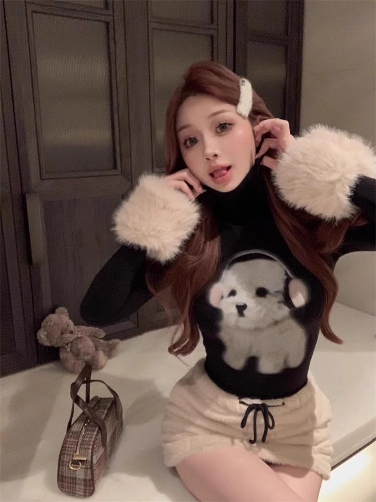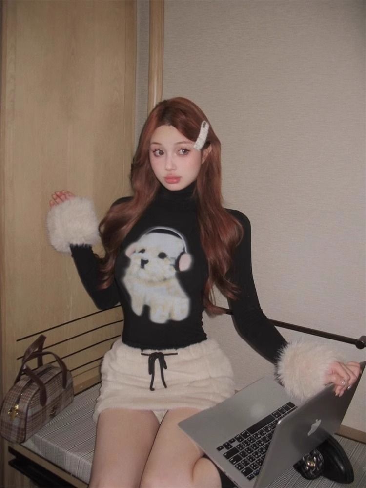 순수한 욕망 스파이스 소녀 푹신한 긴팔 티셔츠 여성의 가을과 겨울 귀여운 강아지베이스 셔츠