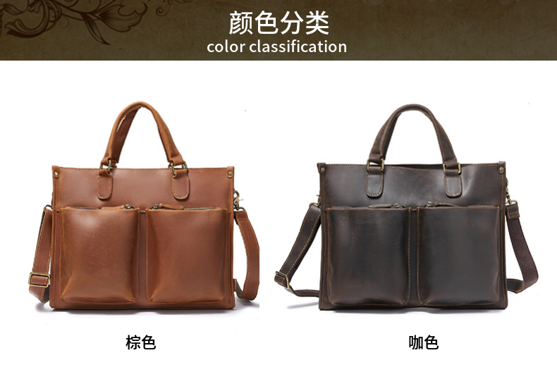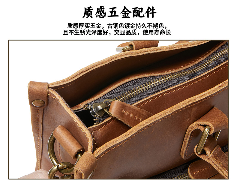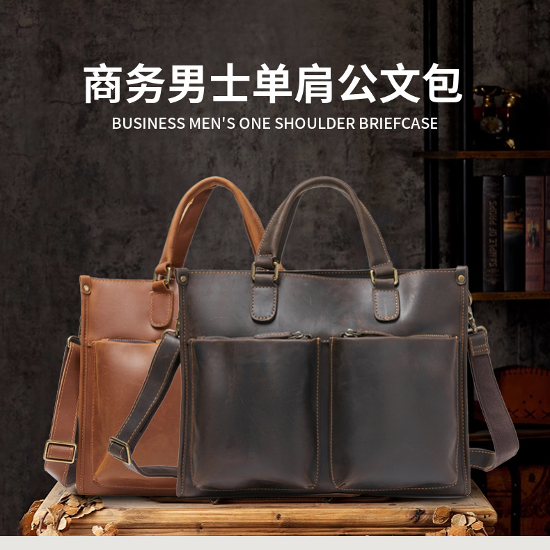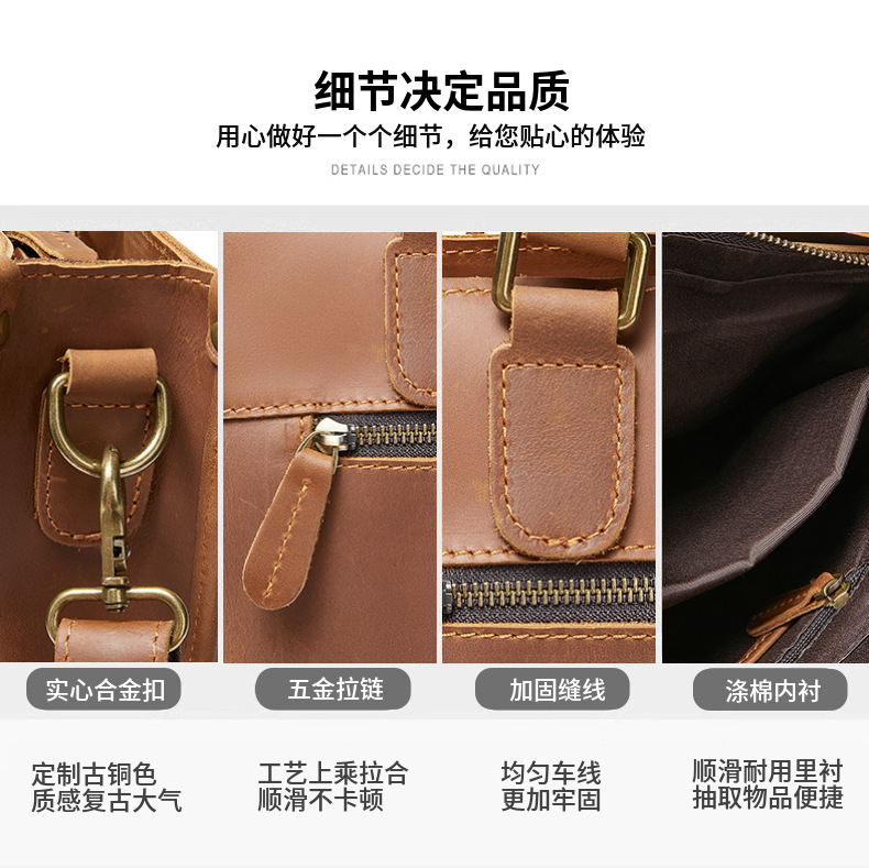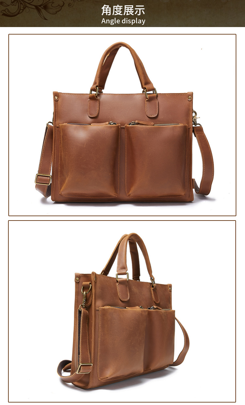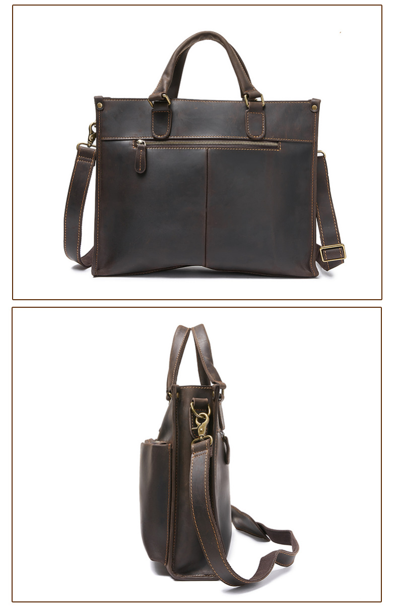 빈티지 패션 남성 정품 가죽 노트북 가방 미친 말 가죽 수제 싱글 숄더 크로스 바디 가방 대용량 서류 가방