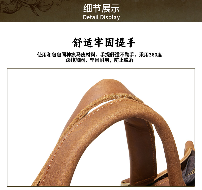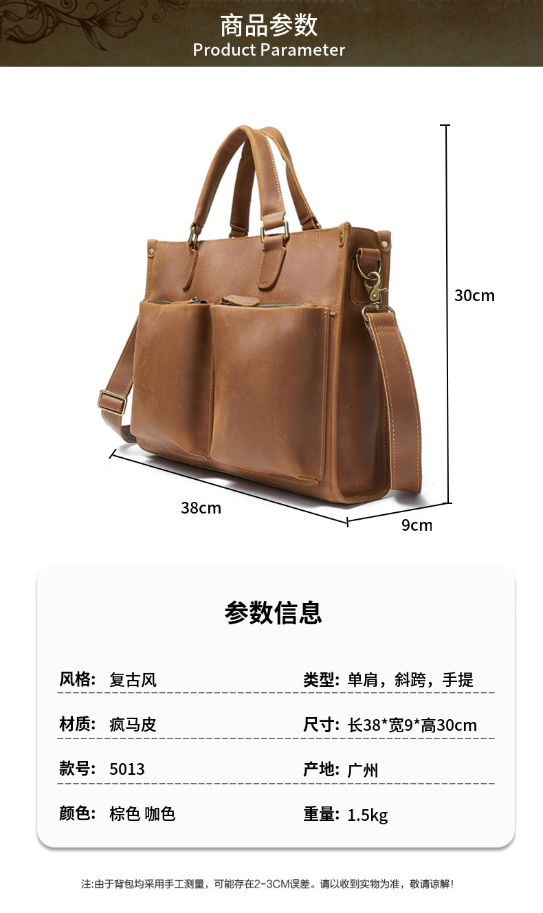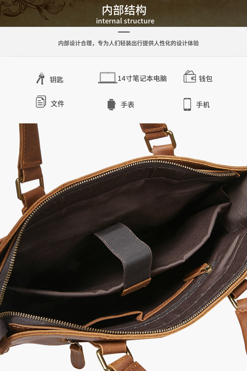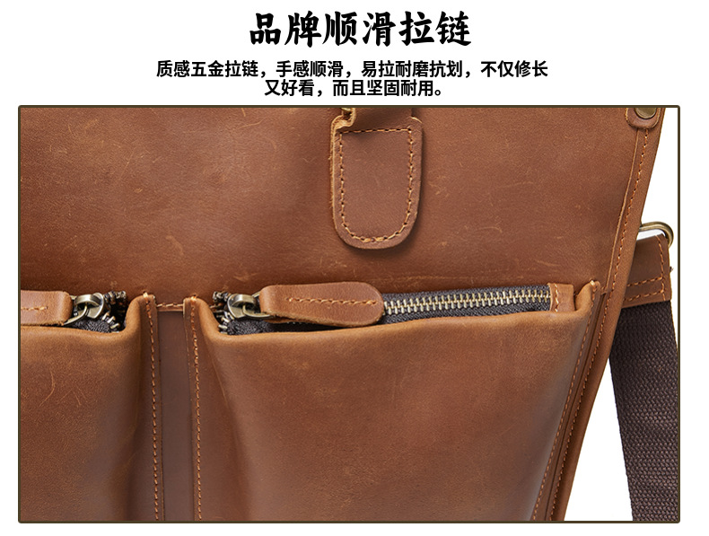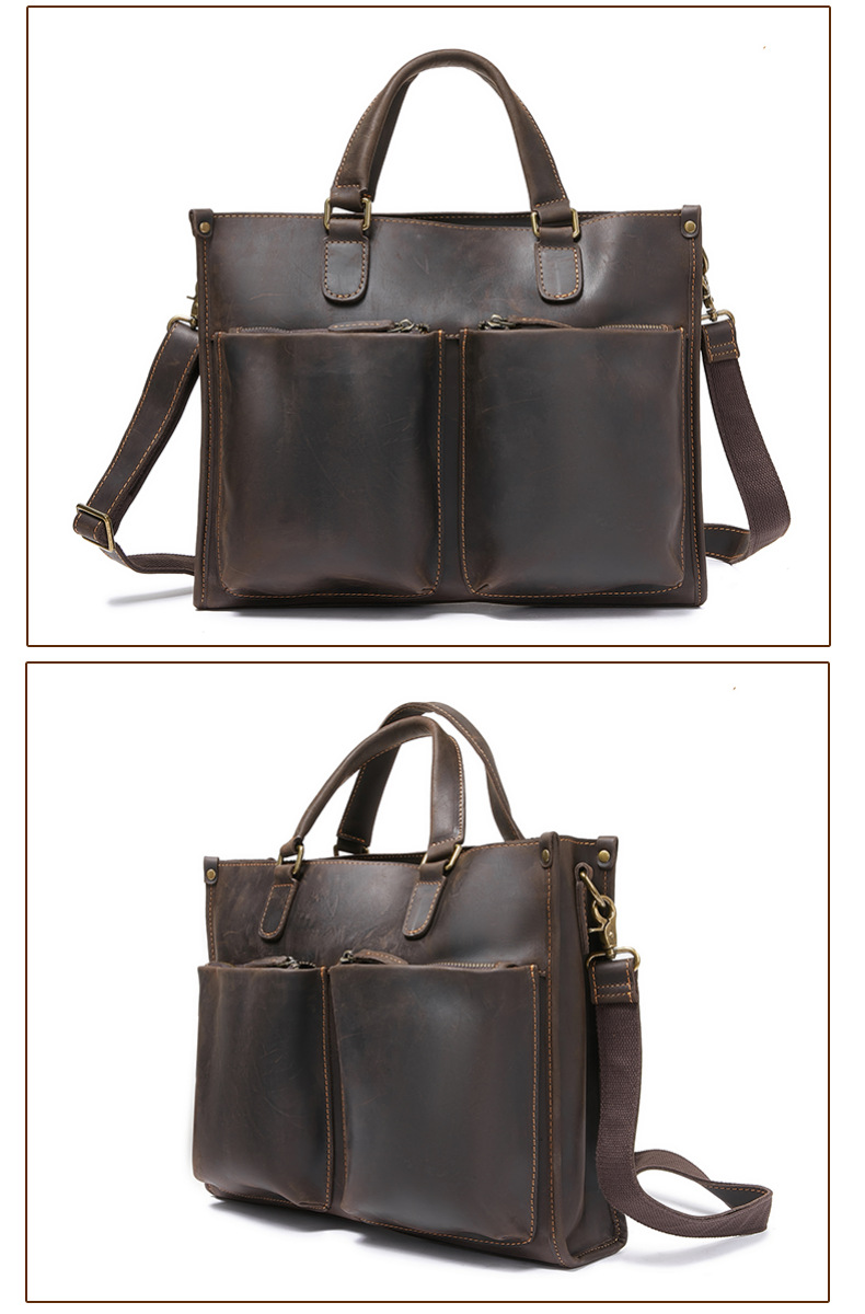 빈티지 패션 남성 정품 가죽 노트북 가방 미친 말 가죽 수제 싱글 숄더 크로스 바디 가방 대용량 서류 가방