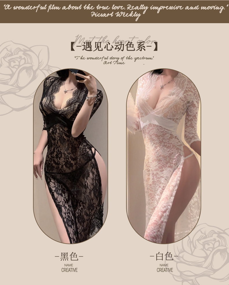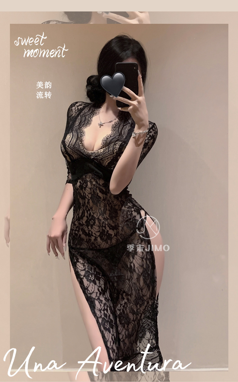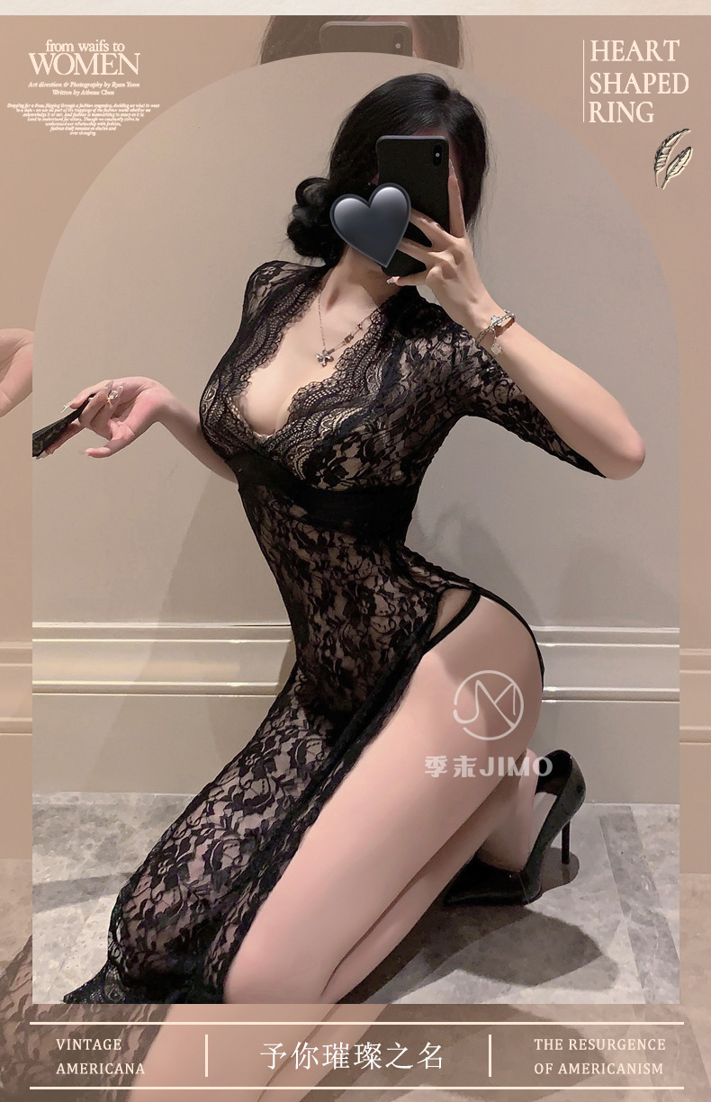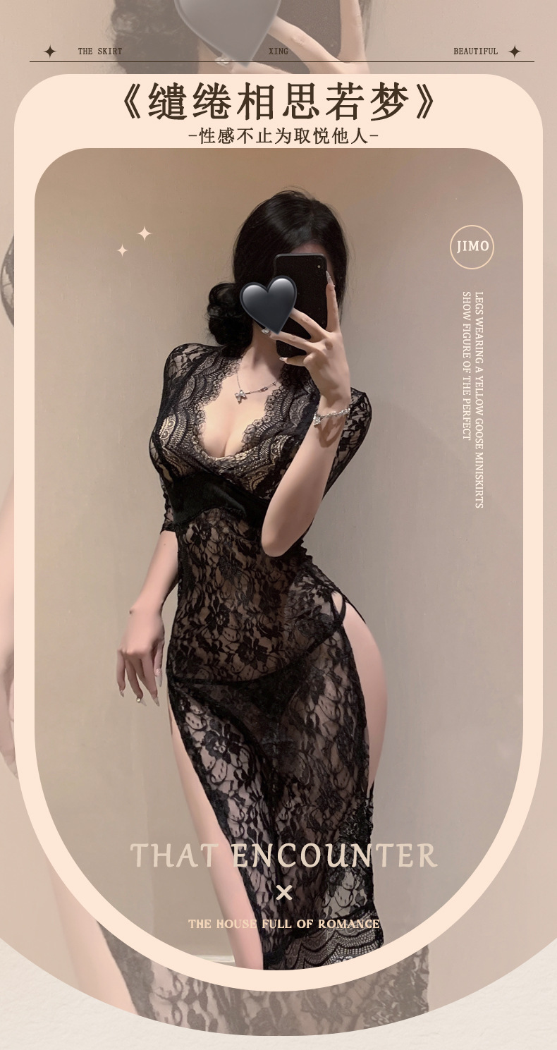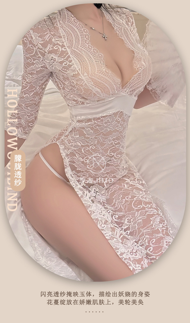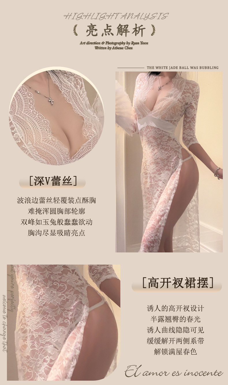 시즌 종료 유럽과 미국의 섹시 로우 컷 관점 레이스 하이 스플릿 섹스 속옷 슬림 핏 할로우 레이스 나이트 드레스 여성 7124