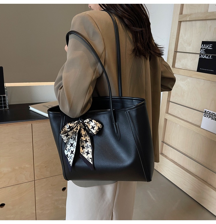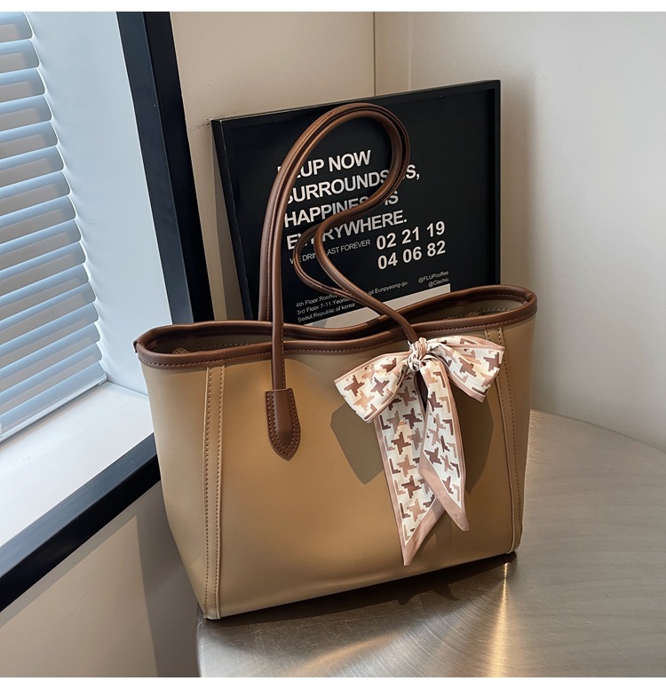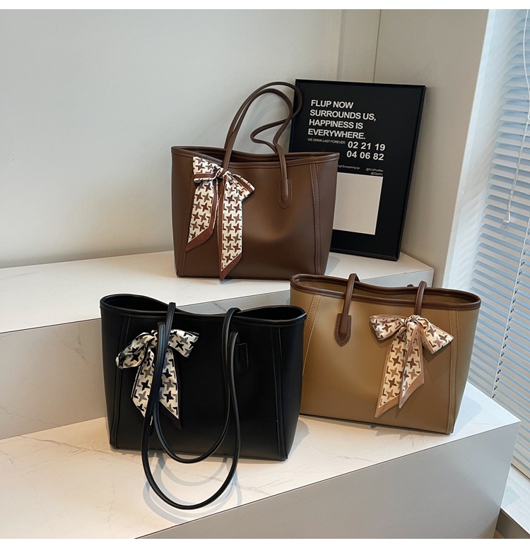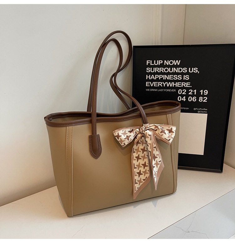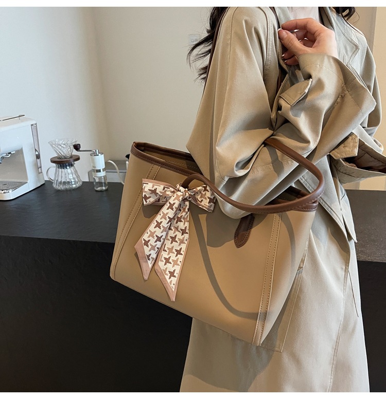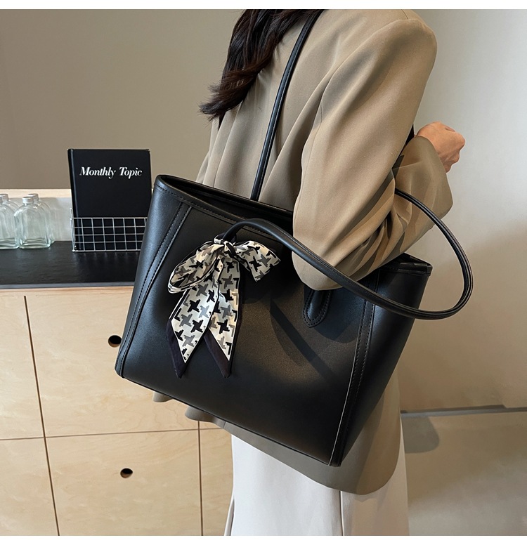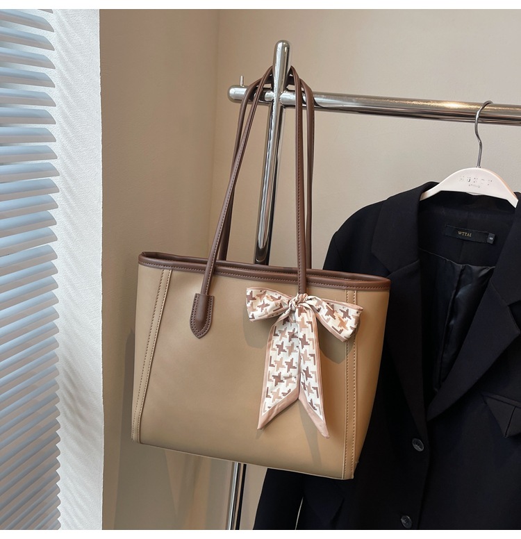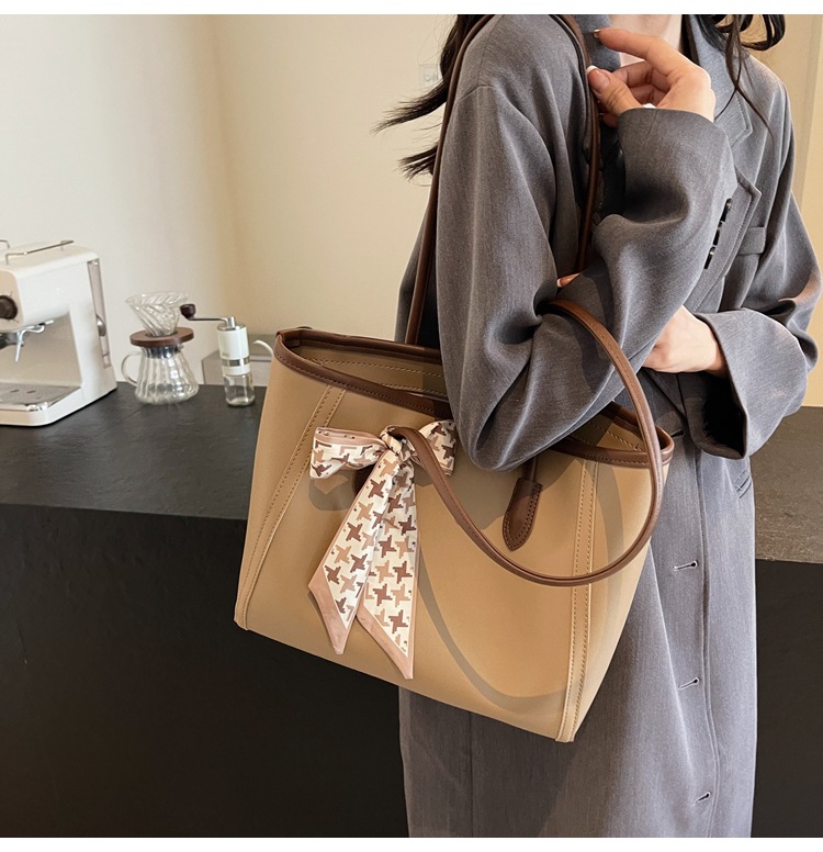솔리드 컬러 스카프 활 대용량 고급 토트 백 작업 및 통근 모든 경기 가방 여성용 가방 클래스 어깨 가방