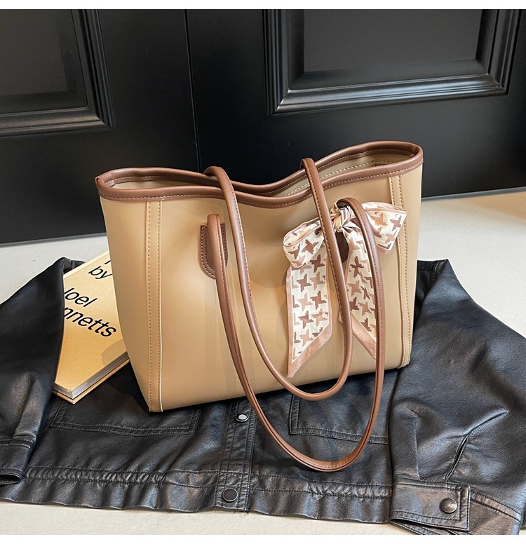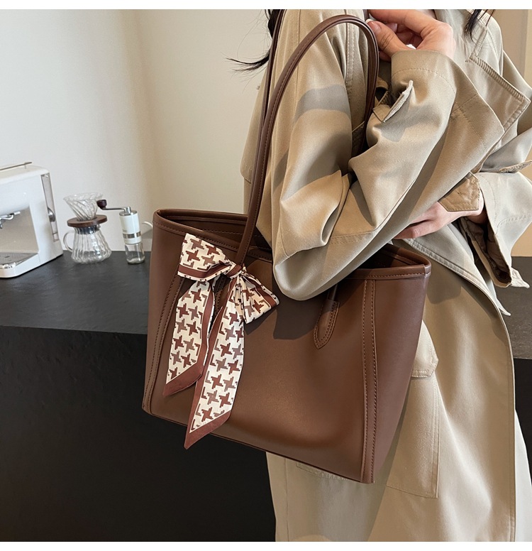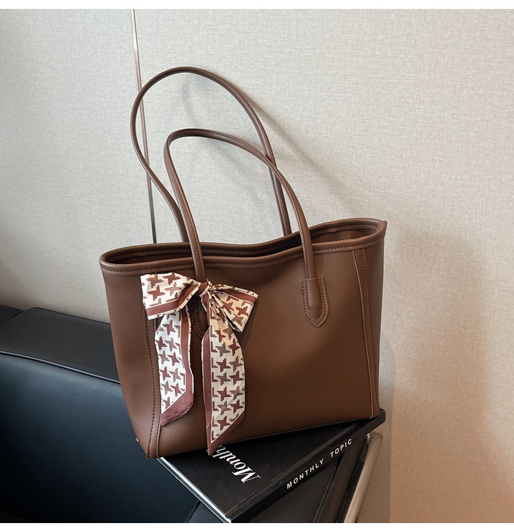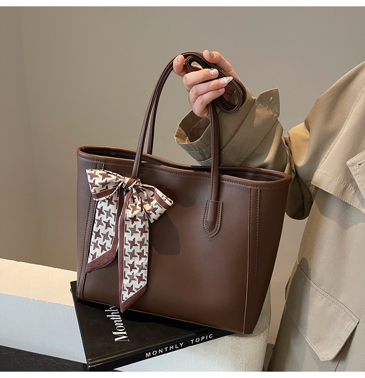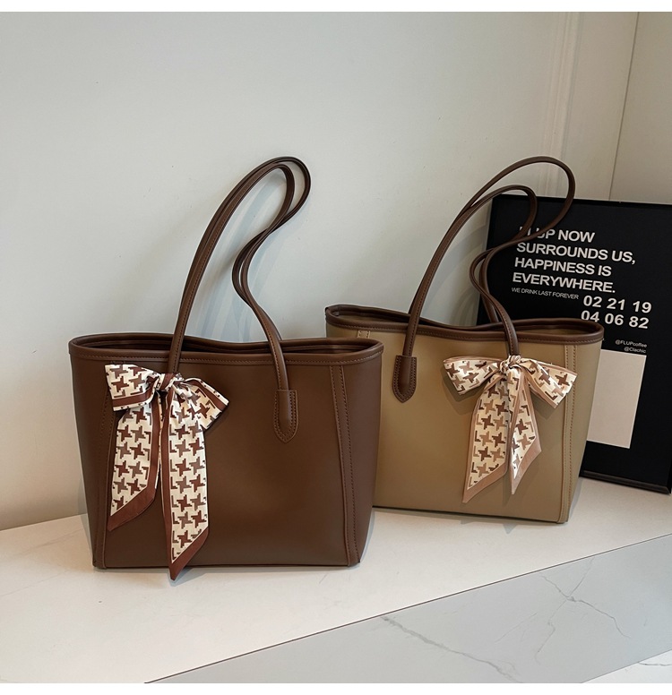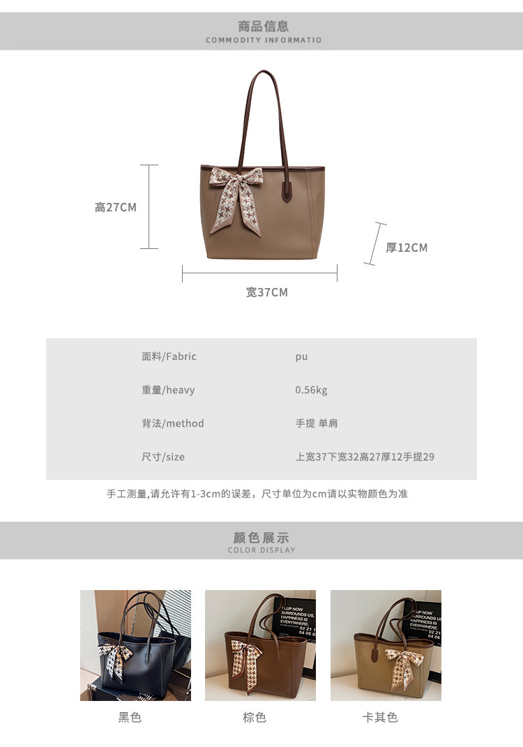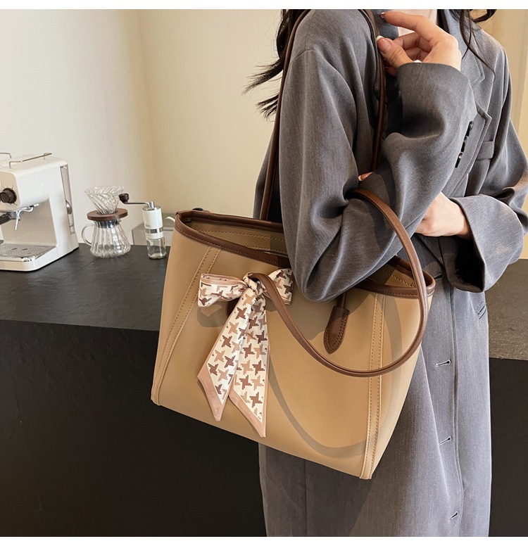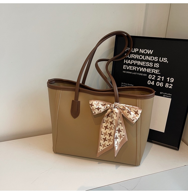 솔리드 컬러 스카프 활 대용량 고급 토트 백 작업 및 통근 모든 경기 가방 여성용 가방 클래스 어깨 가방