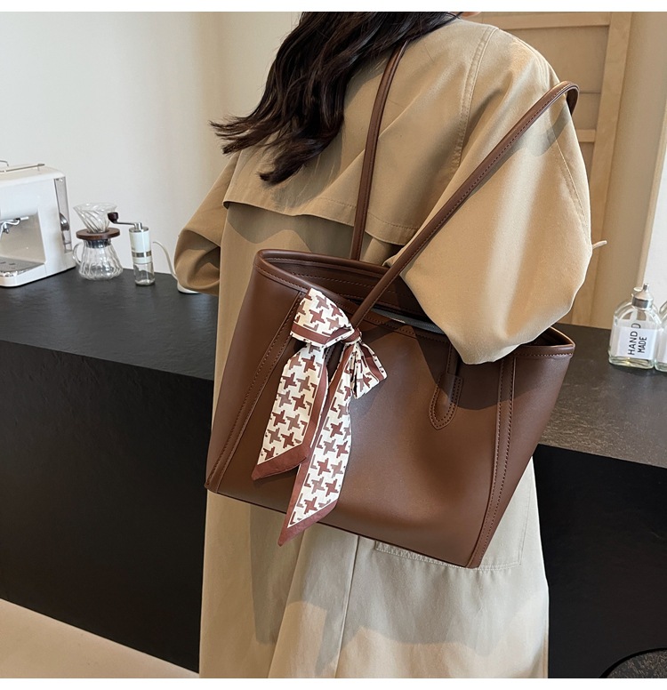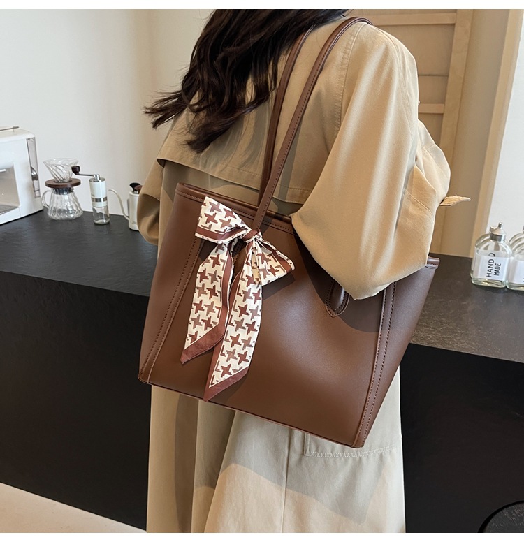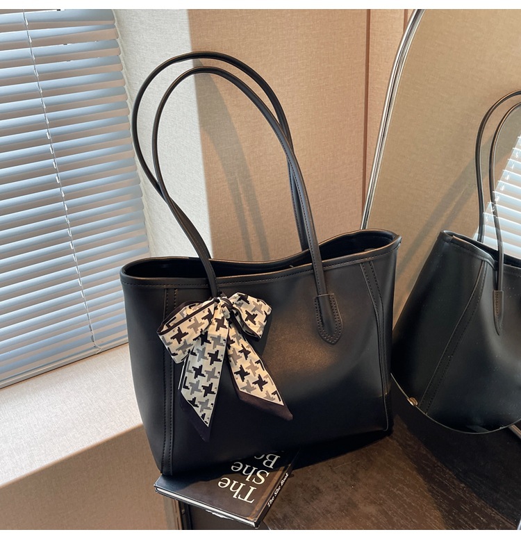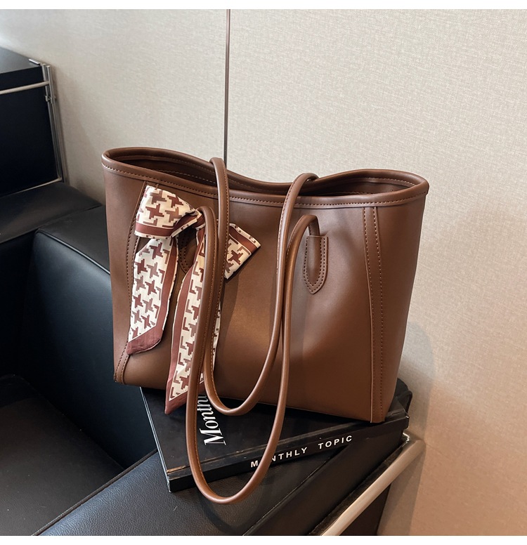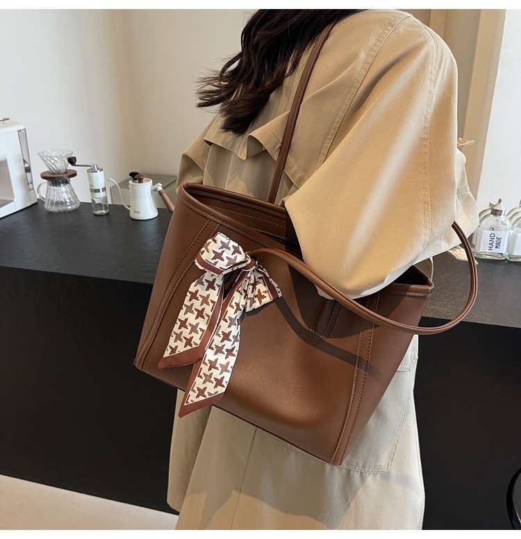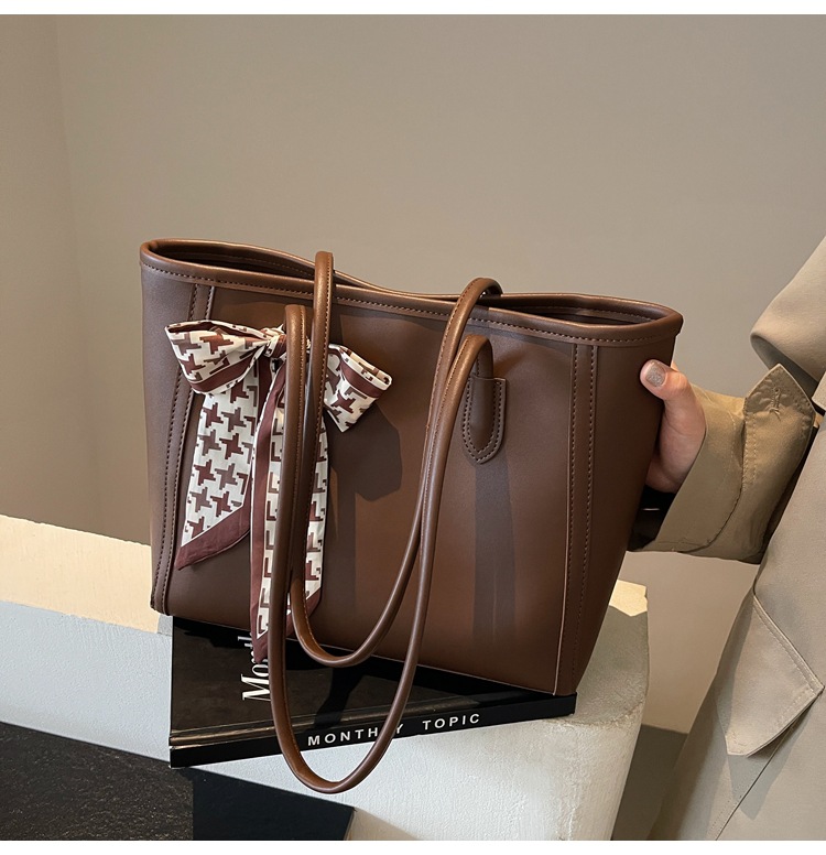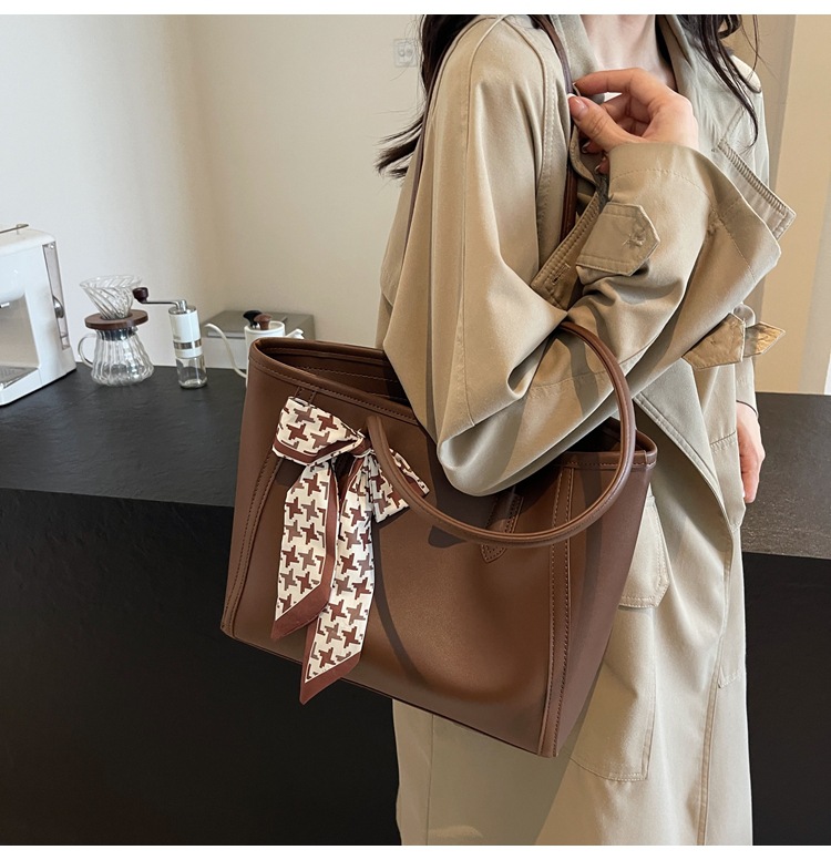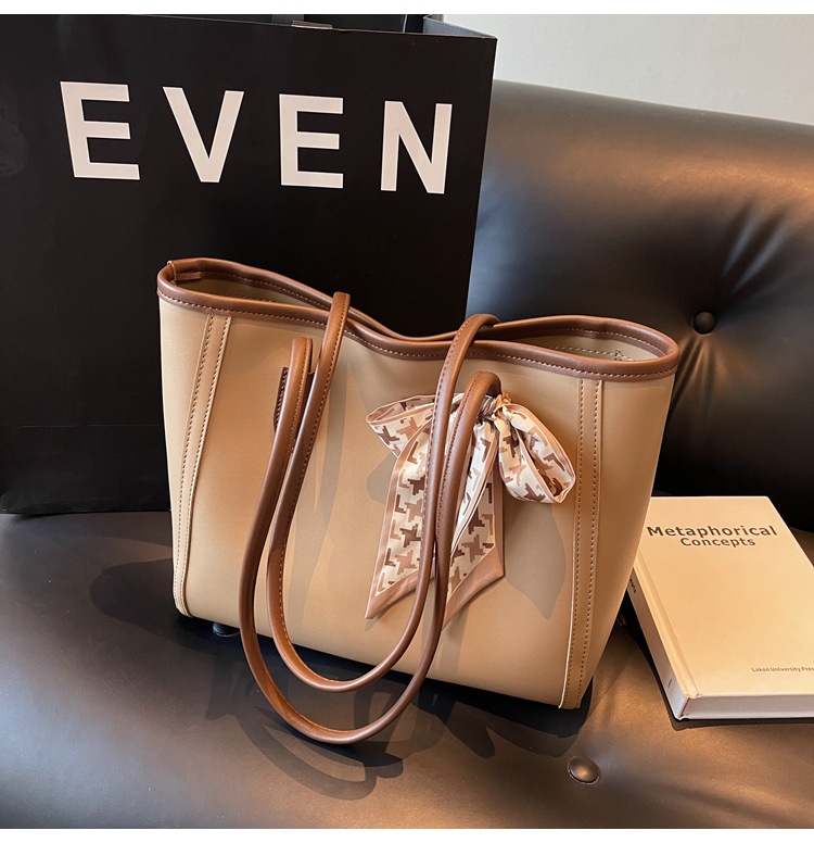 솔리드 컬러 스카프 활 대용량 고급 토트 백 작업 및 통근 모든 경기 가방 여성용 가방 클래스 어깨 가방