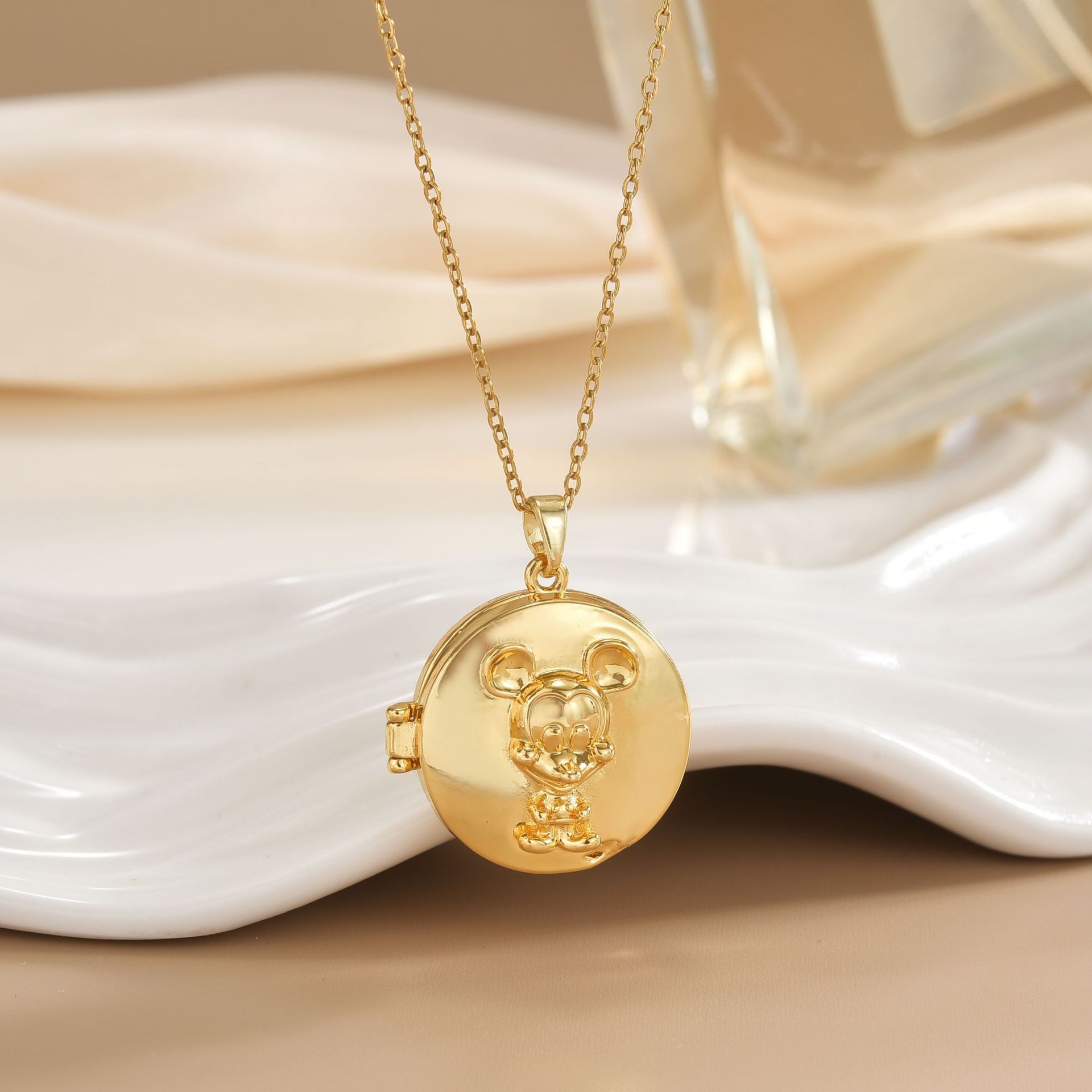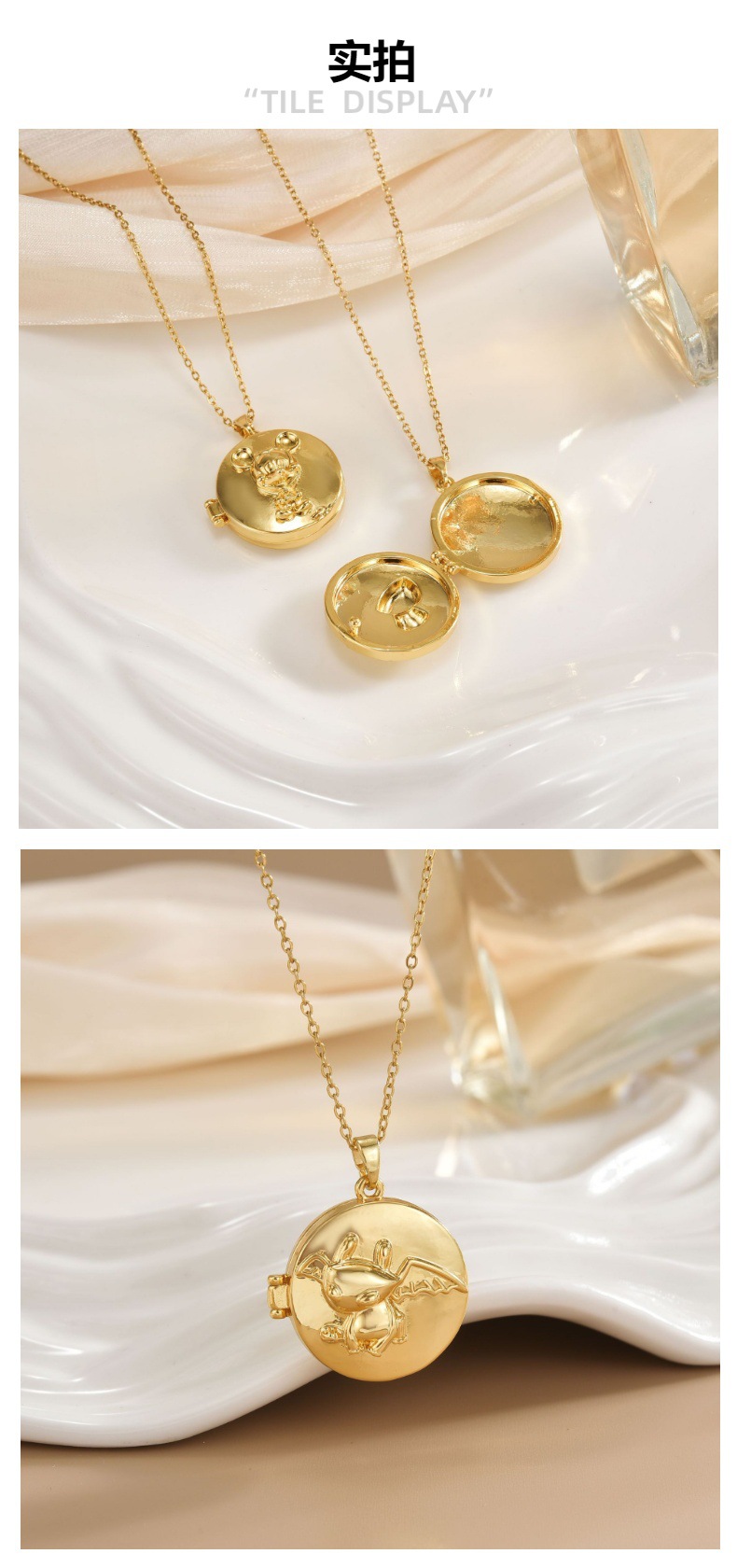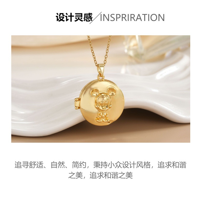 유럽과 미국의 국경 라운드 페이즈 박스 구리 도금 18k 골드 사진 앨범 귀여운 인형 펜던트 오프닝 티타늄 스틸 목걸이 쇄골 체인