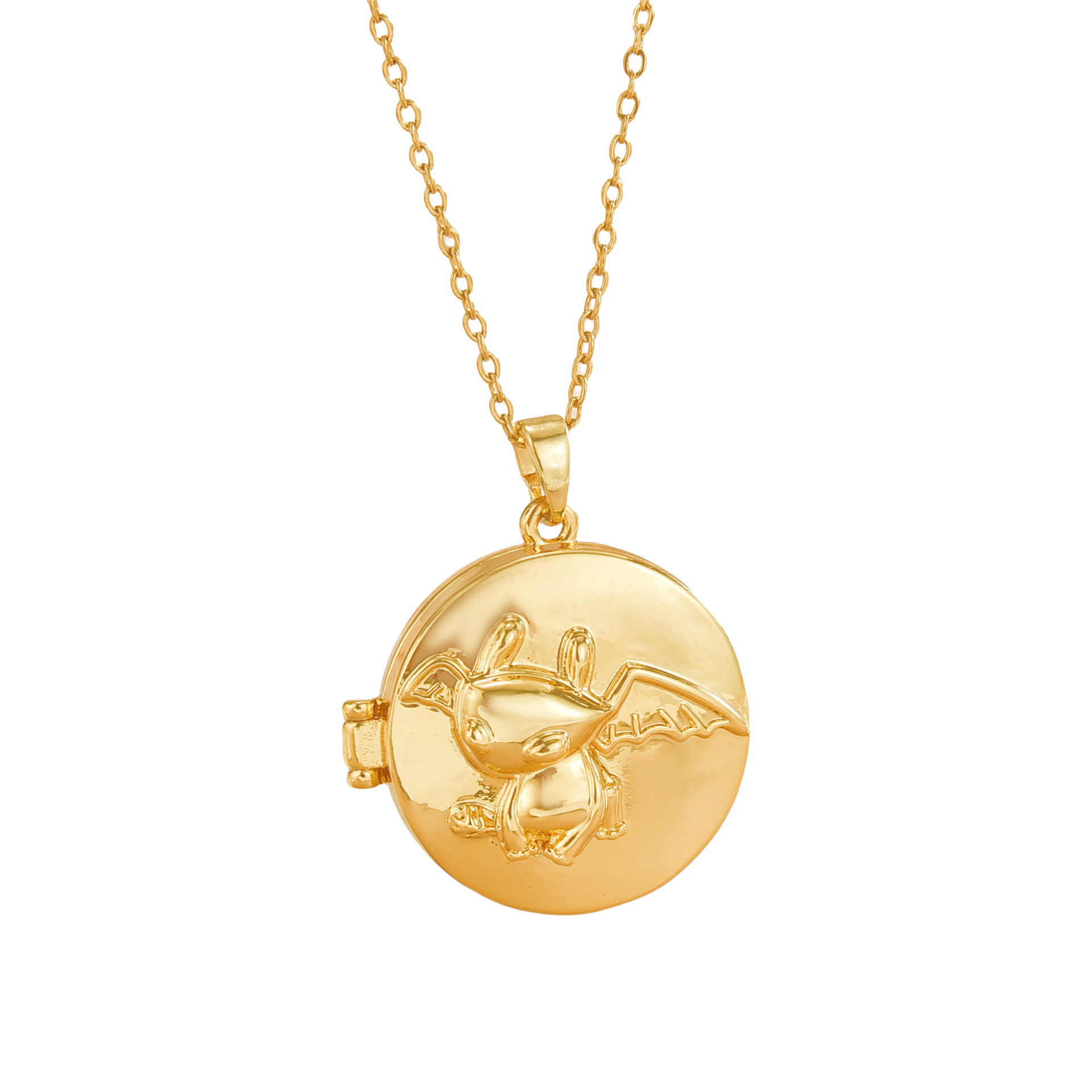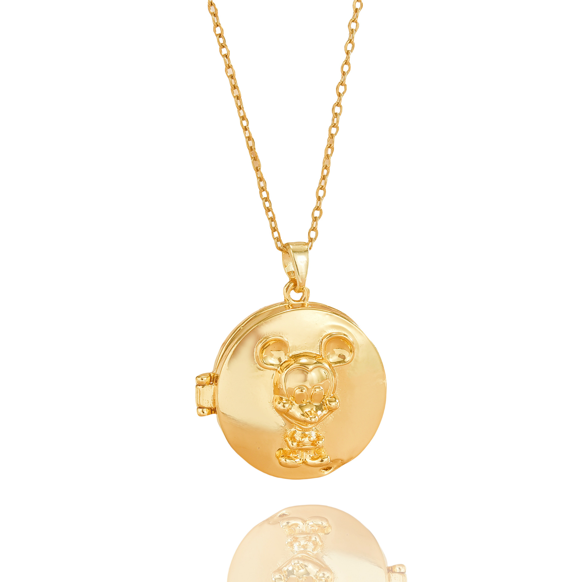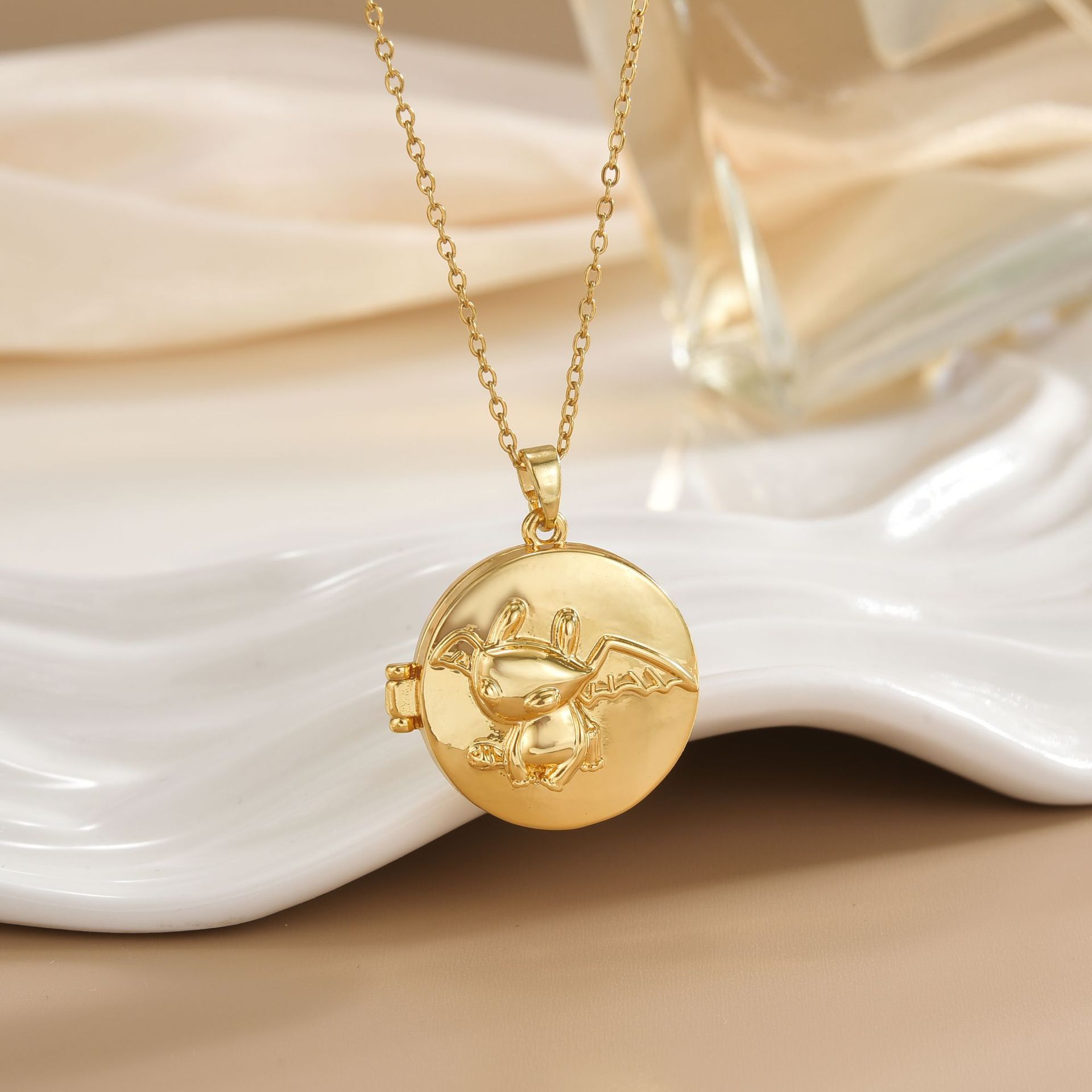 유럽과 미국의 국경 라운드 페이즈 박스 구리 도금 18k 골드 사진 앨범 귀여운 인형 펜던트 오프닝 티타늄 스틸 목걸이 쇄골 체인