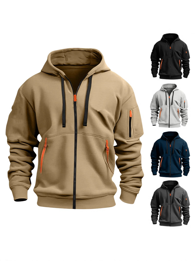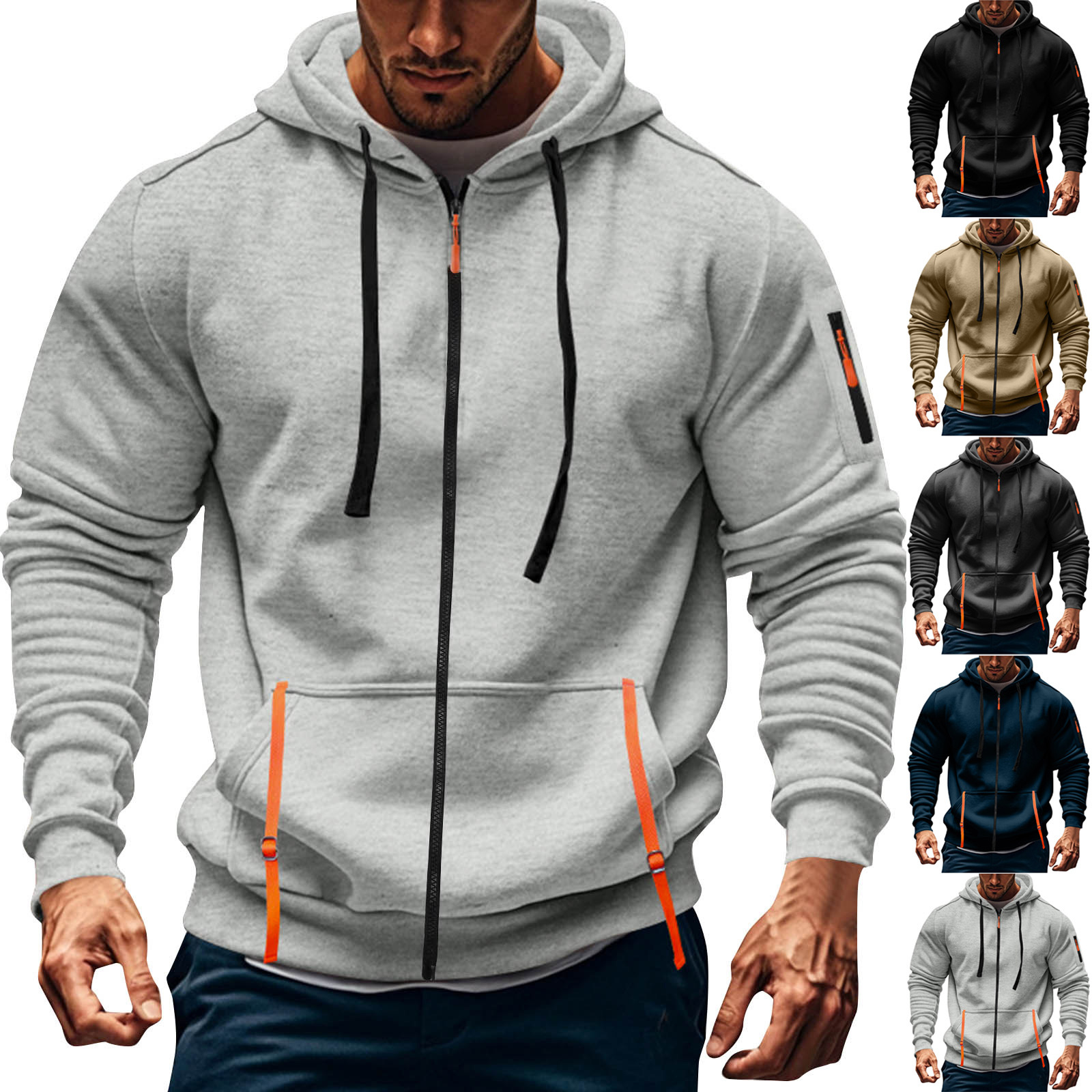 2024년 가을 겨울 남성용 스포츠 캐주얼 후드 집업 다중 포켓 재킷 플리스 안감 두꺼운 자켓